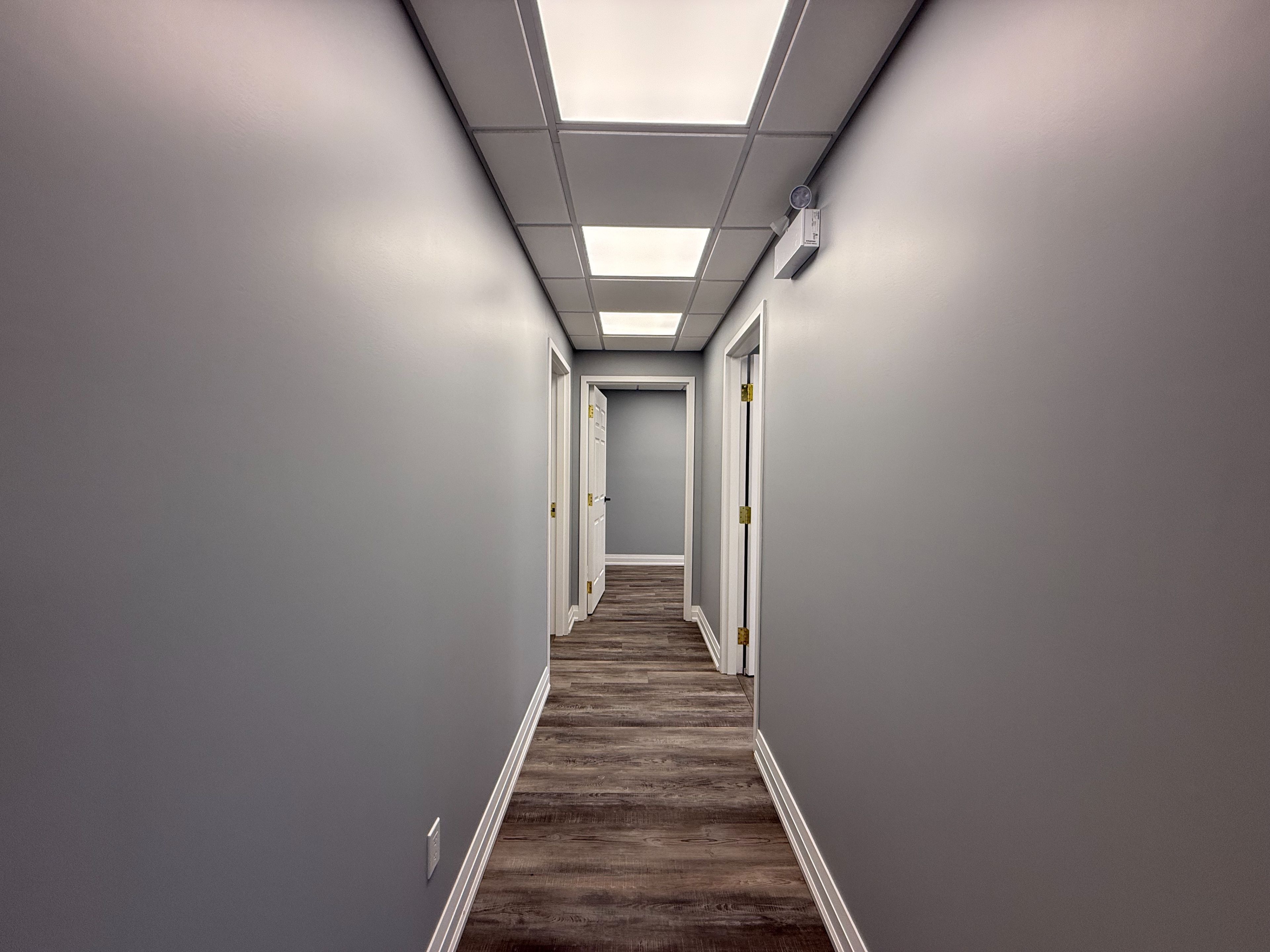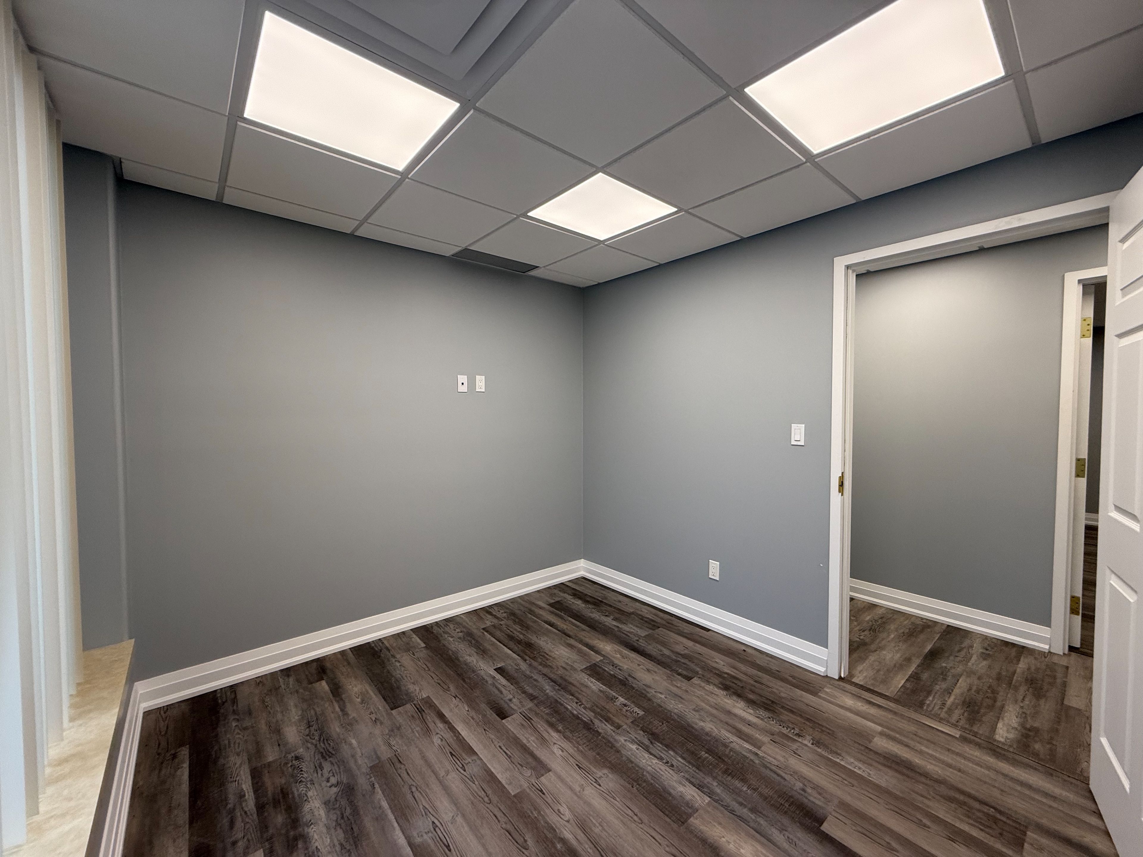 • Versatile two-level space with private offices and open areas.