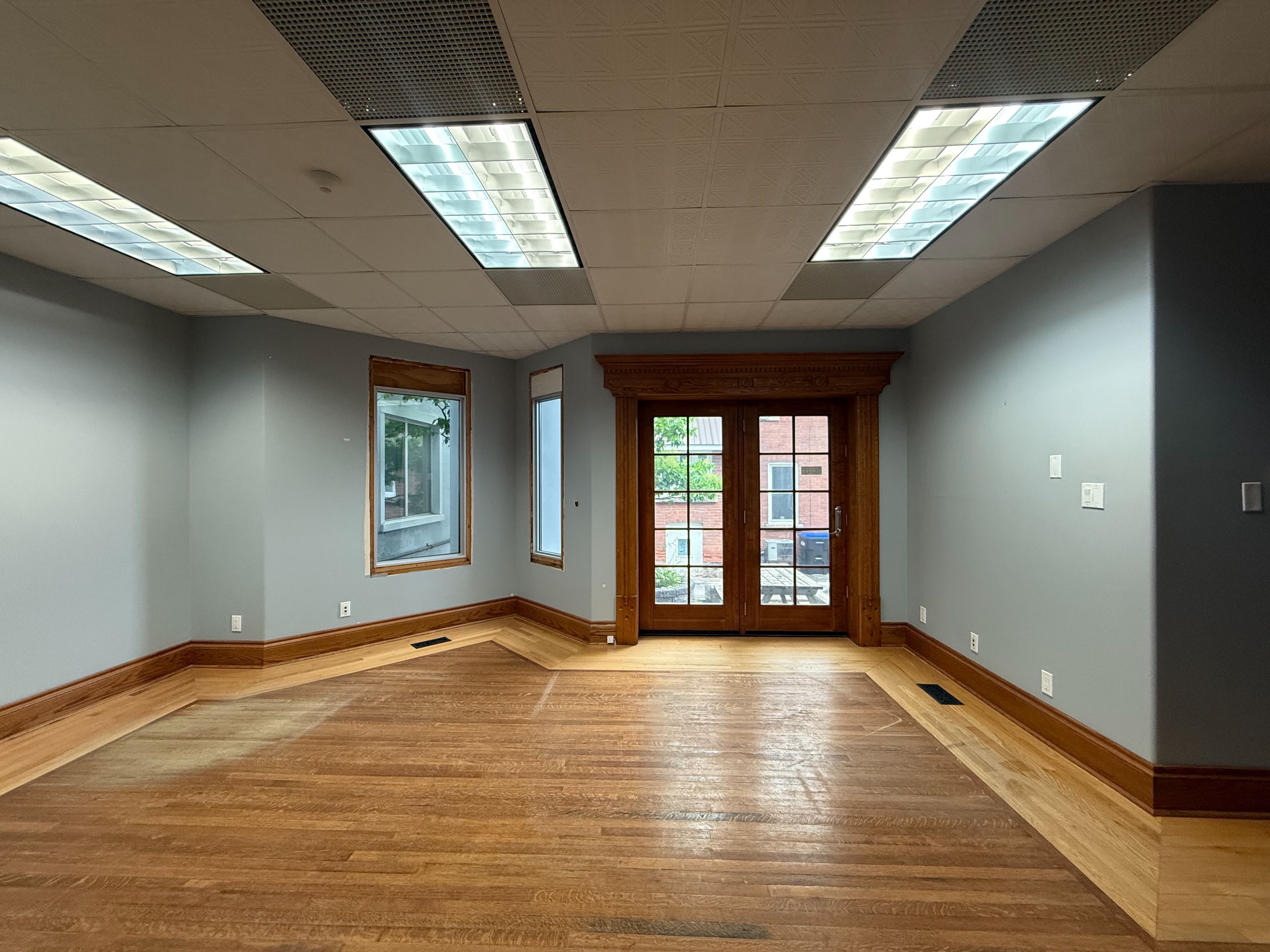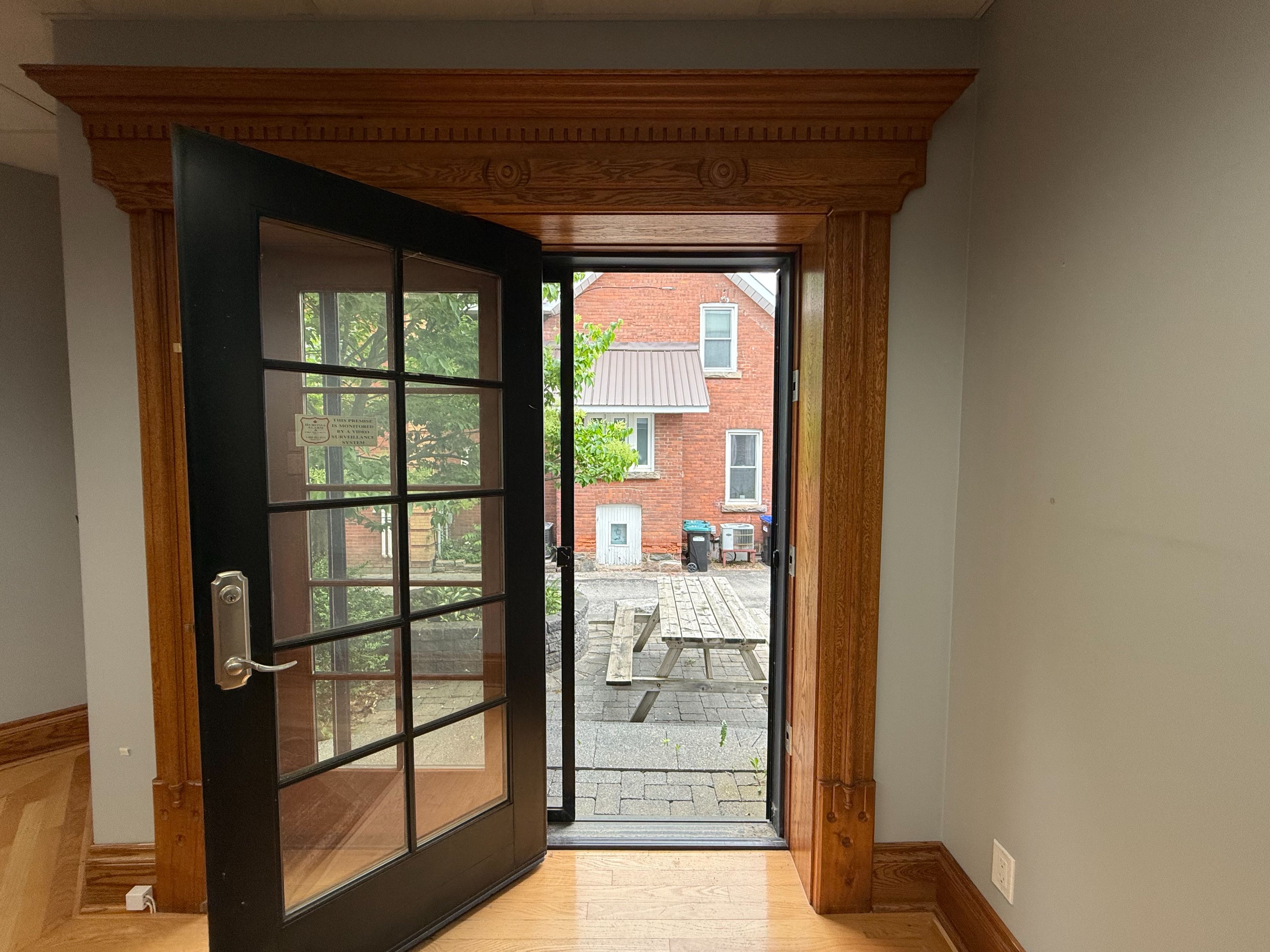 Tucked away at the rear of this downtown midland building, this commercial unit offers a unique layout and finishings that set it apart. The space is well-suited for creative offices, boutique services, or wellness-based businesses looking for something a little different. One of the standout features is the walk-out to a private stone patio, perfect for staff breaks, client meetings, or creating a welcoming outdoor experience. Functional, flexible, and full of character, this unit combines privacy with access, all in a central downtown location with ample on-site parking. Note: various layouts available.