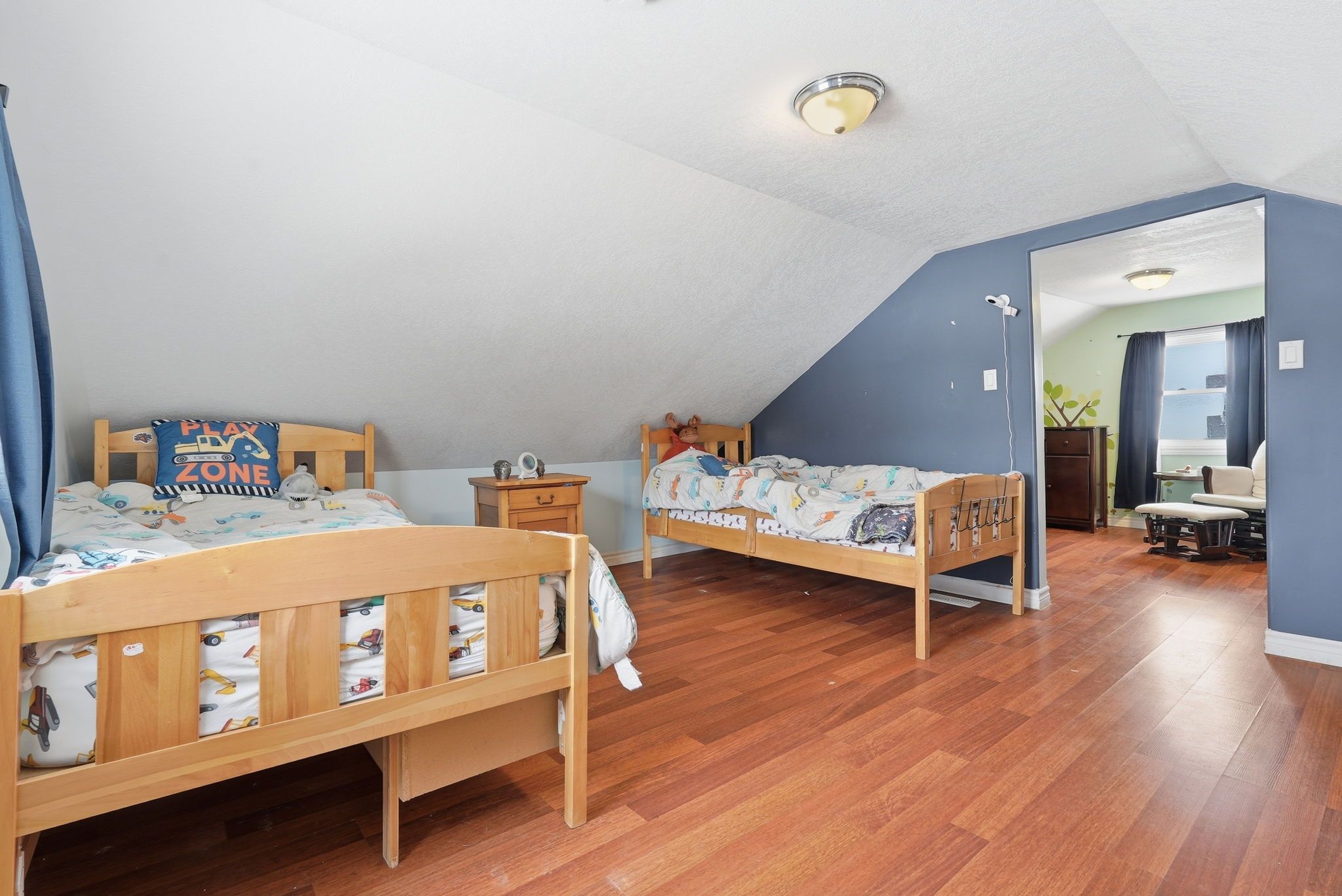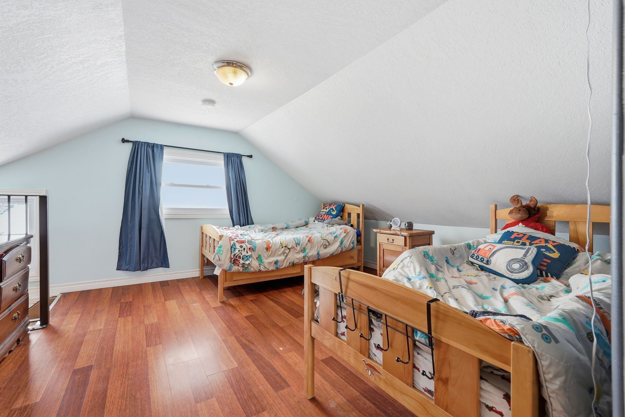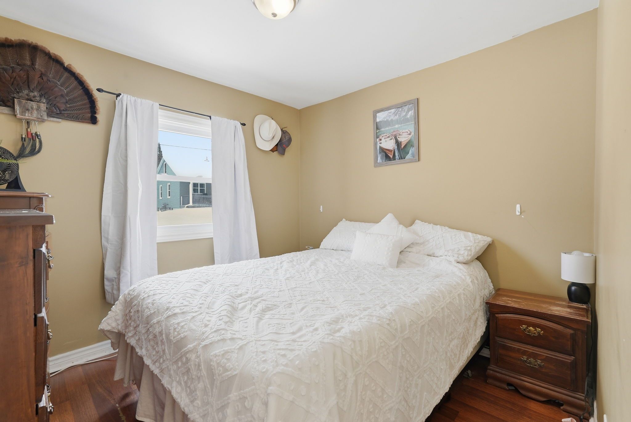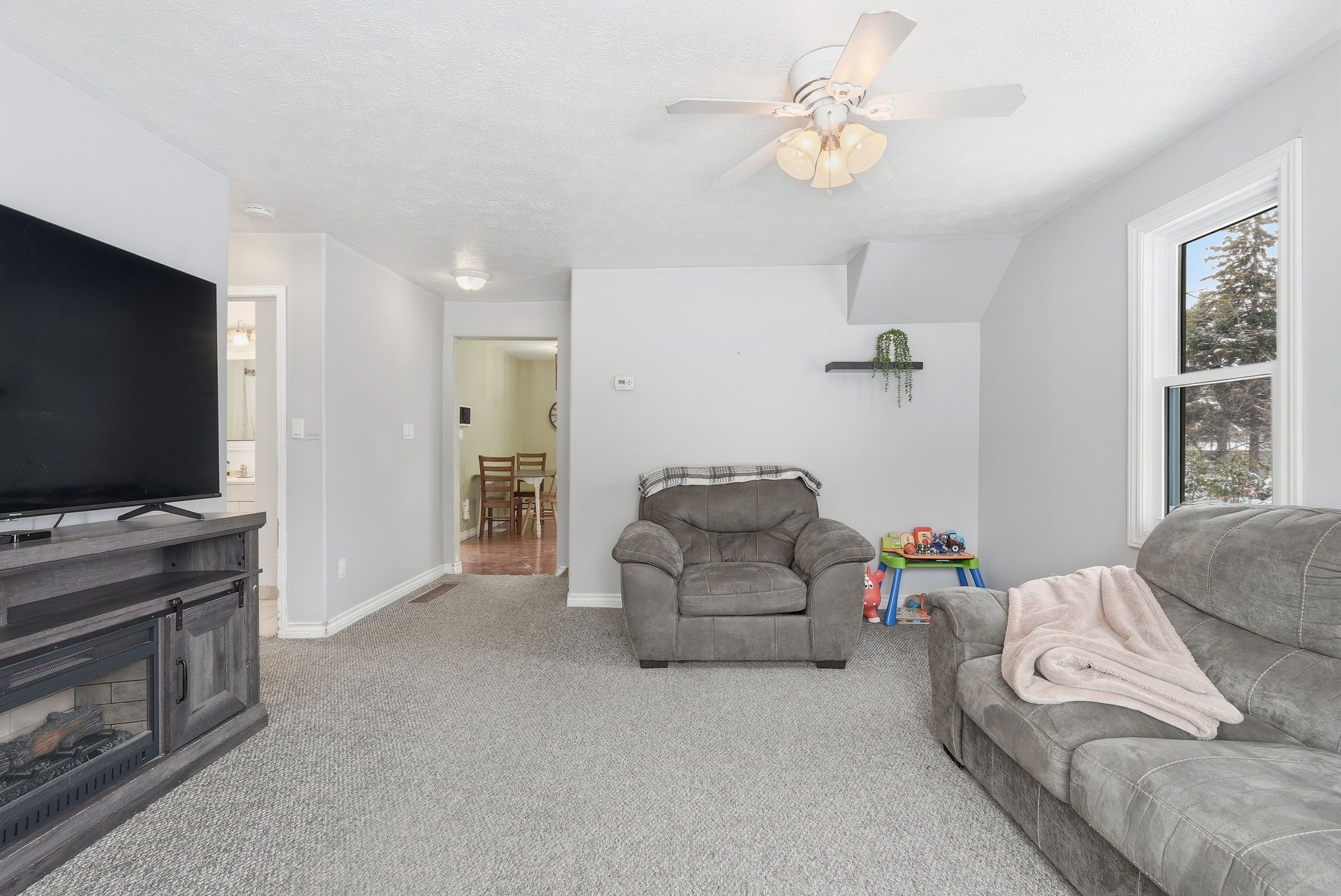 Perfect for young families or first-time buyers! This charming home is nestled in a family friendly neighbourhood. You'll love being just a short walk to schools, the arena, parks, and local sports fields. Inside, the layout is both practical and inviting. The main level features a convenient bedroom, ideal for parents, guests, or a home office. The bright dining area opens directly to a beautiful stamped concrete patio through patio doors, the perfect spot for summer barbecues, outdoor dining, or watching the kids play in the yard! Upstairs you'll find a spacious bedroom along with a versatile bonus room that could easily serve as a nursery, playroom, or quiet workspace. The professionally refinished mudroom and laundry area adds thoughtful functionality for busy family life. Outside, the detached garage fits one vehicle and offers excellent additional space with a mezzanine for storage and a 220v plug, ideal for hobbyists or workshop use. A warm and welcoming home in a location families truly appreciate - this is a wonderful opportunity to put down roots and make lasting memories! Updates: ac (2025), metal roof on house (2025), garage roof (shingle) 2023, all windows and patio door (2024), eavestroughs (2025) laundry room brand new drywall, insulation door and windows (2025).