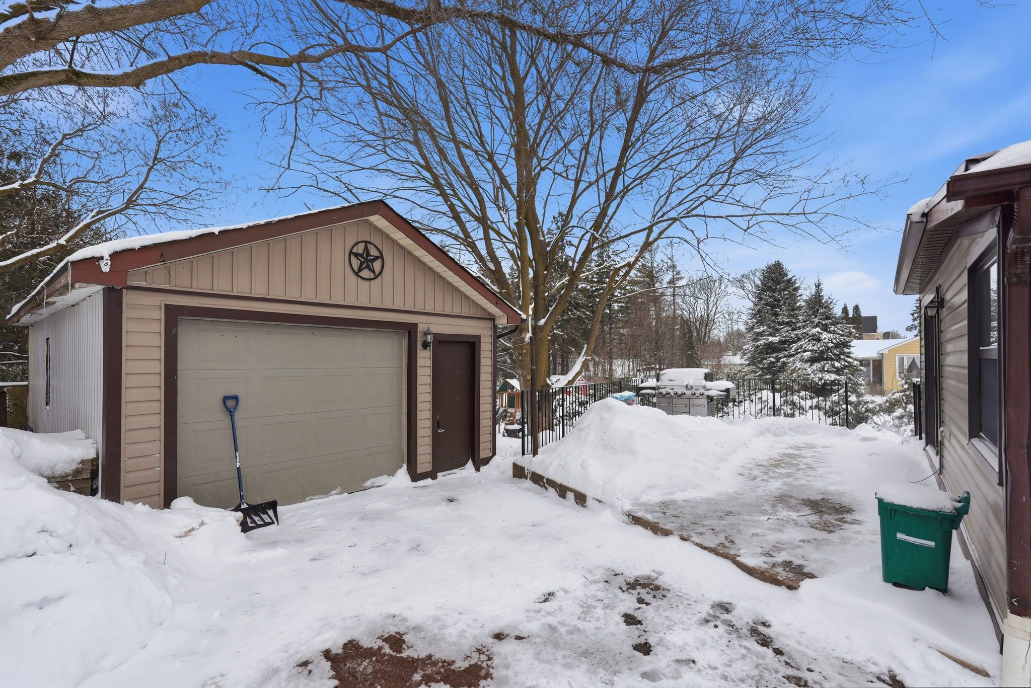 • Detached garage offers storage space and is ideal for hobbyists.