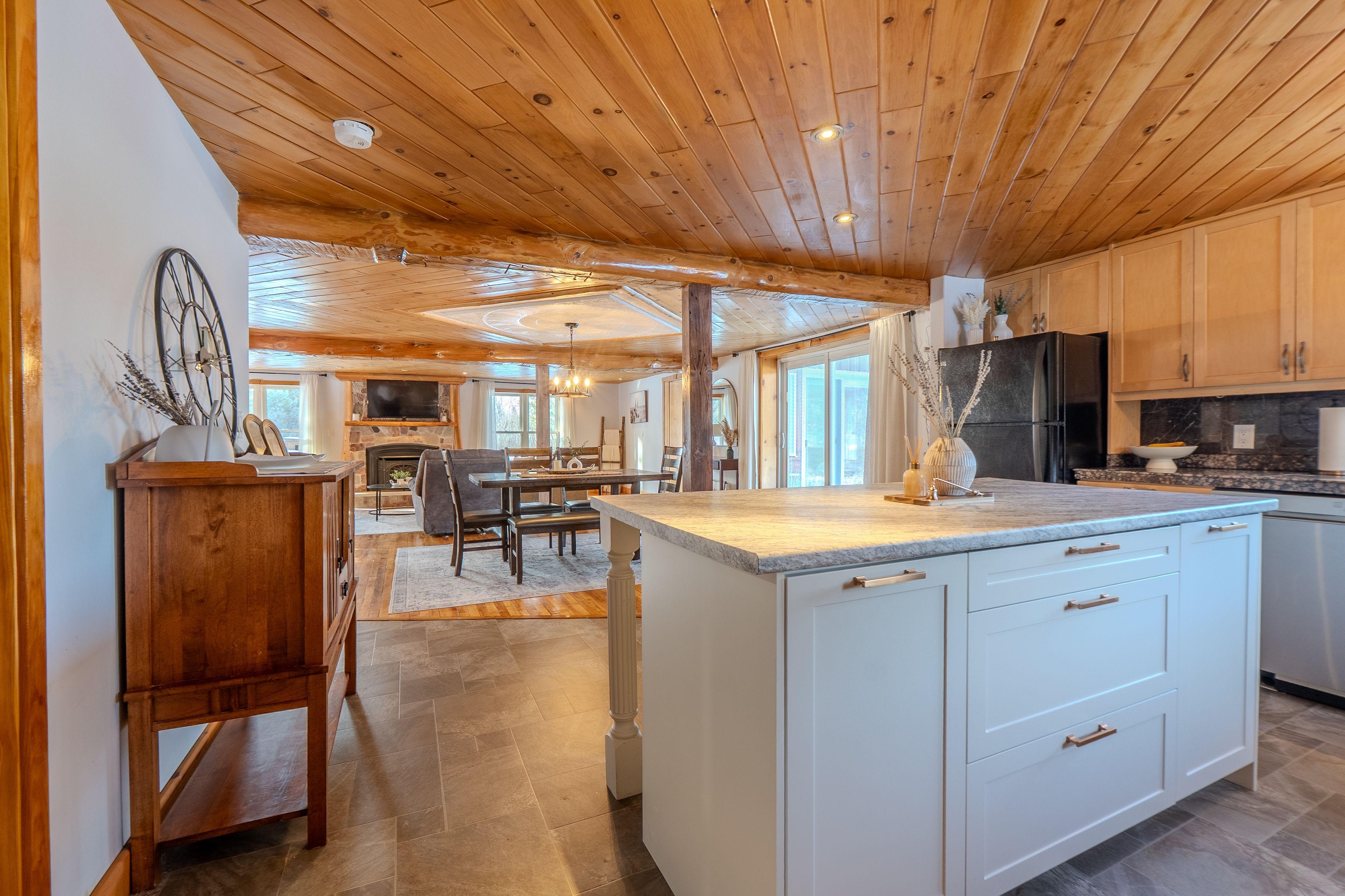 Gorgeous 7-acre country home just outside of north bay. This home is move-in ready, located in corbeil, less than 15 minutes to northgate square. The home has modern in-floor heating throughout and a beautiful open concept main floor. The exposed beams truly enhance the country feel. A large living room with plenty of natural light provides lots of great views. There is also a laundry/utility room as well as a 2-piece bath on the main floor. You can enjoy the sunshine in the 4 season sunroom addition with windows all around. The second floor has 4 bedrooms and a 4-piece bath. The extra-large master bedroom has built-in closets on both sides as well as a cheater ensuite. The beaming hardwood floors throughout the home add to the warm feel. You get all of this plus a huge detached 60'x40' garage/shop. The heated shop ( certified wood stove ) is any handyman's dream. Approx. Half the shop has been plumbed in for in-floor heating, but not connected. There is water running to the building as well as a bathroom that is not currently connected. As if this isn't enough, there is several smaller outbuildings