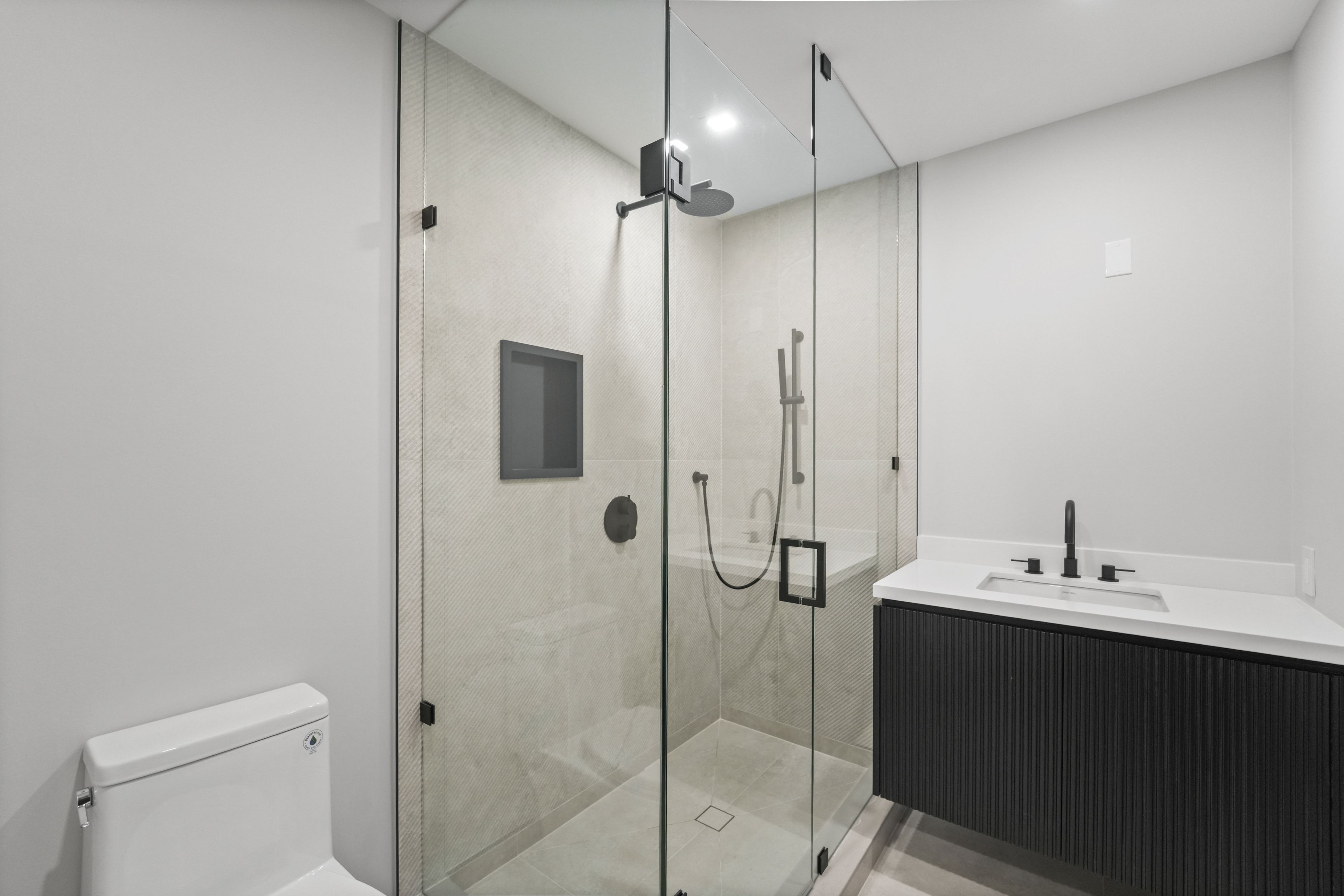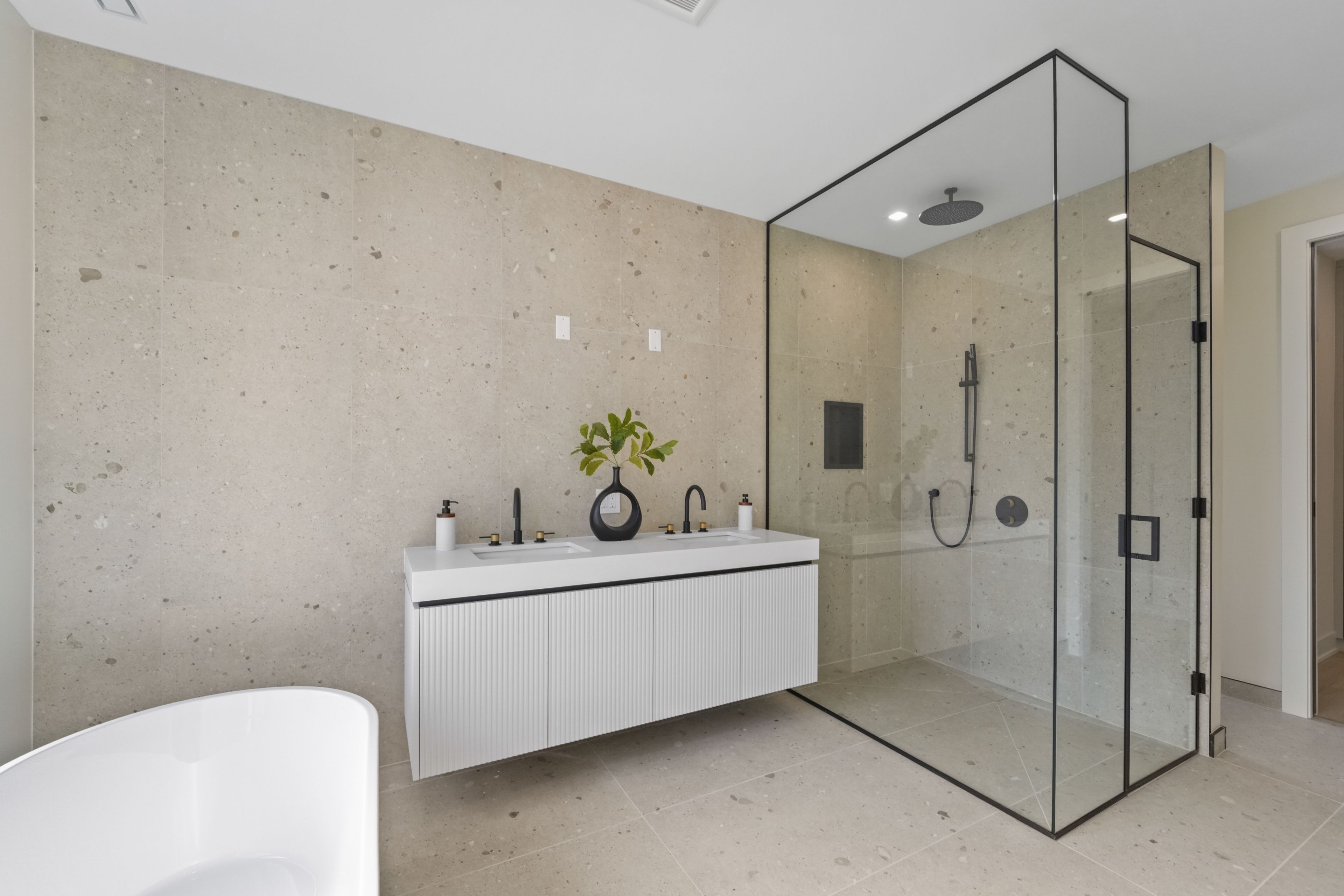 • Upper level includes four spacious bedrooms with ensuites and heated floors.