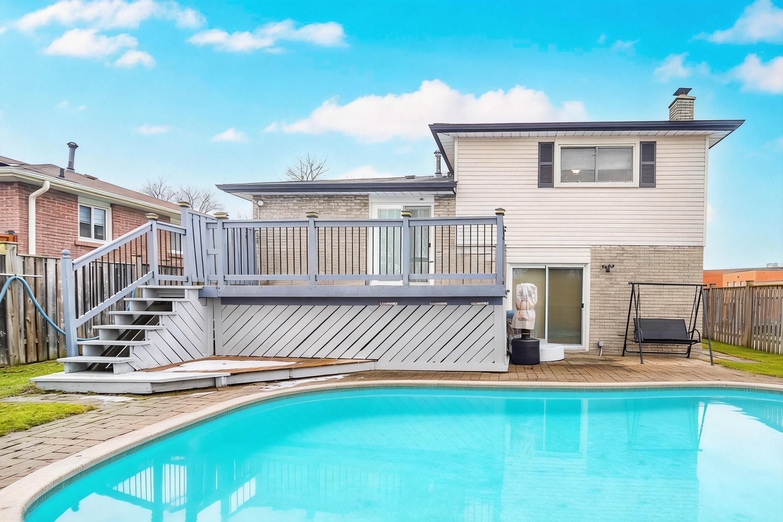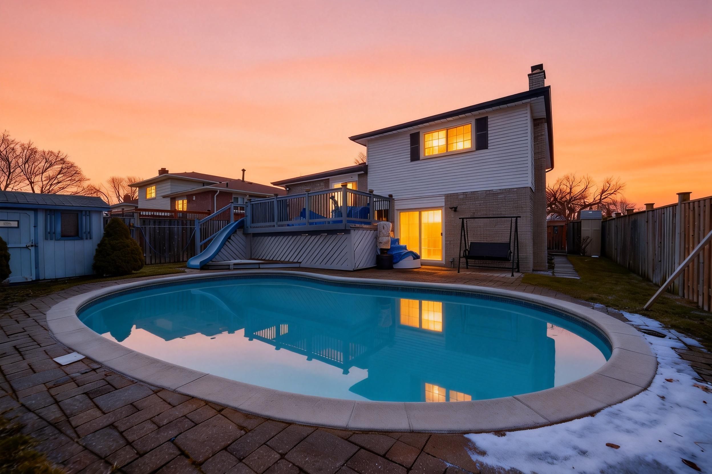Exceptional setting in the desirable beau valley school district. This rarely available 4-level sidesplit is situated on a quiet street offering added privacy and open surroundings. The main level welcomes you with a generous entryway, direct garage access, and a spacious family room complete with a wood-burning fireplace and a walkout to the patio, creating a seamless indoor-outdoor living experience. The eat-in kitchen features quartz countertops and opens onto a deck overlooking a beautifully maintained inground pool, ideal for summer entertaining, with a fully fenced (recently installed) and private backyard. The combined living and dining areas are bright and airy, highlighted by an oversized window. Three bedrooms and a full bathroom are located on the upper floor. Don't miss this opportunity to own a beautiful home in one of the area's most sought-after neighbourhoods in oshawa.