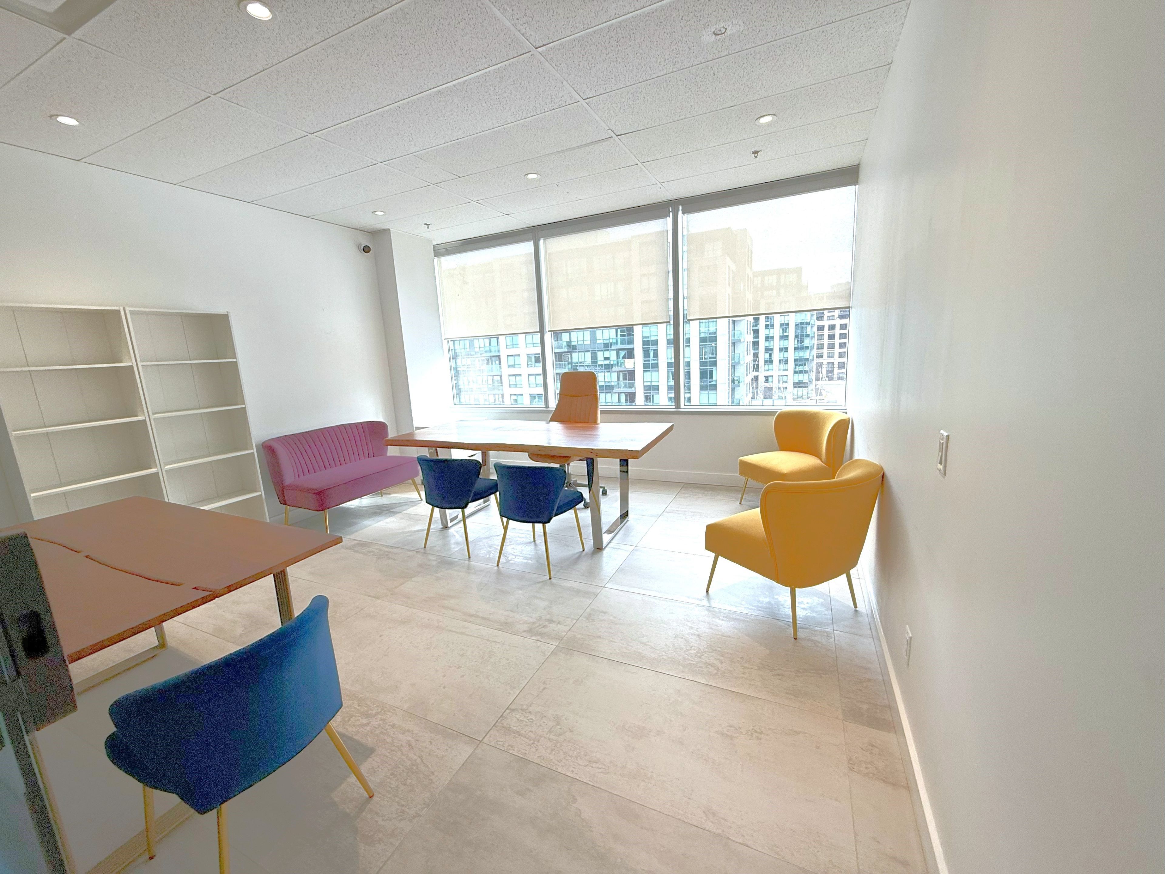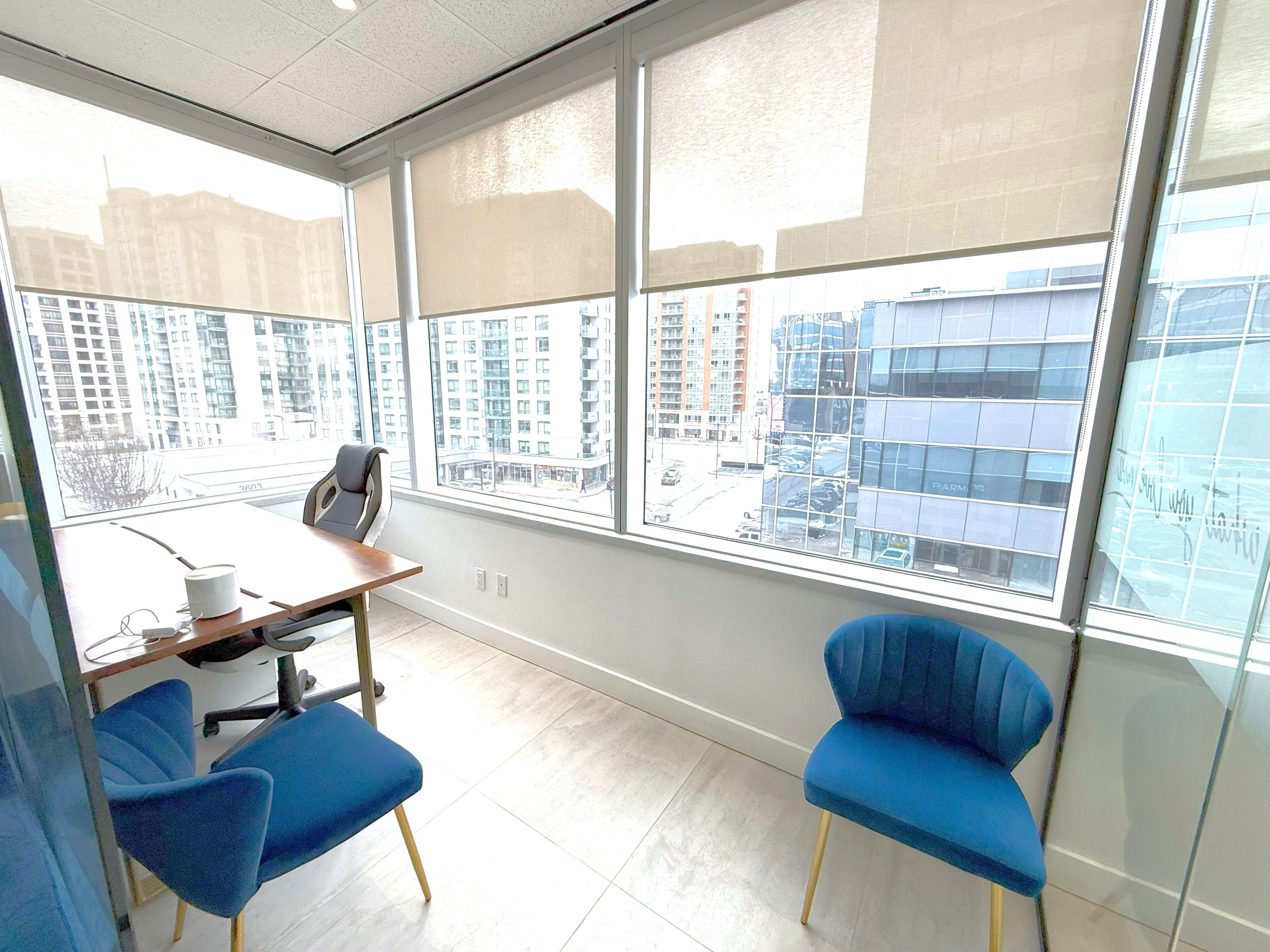 • Bright workspace with expansive windows for natural light.