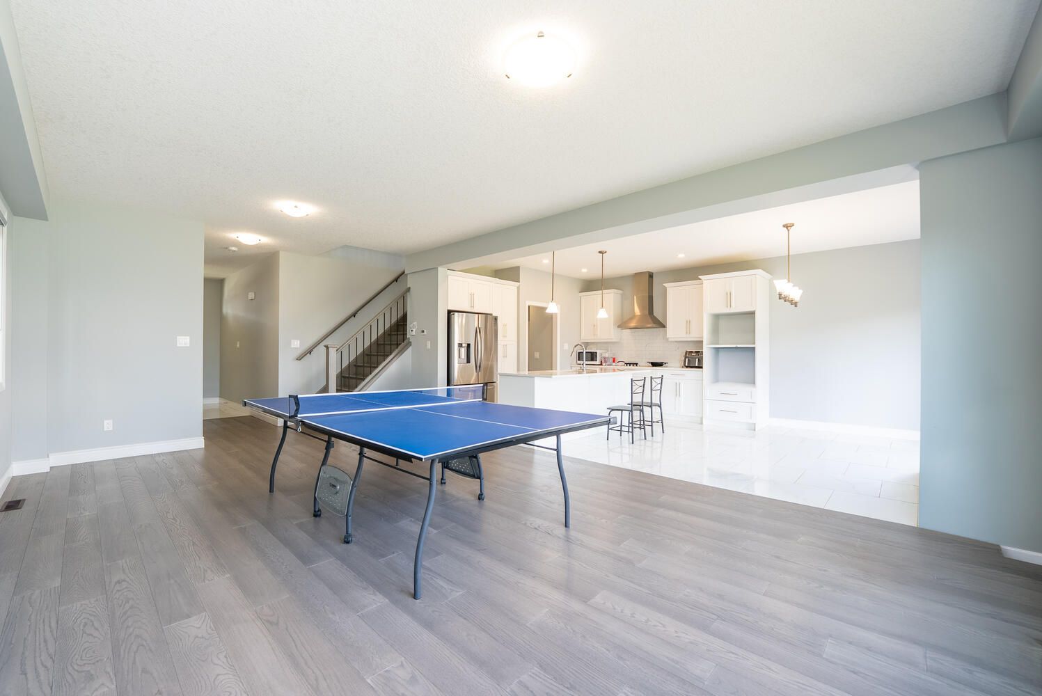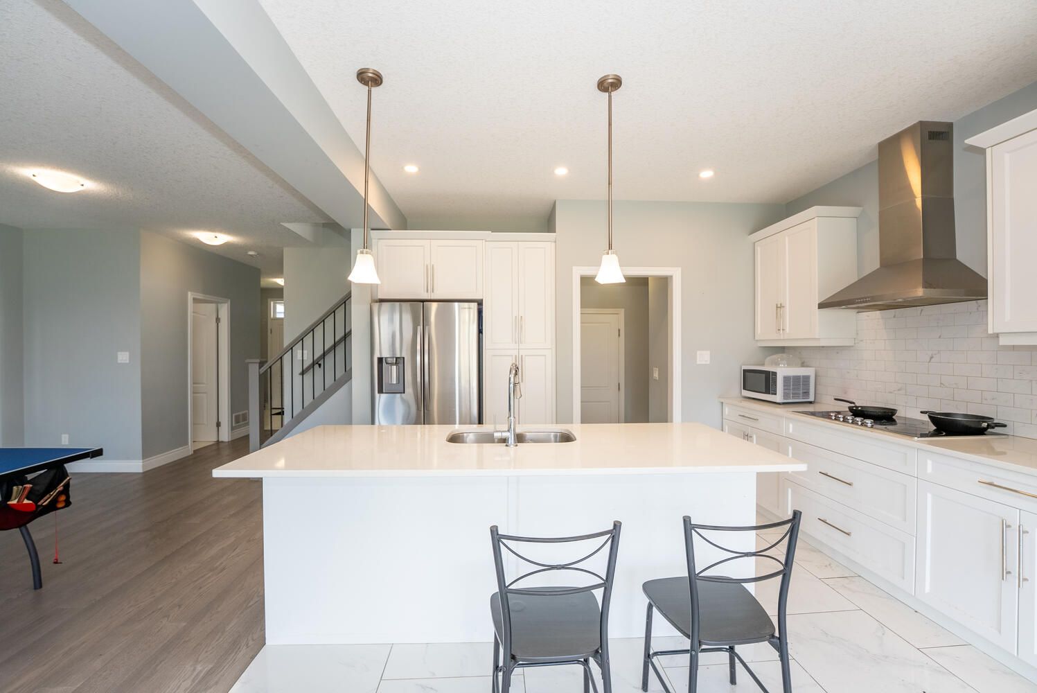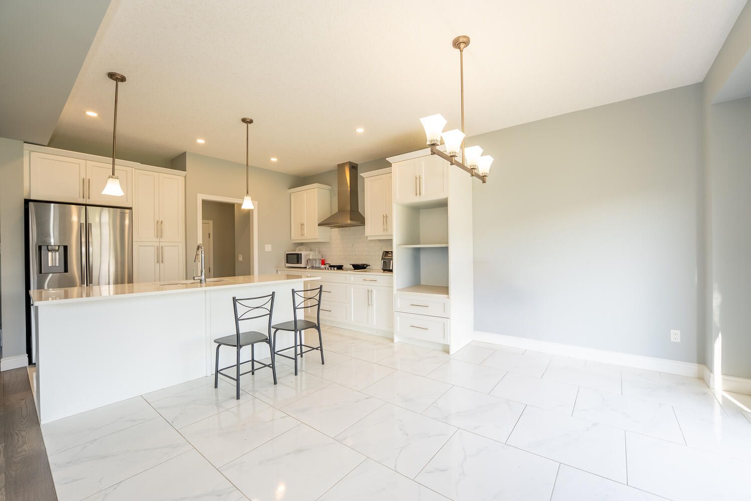 • Open-concept kitchen with granite countertops and stainless steel appliances.