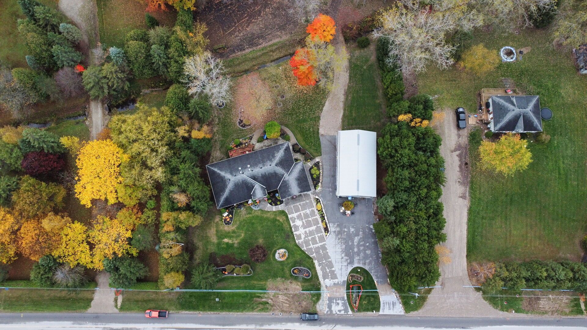 Grand bend ! Located on a quiet paved road just minutes north of town and close to the beach! This custom built ranch style home is situated on 3. 593 acres offering the ultimate in privacy. The yard is like a park with walkways and park benches throughout the treed and grassed areas. The heated shop ( 32'6" x 56') features high ceilings, in floor heating, fully insulated, hot and cold water and is serviced by a fresh concrete driveway and stone retaining wall. Ideal for car enthusiasts , handy man or a home business . This 3 +1 bedroom house plan is 2133 square feet on the main floor with an additional 1323 square feet of finished area in the basement. Special features include a huge main floor laundry/ sewing room, an updated kitchen( 2021) with separate dinette overlooking the rear yard as well as a full formal dining room. The great room has 10 foot tray ceilings and a gas fireplace. The spa like 5 pc bathroom with ensuite privileges was updated in 2024 along with the main floor 3 pc bathroom. The lower level is bright and open with high ceilings and lots of windows. Open concept family room and games room is 58 feet wide! The lower level floors feature luxurious in-floor heating! This home has been meticulously maintained and updated thought ! A short list of special features included: central vacuum system, owned hot water heater and water softener in 2024, phantom screens in the doors , huge sundeck refinished 2025 , high speed fibre optic internet and much, much more! All of this, and you're still just minutes to the beaches, grocery store & just a stones throw from the playhouse & winery! Contact listing agent for complete list of extras and upgrades.