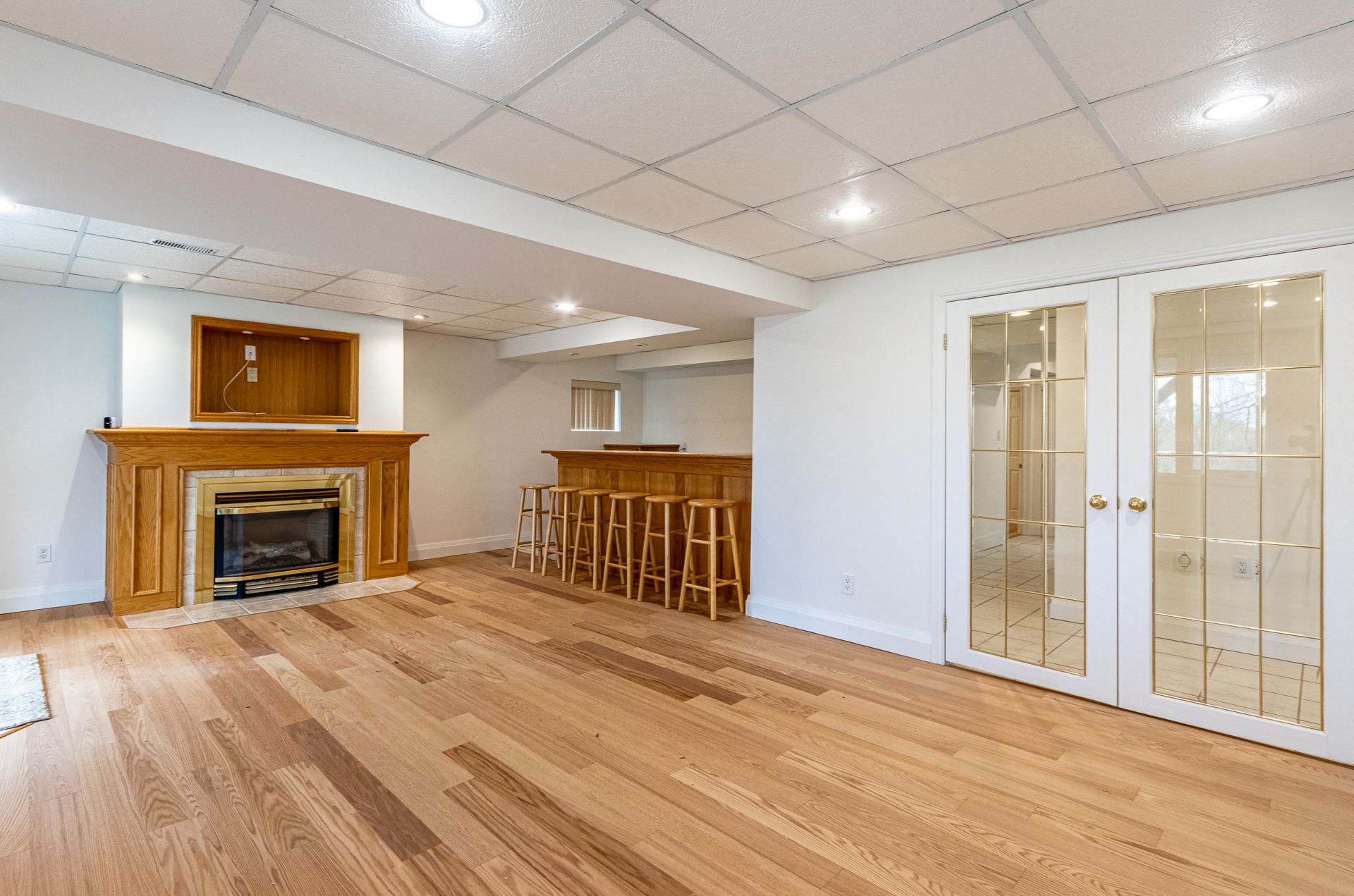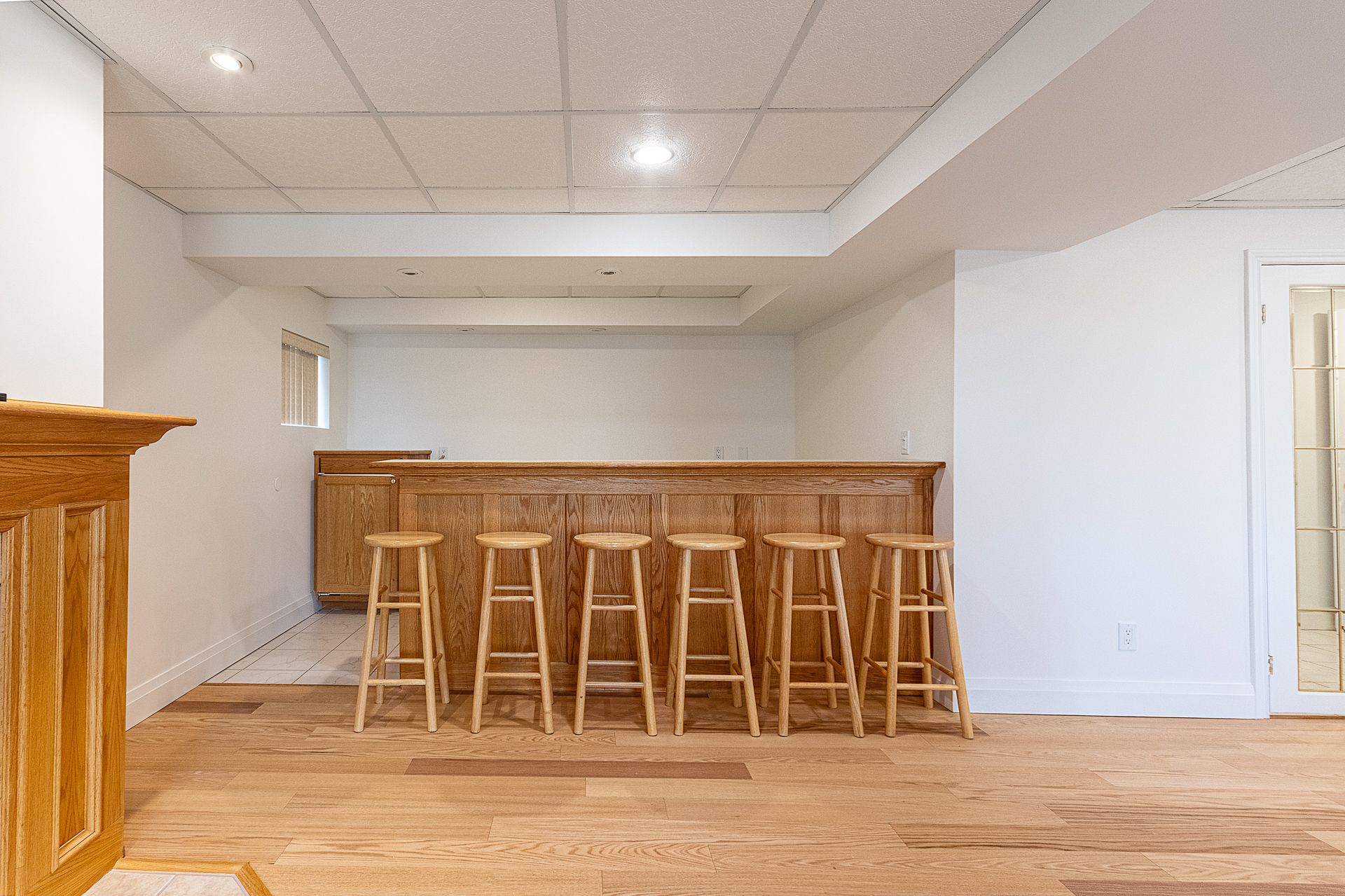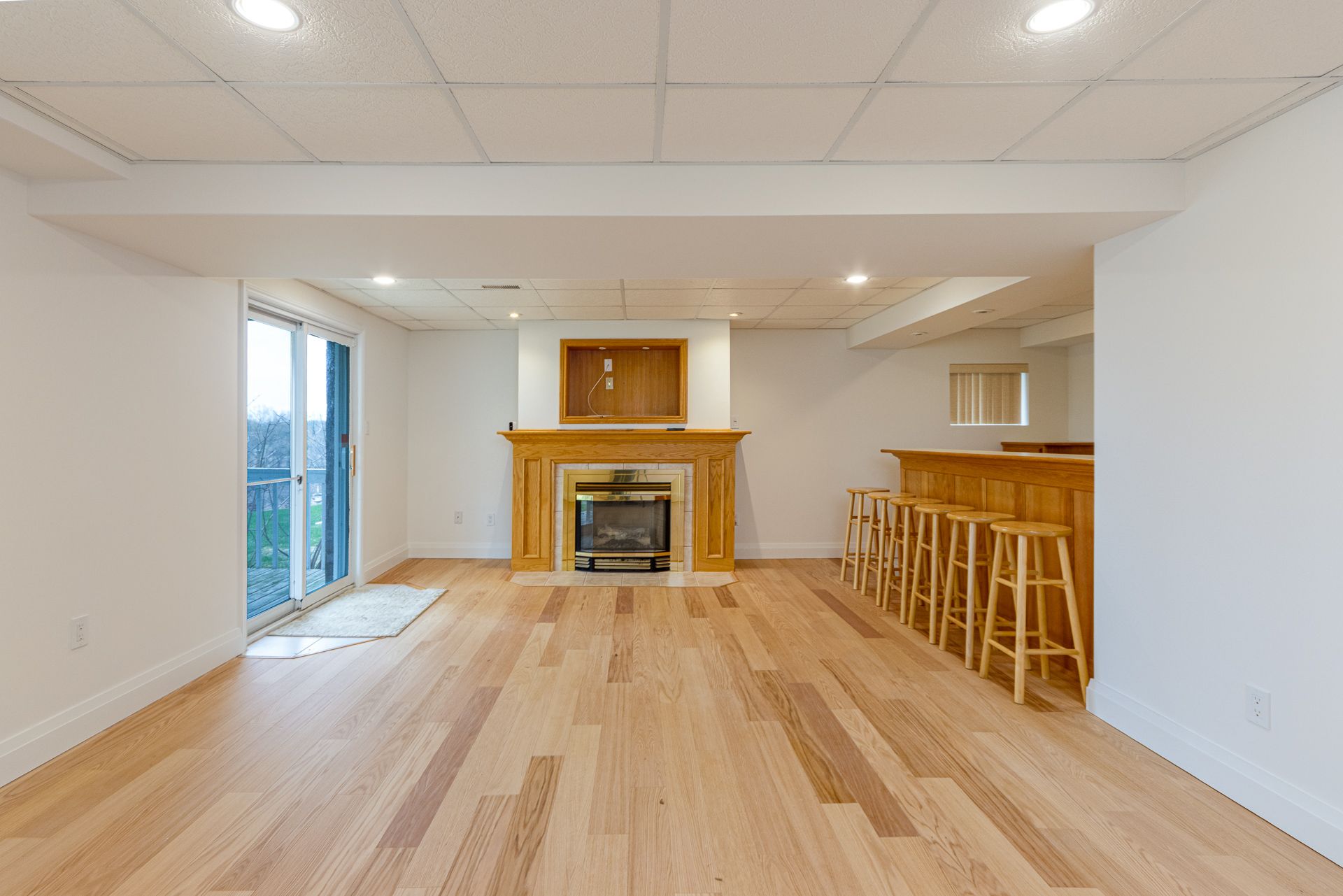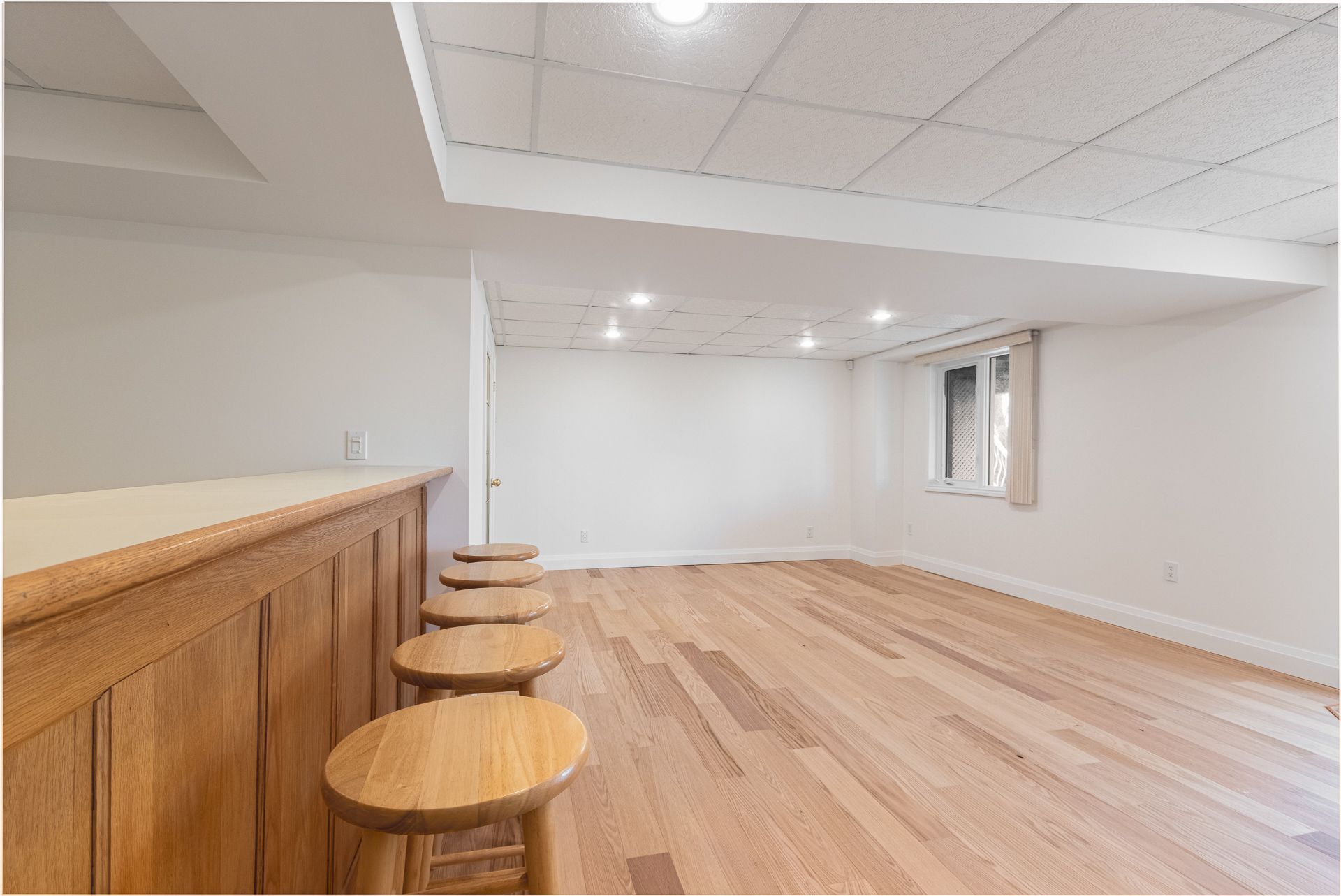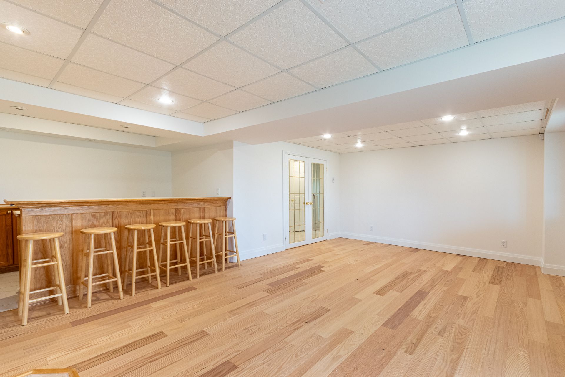 • Finished basement with two bedrooms and a large rec room with bar.