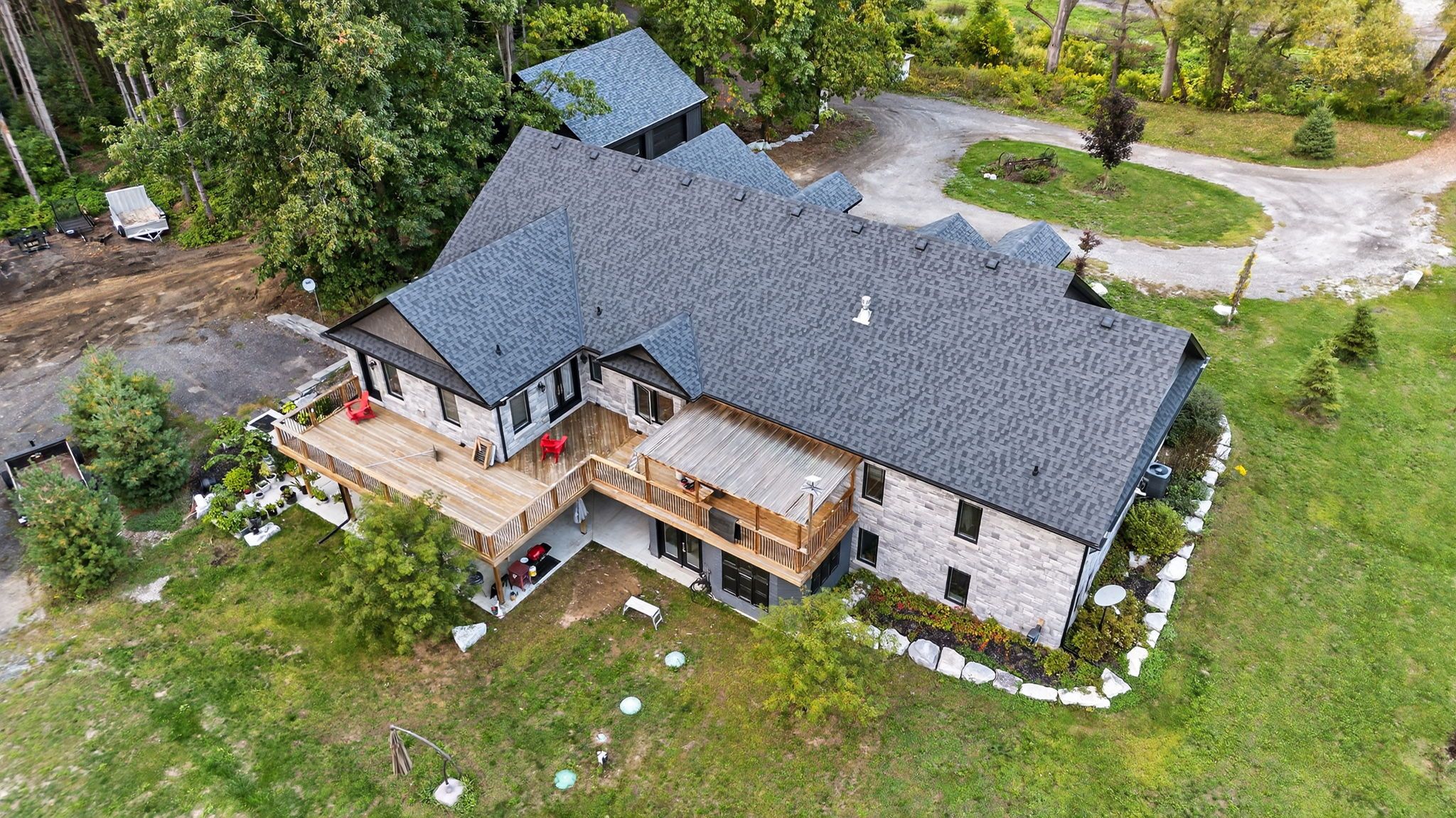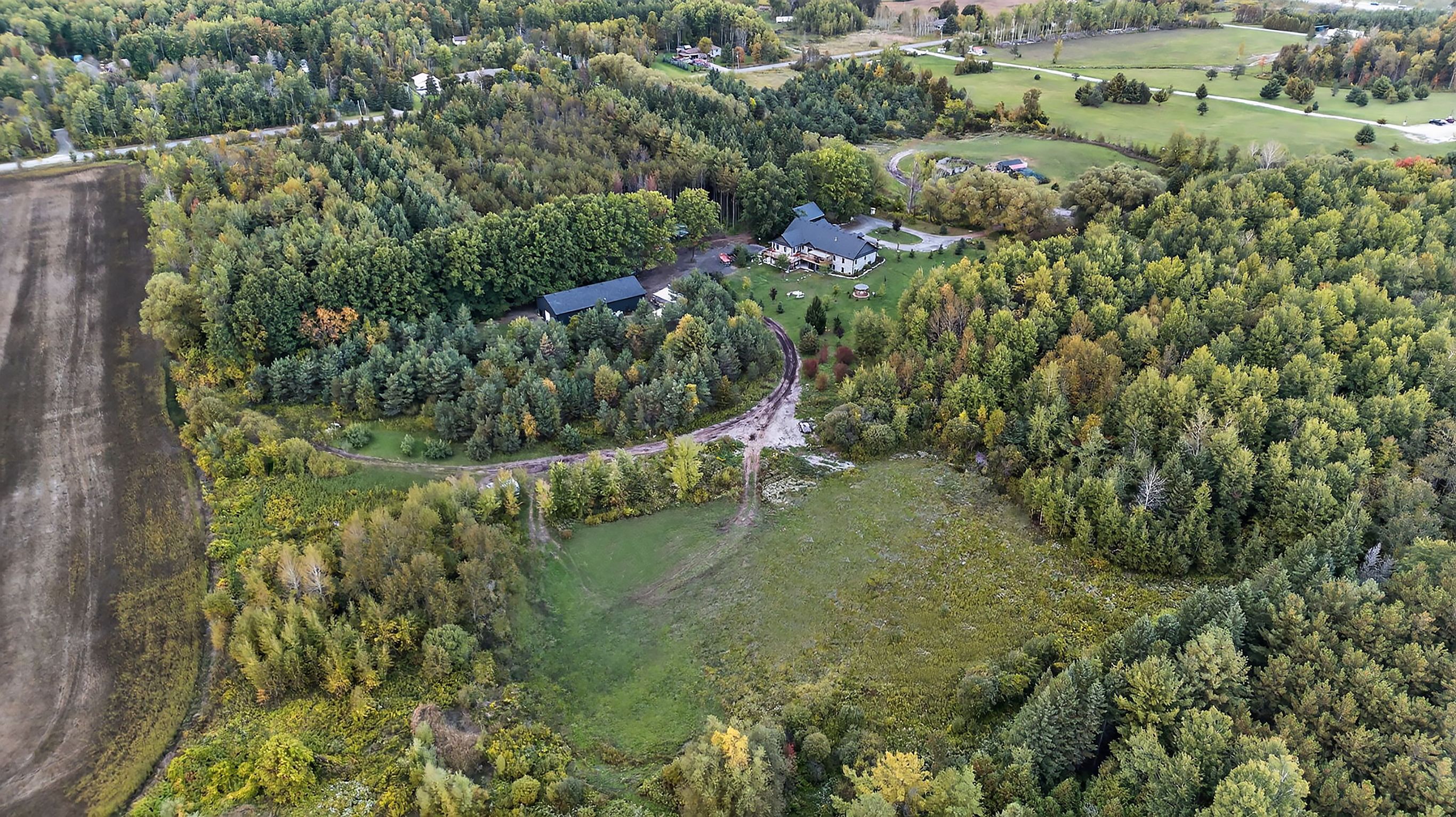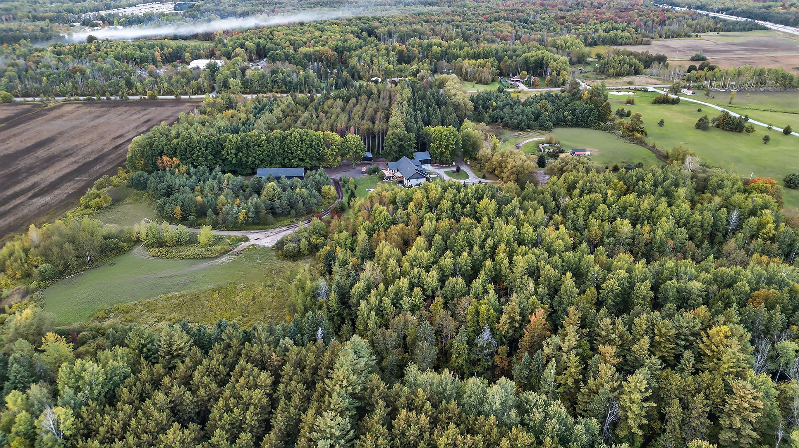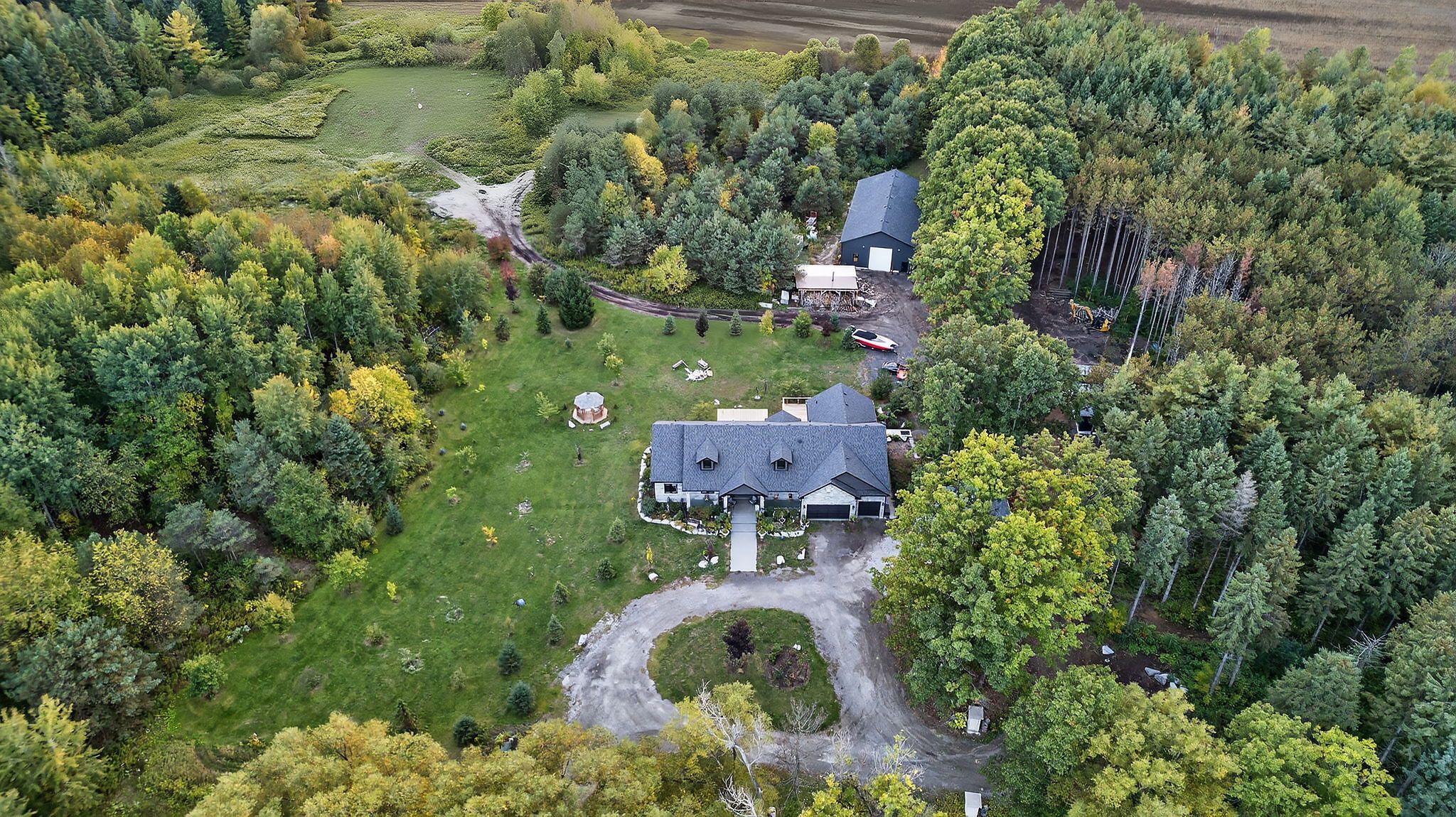 One of a kind, remarkable home & property nestled on 53. 8 acres of private land, currently generating over $6,000 per month in additional revenue with room to increase. Full workshop with 3,400 sqft of space, separate heating & cooling system. 2x separate driveways each with gated access, leads to main home & back workshops + land. 2x detached garages with 528 sqft, separate heating, plus bonus 2nd level 2,600 sqft apartment with full kitchen & separate laundry. Additional basement apartment with 2 bedrooms, full kitchen, separate laundry & entrance. Plus rough-in available for upper level additional apartment currently family & dining room! Total potential for 4 separate living spaces, perfect for multi-generational families looking to live together or to generate additional income. Filled with pride of ownership main home features over 5,800+ sqft of total living space. Grand entrance leads to open concept main area with vaulted ceilings, ceramic tile floors. Chef's kitchen with huge centre island, stainless steel high-end appliances, pot filler, quartz counters, & lots of storage space. Combined living & dining rooms with walk-out to deck, & beautiful fireplace accent. 3 spacious bedrooms each with closet space & hardwood floors throughout. Primary bedroom features 4 piece ensuite, walk-in closet, & second closet! Lower level rec room with walk-out to backyard patio, & covered hot tub! Tons of green space to enjoy evening fires or ride atv's around the forest! Full back-up generac generator to home. 400amp panel with 200amp for the shop, & 200amp for the house. Each garage with separate 100amp panel. Roof (2019). New deck (2021). Spray foam insulation & central vac in both home & shop. All windows & doors (2019). Enjoy rural living at it's finest surrounded by forest, mature fruit trees including plum, apple, & pear trees, plus vegetable gardens, & a chicken coop! Nestled in rural bradford close to highway 400, groceries, shopping, rec centres, schools, & more!