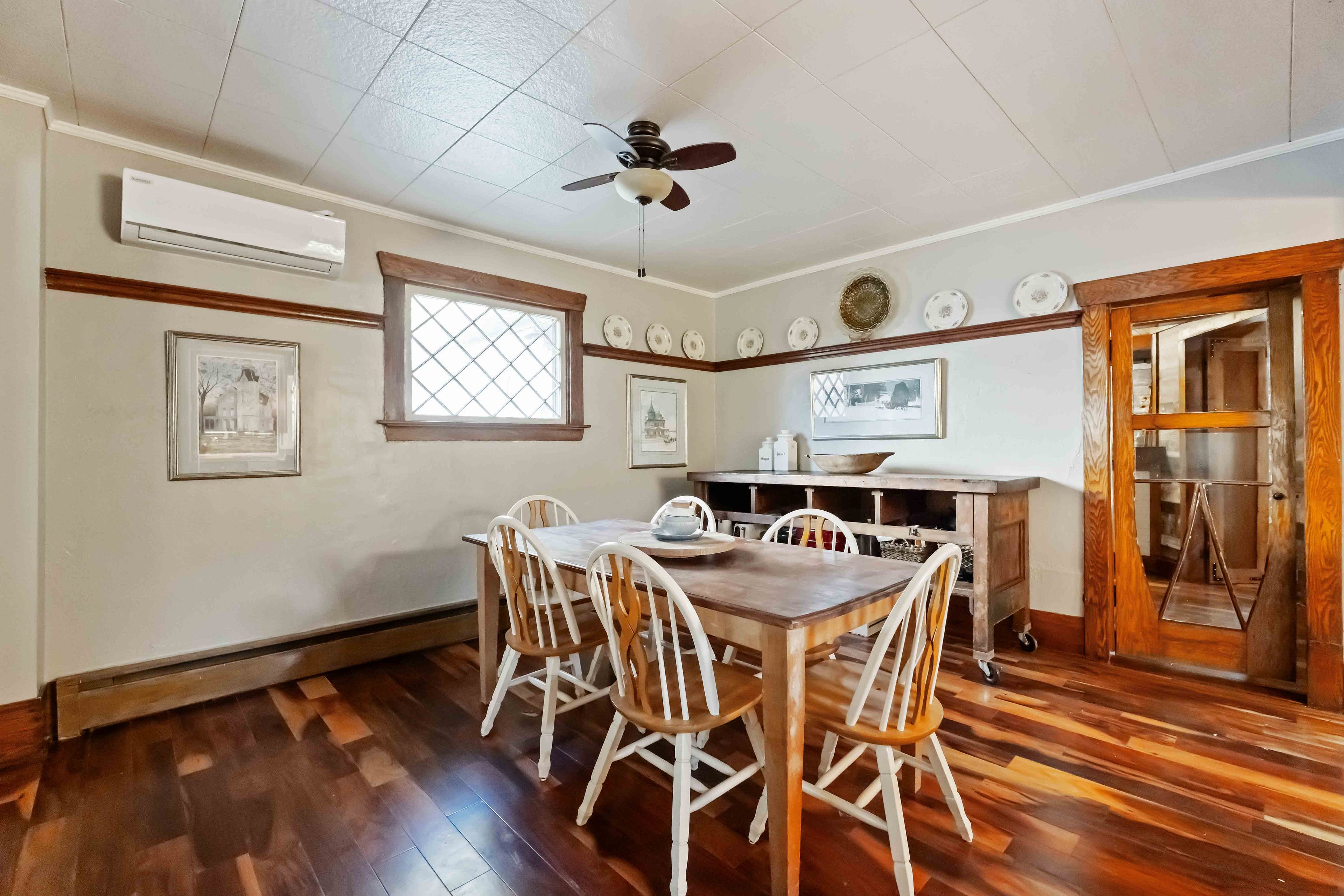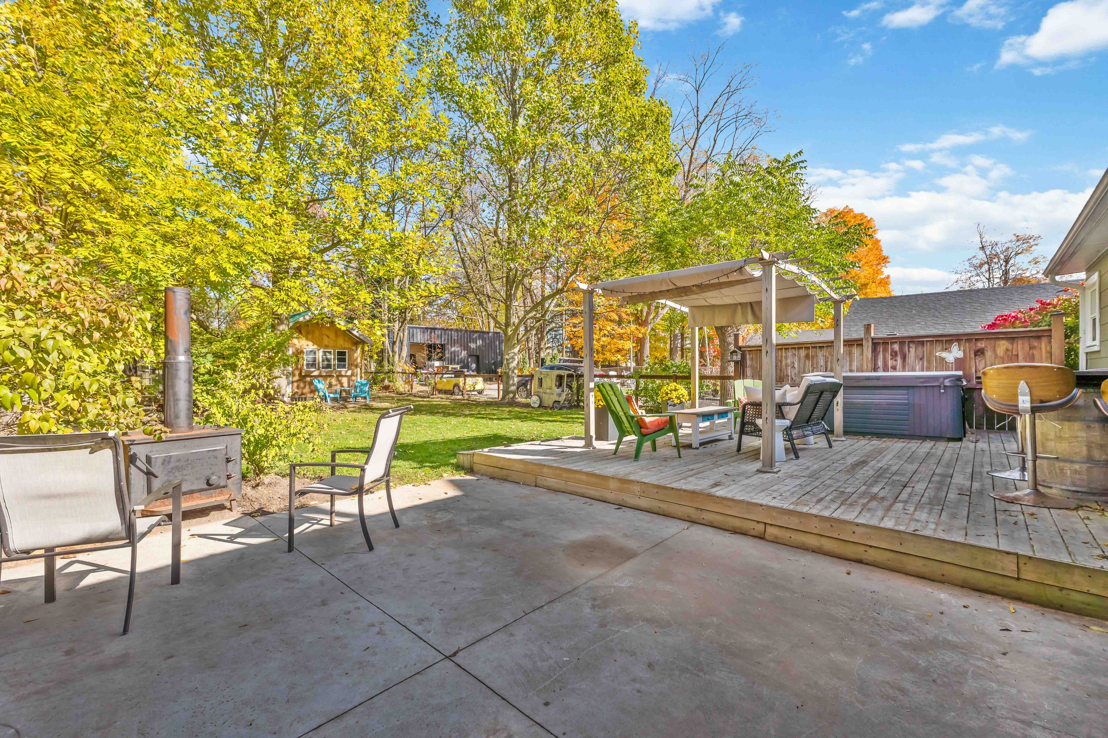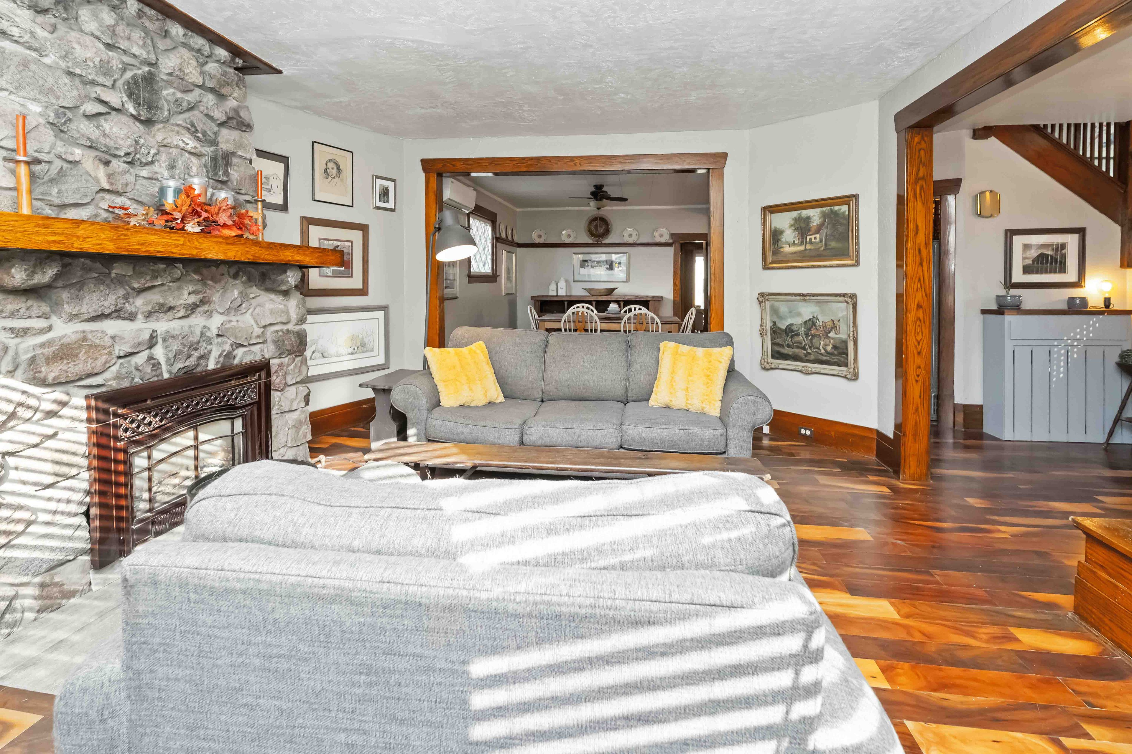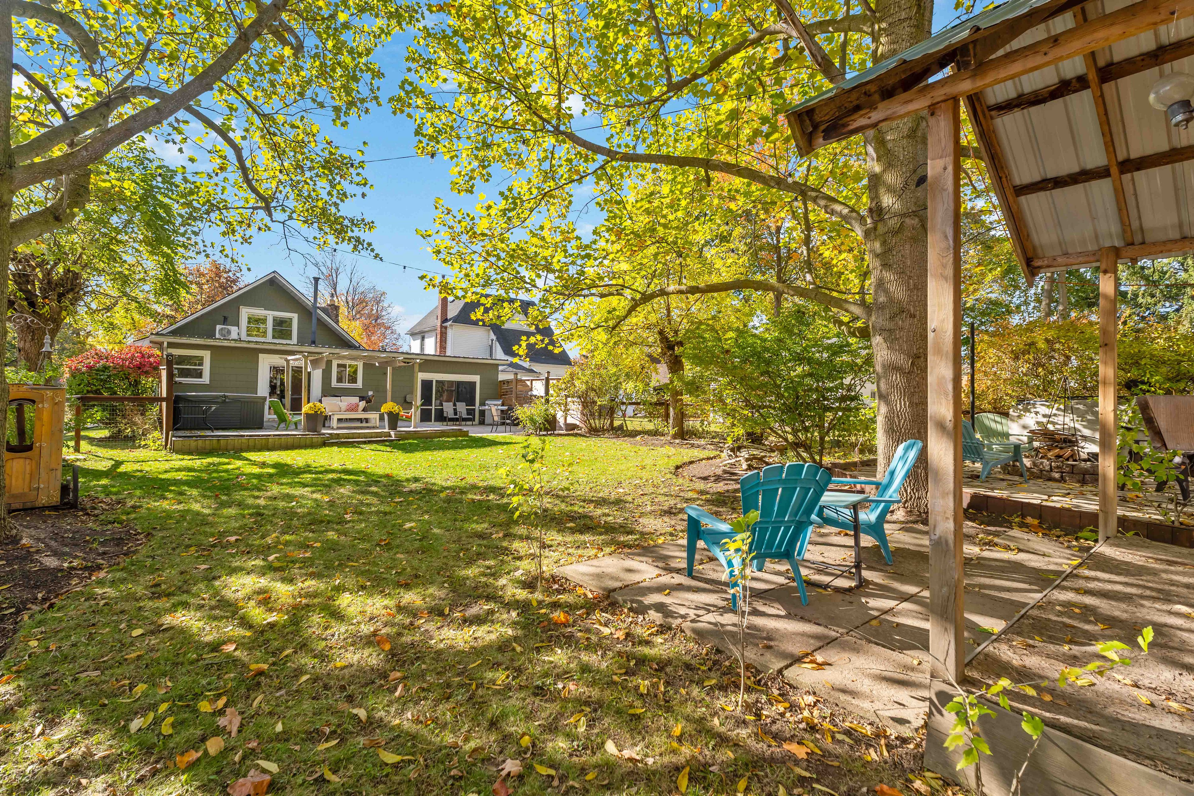 Welcome to 3638 cutler street -- a true character home that blends timeless old-world charm while offering an inviting open layout, perfect for todays lifestyle. From the moment you step inside, you'll feel the warmth and authenticity that make this property so special. The generous living room flows seamlessly into the spacious, character-filled dining room and kitchen, creating an open, airy feel that's perfect for everyday living or entertaining friends and family. The welcoming foyer, showcases the original staircase and rich wood trim, reflecting the craftsmanship of a bygone era. The main-floor primary bedroom is both practical and private, featuring sliding patio doors that open to the deck and hot tub, the perfect spot to unwind while enjoying the picturesque, treed backyard. This room has been changed to a tv/family room at present as it shows the 'flex-space' that it can serve as. The yard feels like a private retreat with plenty of room to relax. A convenient main-floor laundry room adds extra functionality. Throughout the home you will find unique architectural touches and character details - the granite fireplace that anchors the living room with warmth and style and the beautifully placed wood-framed windows that fill the home with natural light. Every corner offers something special, making this home truly stand apart from the ordinary. Set on a quiet street with wonderful curb appeal, this property offers the best of small-town living. You're just steps from the friendship trail and within easy walking distance to downtown ridgeway, known for its charming boutiques, cozy coffee shops, restaurants, and the ever-popular farmers' market. Full of warmth, history, and heart, 3638 cutler street is not a cookie-cutter home - it's a rare find that perfectly combines character, comfort, and location in one remarkable package.