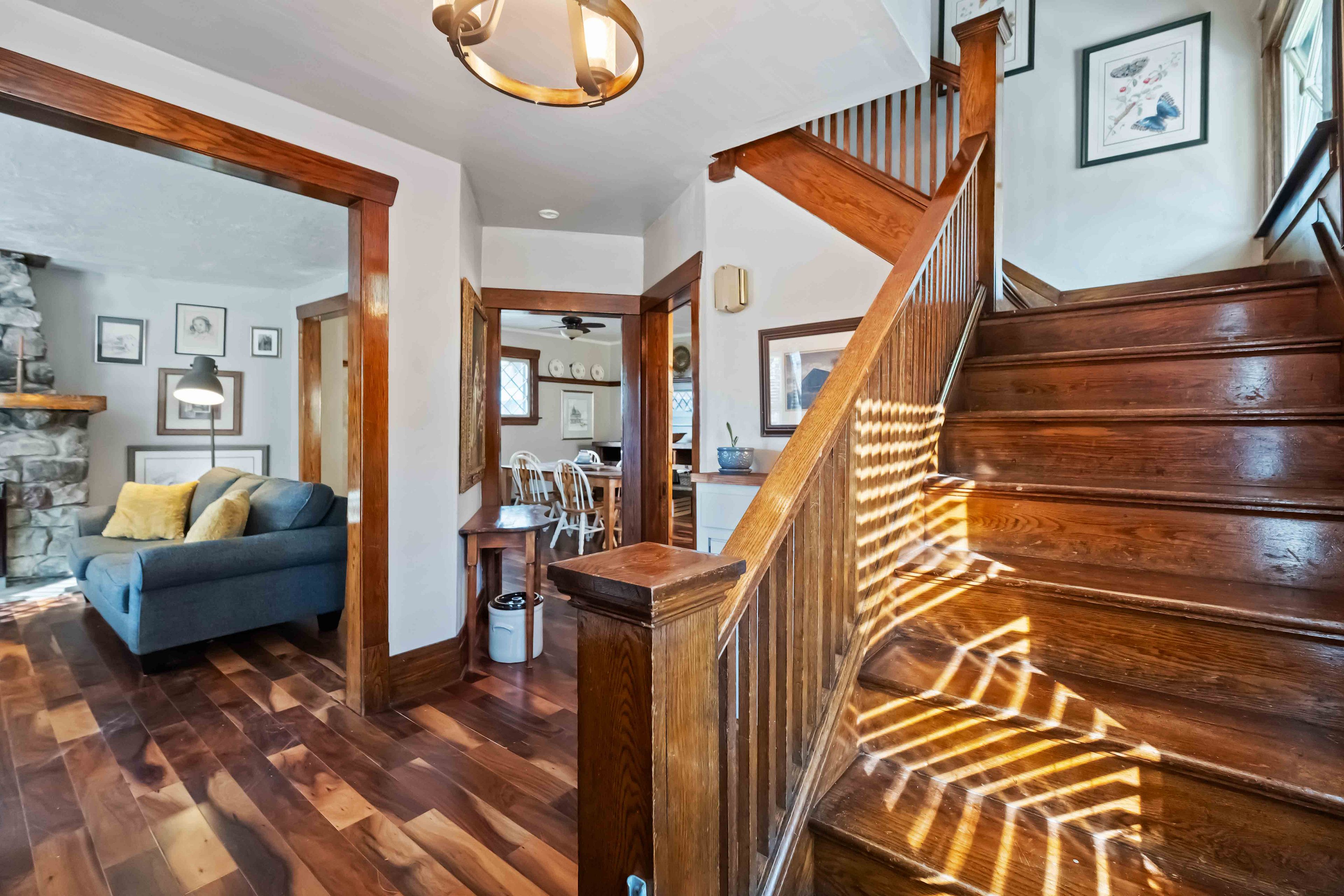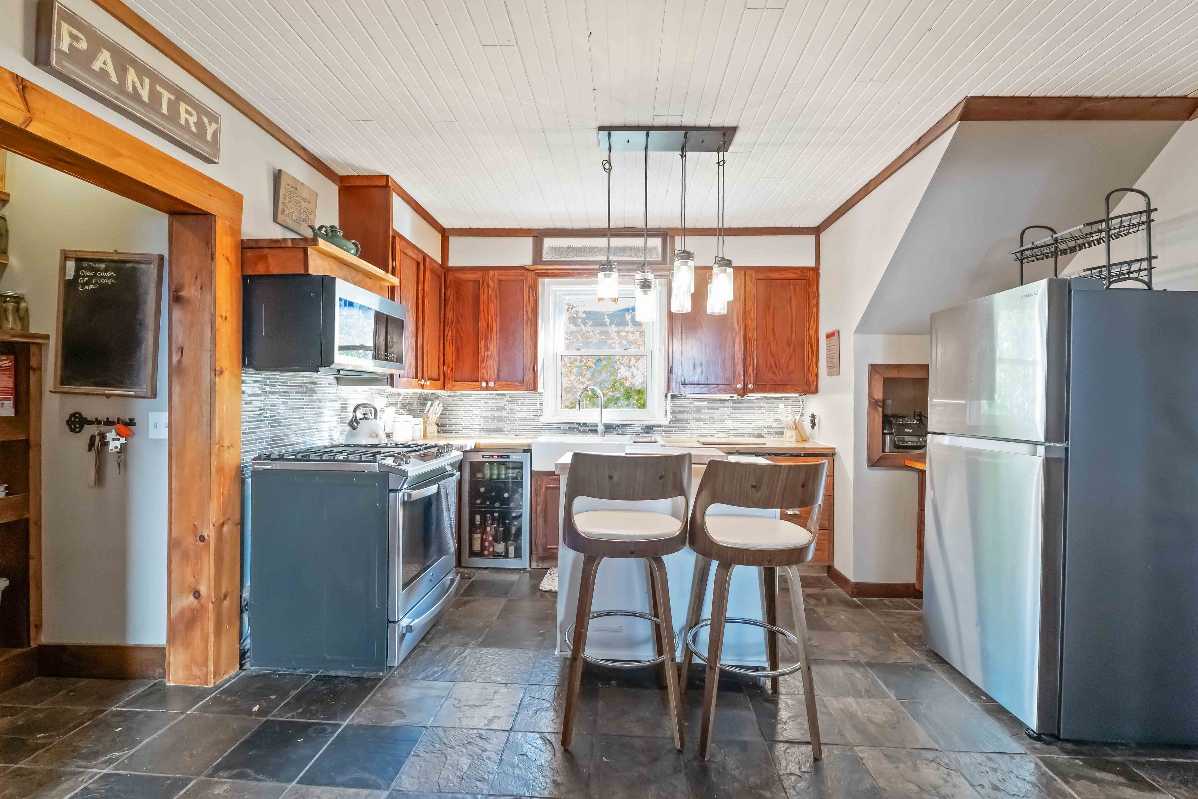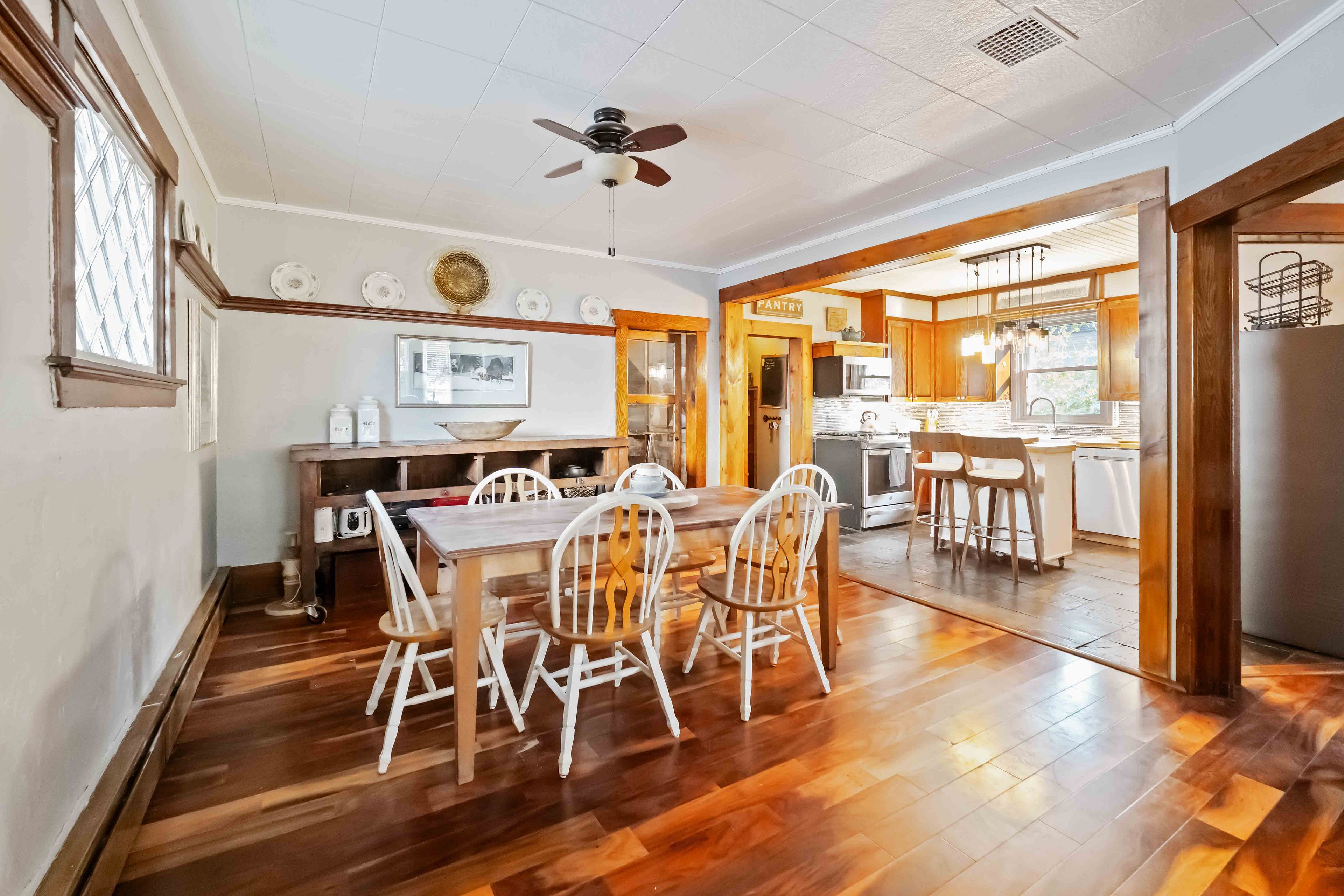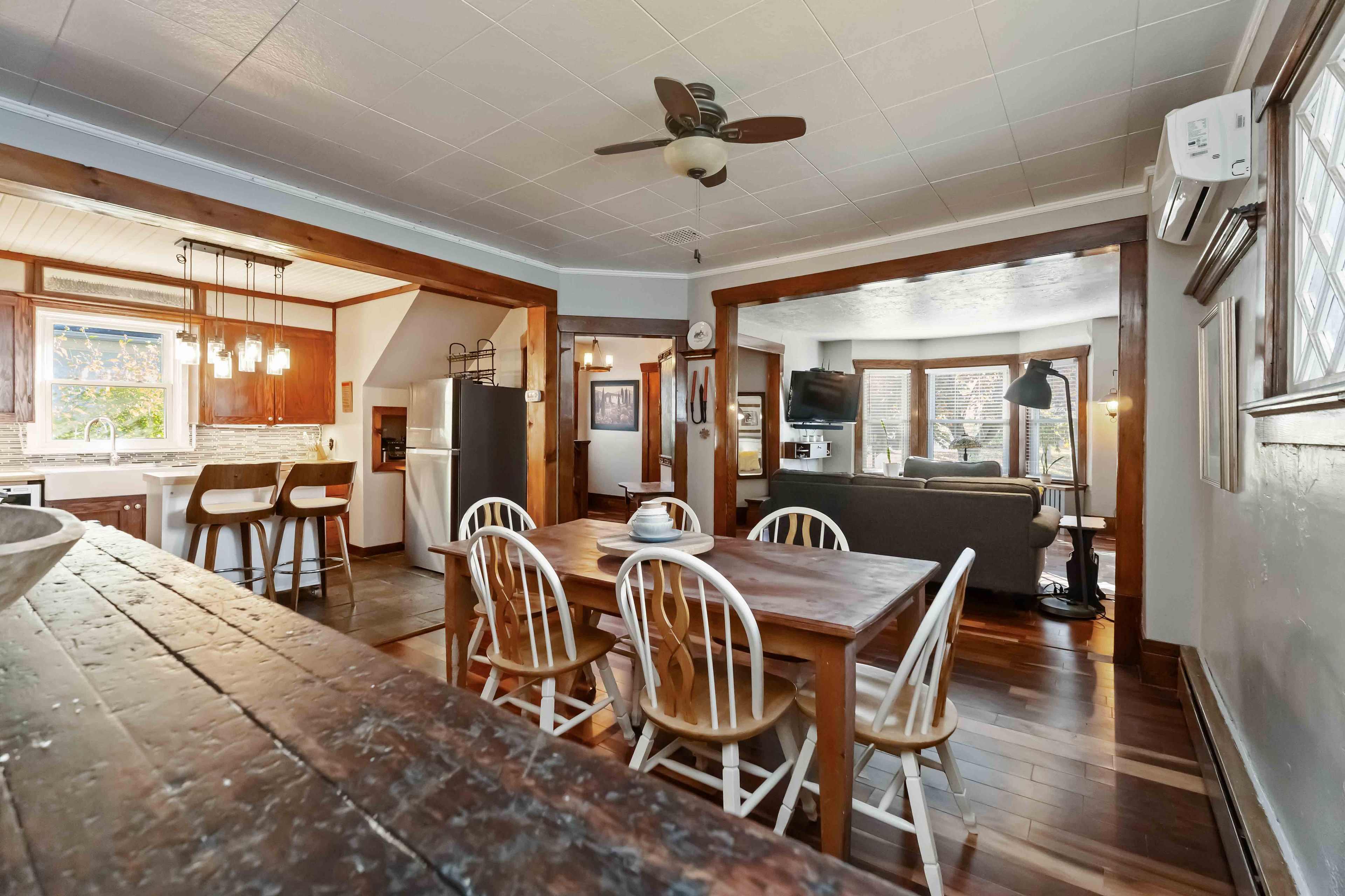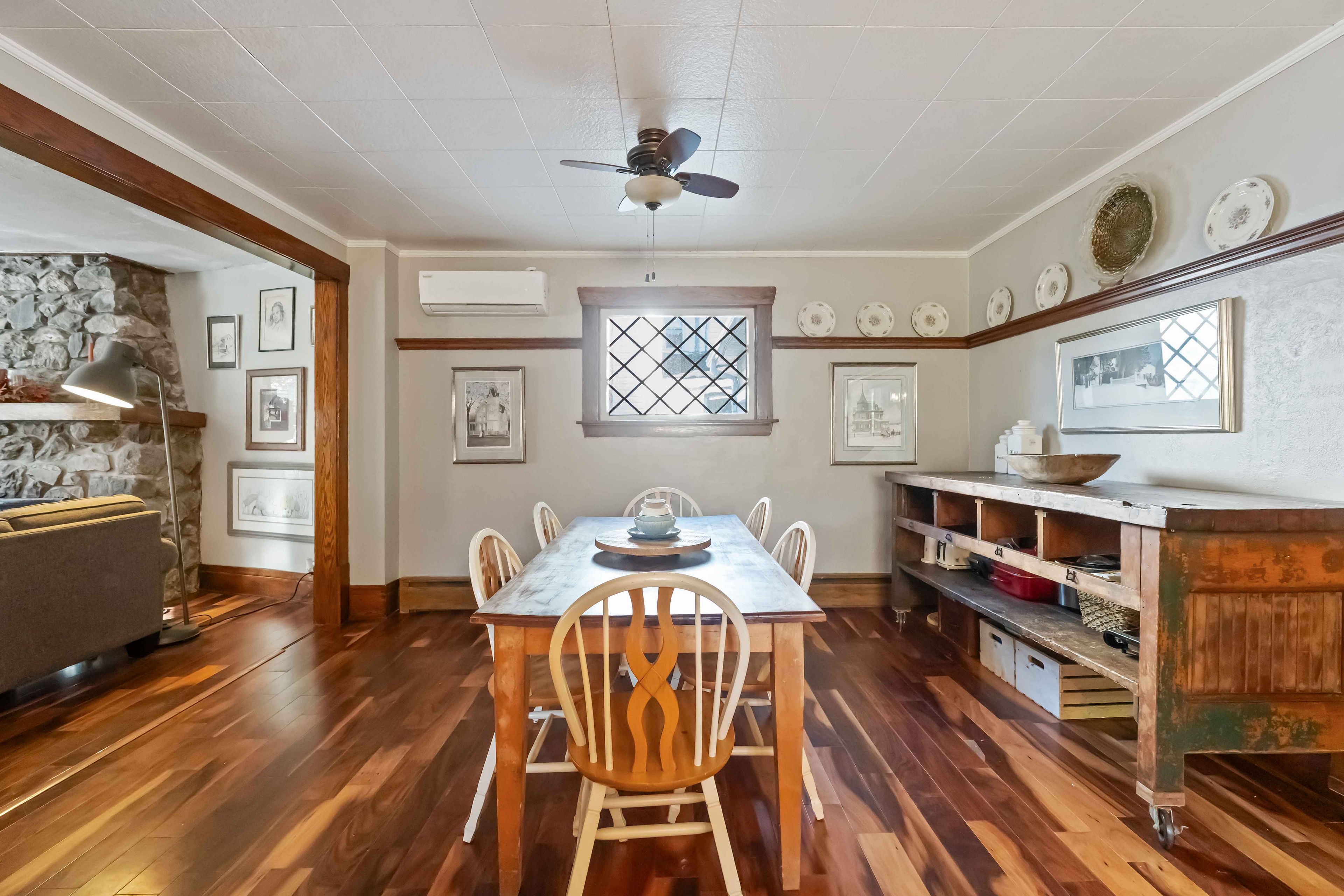 Welcome to 3638 cutler street -- a true character home that blends timeless old-world charm while offering an inviting open layout, perfect for todays lifestyle. From the moment you step inside, you'll feel the warmth and authenticity that make this property so special. The generous living room flows seamlessly into the spacious, character-filled dining room and kitchen, creating an open, airy feel that's perfect for everyday living or entertaining friends and family. The welcoming foyer, showcases the original staircase and rich wood trim, reflecting the craftsmanship of a bygone era. The main-floor primary bedroom is both practical and private, featuring sliding patio doors that open to the deck and hot tub, the perfect spot to unwind while enjoying the picturesque, treed backyard. This room has been changed to a tv/family room at present as it shows the 'flex-space' that it can serve as. The yard feels like a private retreat with plenty of room to relax. A convenient main-floor laundry room adds extra functionality. Throughout the home you will find unique architectural touches and character details - the granite fireplace that anchors the living room with warmth and style and the beautifully placed wood-framed windows that fill the home with natural light. Every corner offers something special, making this home truly stand apart from the ordinary. Set on a quiet street with wonderful curb appeal, this property offers the best of small-town living. You're just steps from the friendship trail and within easy walking distance to downtown ridgeway, known for its charming boutiques, cozy coffee shops, restaurants, and the ever-popular farmers' market. Full of warmth, history, and heart, 3638 cutler street is not a cookie-cutter home - it's a rare find that perfectly combines character, comfort, and location in one remarkable package.