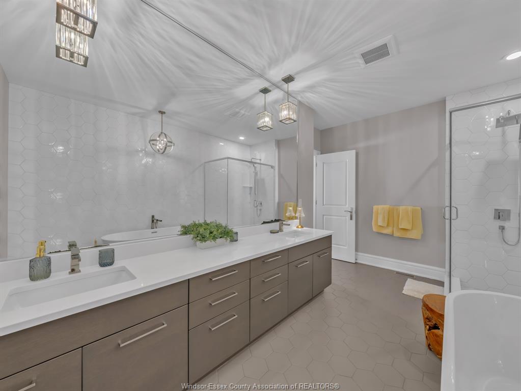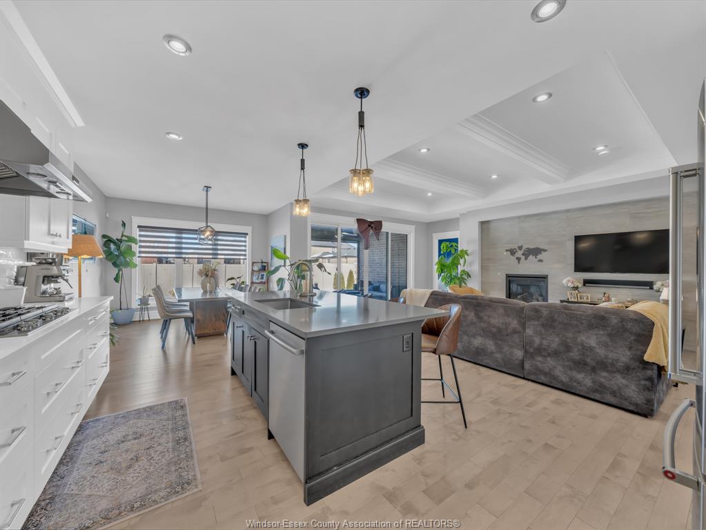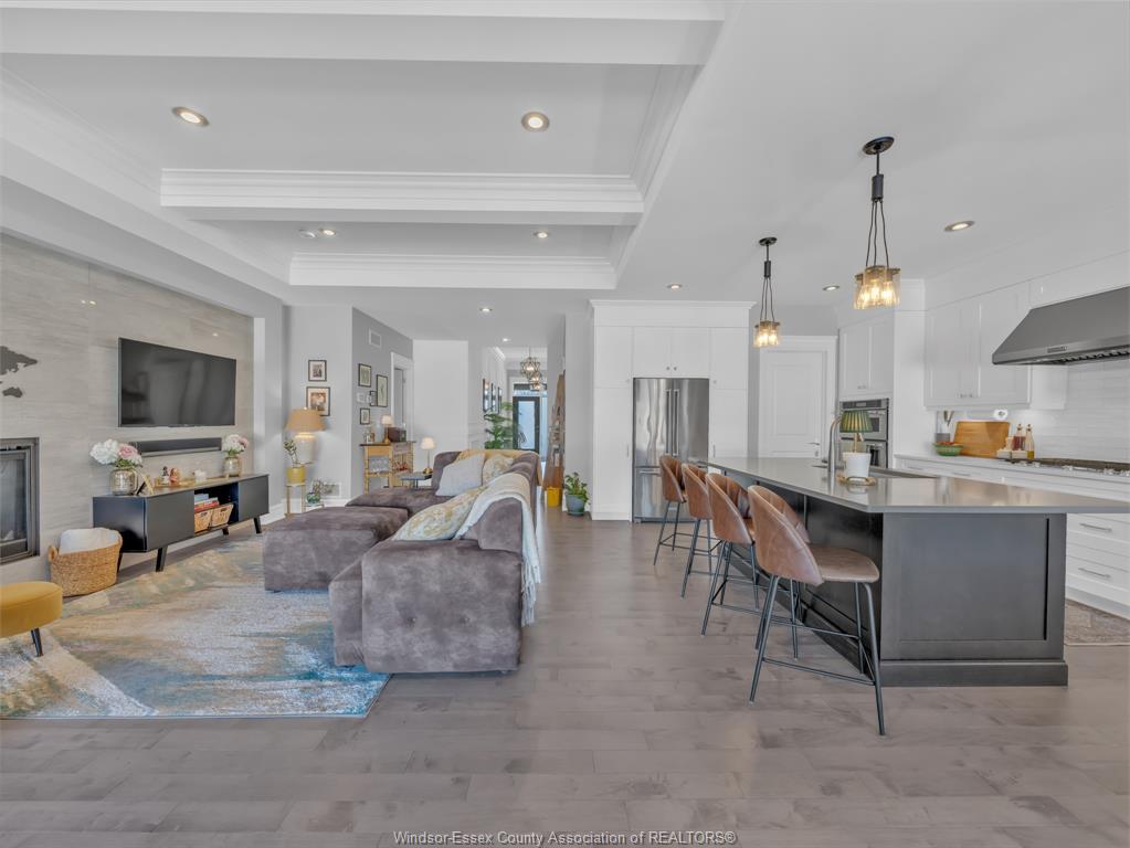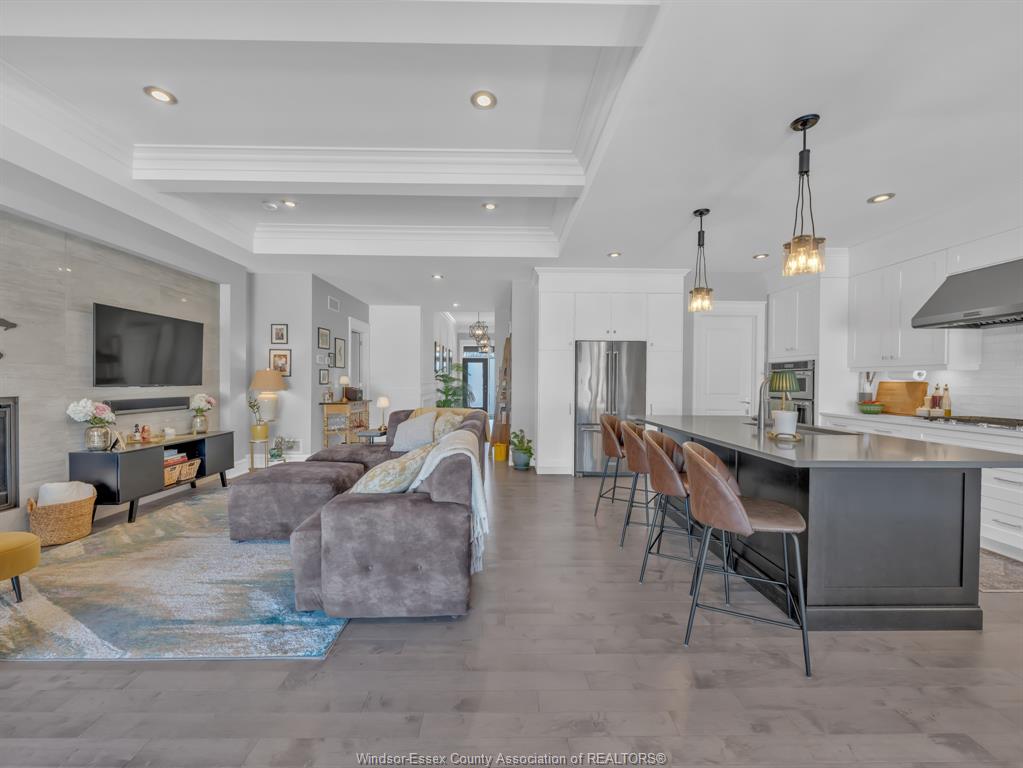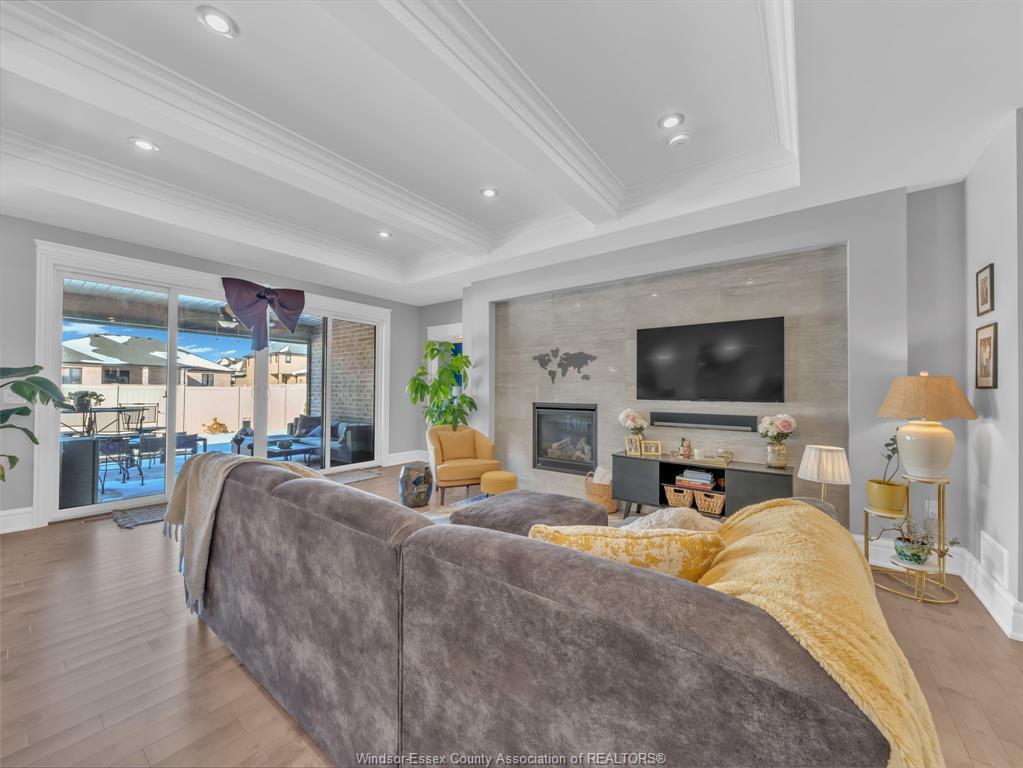 Welcome to 3639 seven lakes, lasalle! Showcase stopper. This fully upgraded townhome approx. 2050 square feet on main floor features 3+1 bedrooms, 3 full bathrooms with granite, glass and tiles. Premium selections on flooring trim, doors, glass, porcelain, wood, hardware and more! Coffered ceilings, beautiful tile wall gas fireplace, tall doors, modern kitchen w/stainless built in appliance appliances, tiled backsplash, crown moldings. Large primary bedroom suite with walk-in closet, and stunning ensuite with his/hers sinks, jacuzzi tub & glass shower. Large laundry on main floor/ lots of cabinets. Covered rear area patio for entertaining with extended patio. Large fully finished lower/ beautiful bar area and recreation room with additional room or office space. Move in ready, immediate possession/flexible closing. Double garage with driveway that is fully independent from others. Townhome assoc is $127/month incl grass/snow/sprinkler/window maintenance.