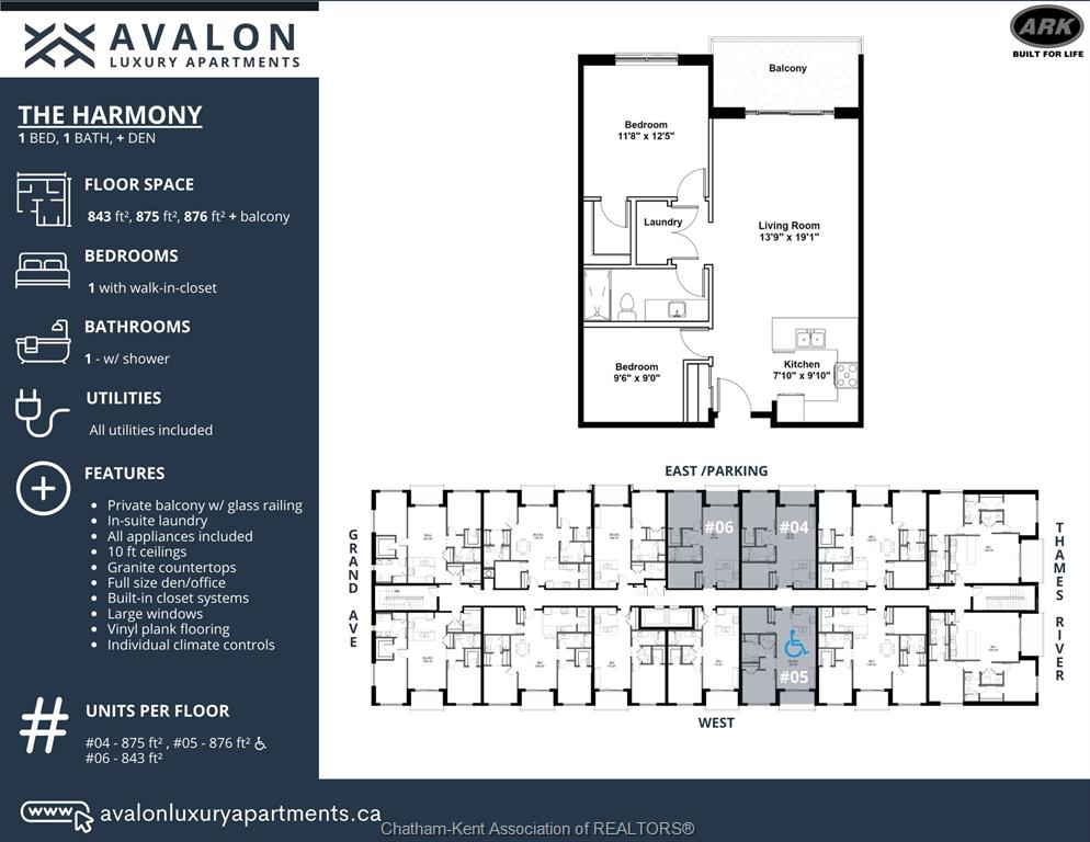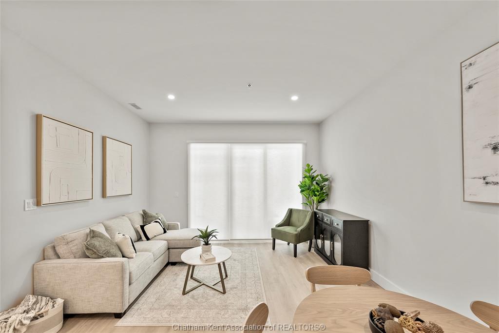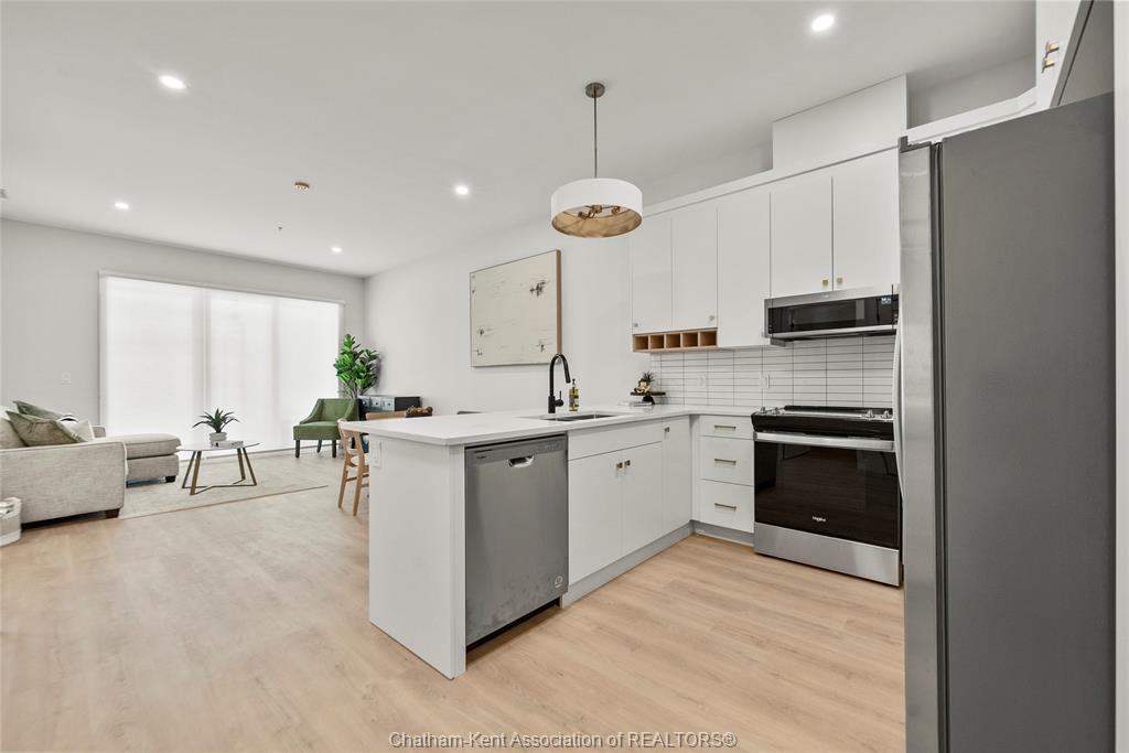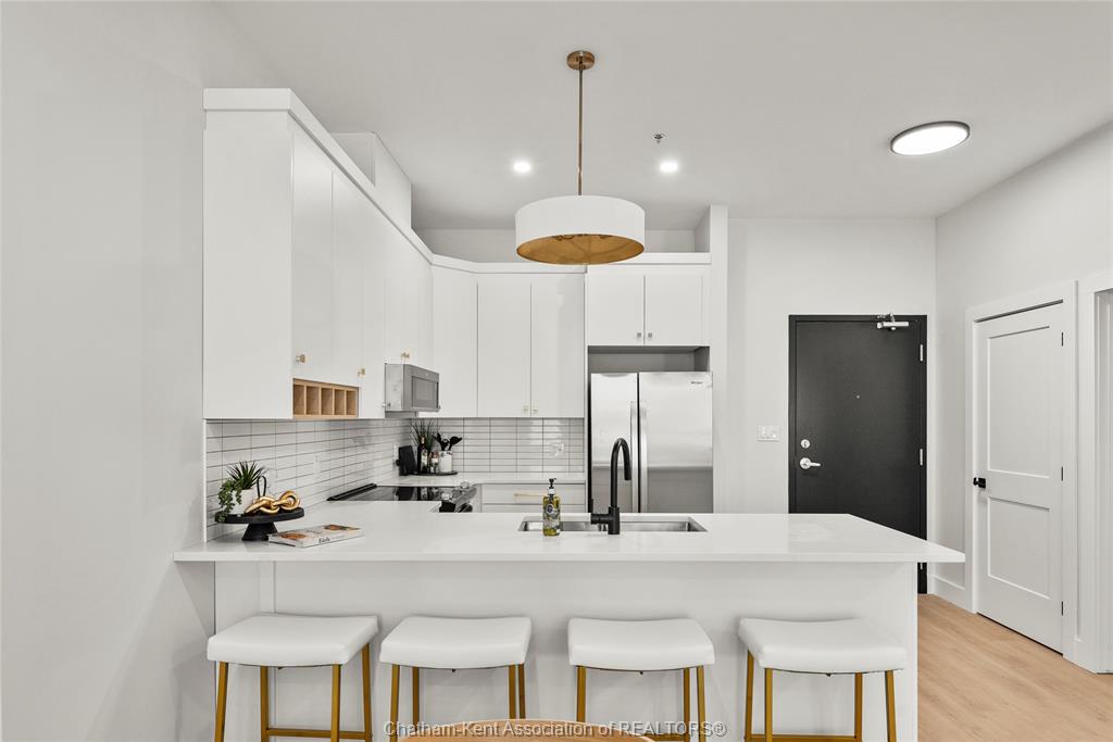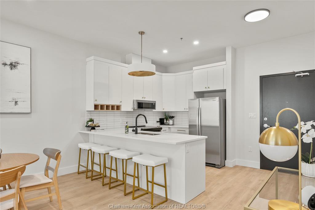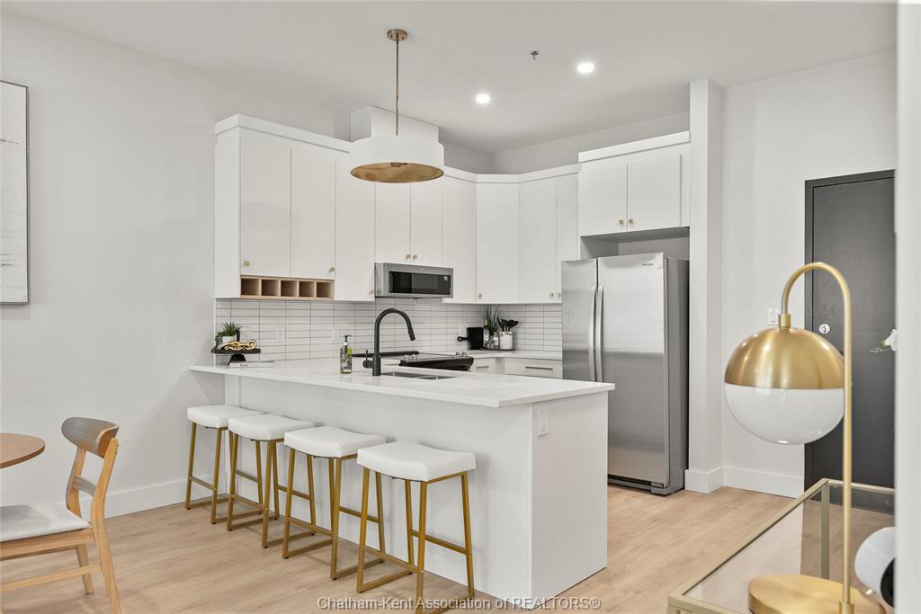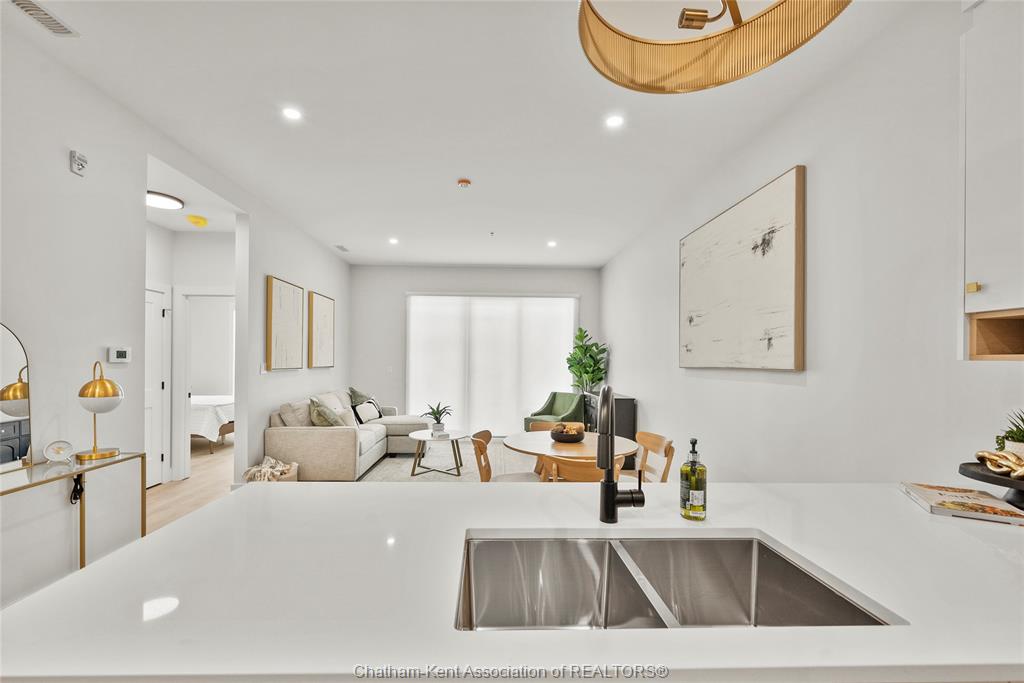 Welcome to the avalon on grand, where luxury meets convenience. Ark design build's newest offering in chatham, a spacious one-bedroom apartment with full size den/office, that is designed with your comfort and lifestyle in mind. Boasting an impressive 10 ft ceiling, this unit offers an airy and open ambiance that is not found in other buildings. The modern kitchen is a chef's dream, featuring quartz countertops and quality appliances that make cooking a pleasure. Step into the large bedroom and discover a walk-in closet and an expansive window that bathes the space in natural light. The private balcony, with glass panel railing, provides an exclusive outdoor retreat perfect for morning coffees or quiet evenings in the summer. The apartment is complete with a 3pc bathroom and in-unit laundry with front-load washer and dryer. Best of all, utilities are included in the price, ensuring a hassle-free living experience. The avalon on grand redefines apartment living. Occupancy november '24