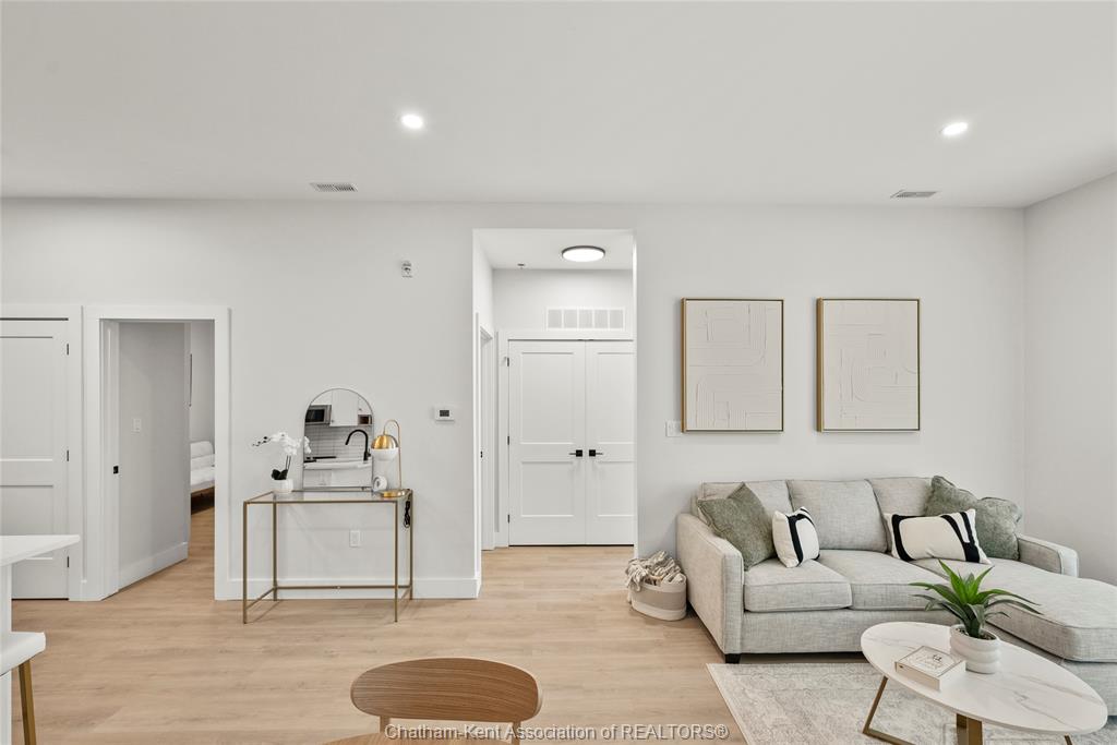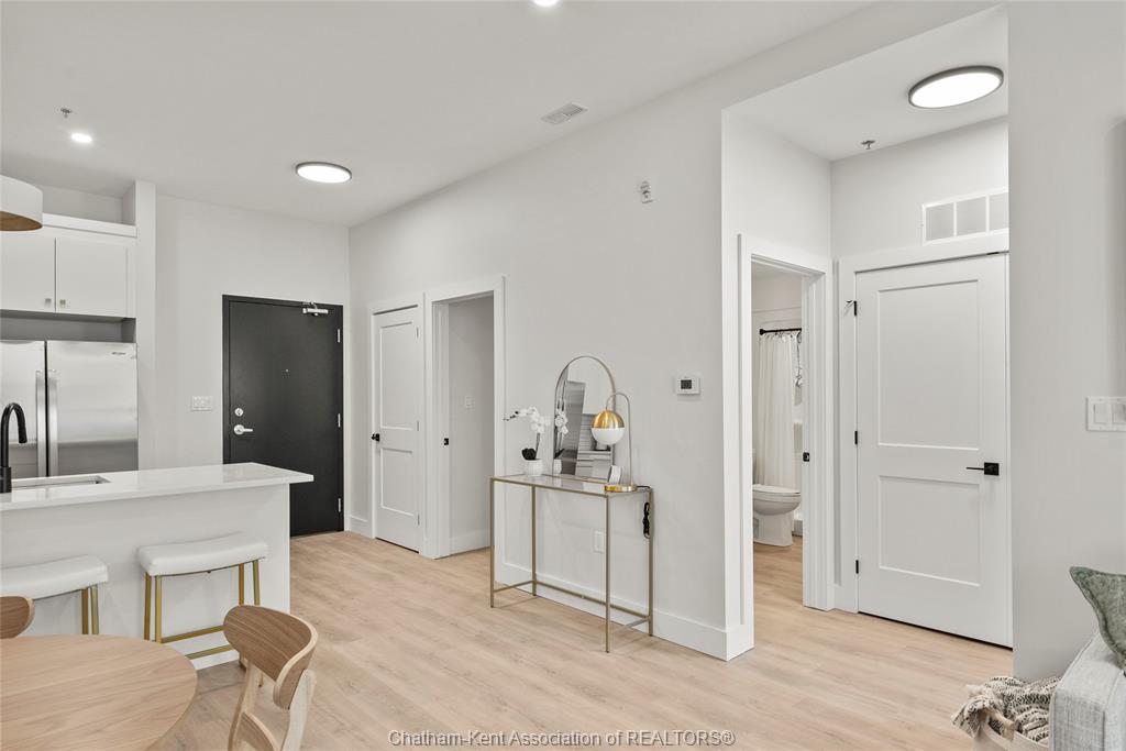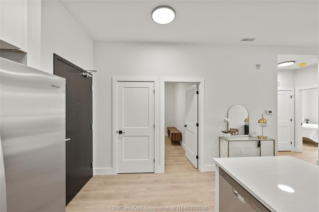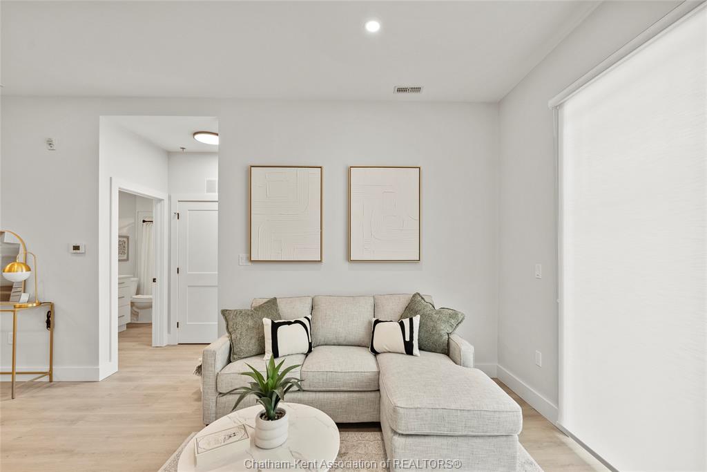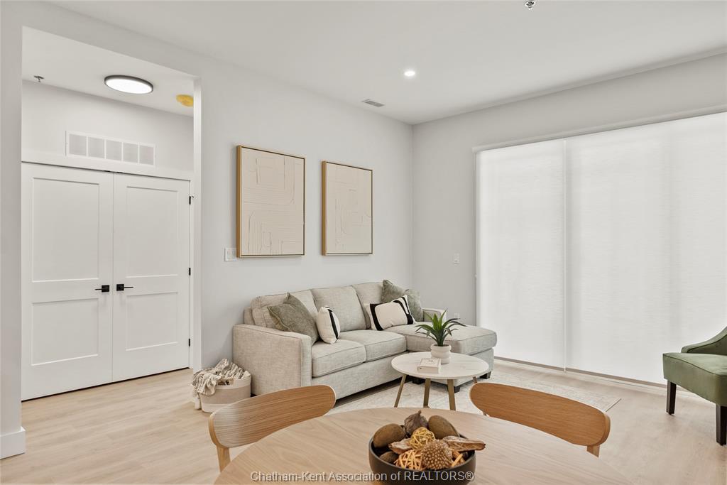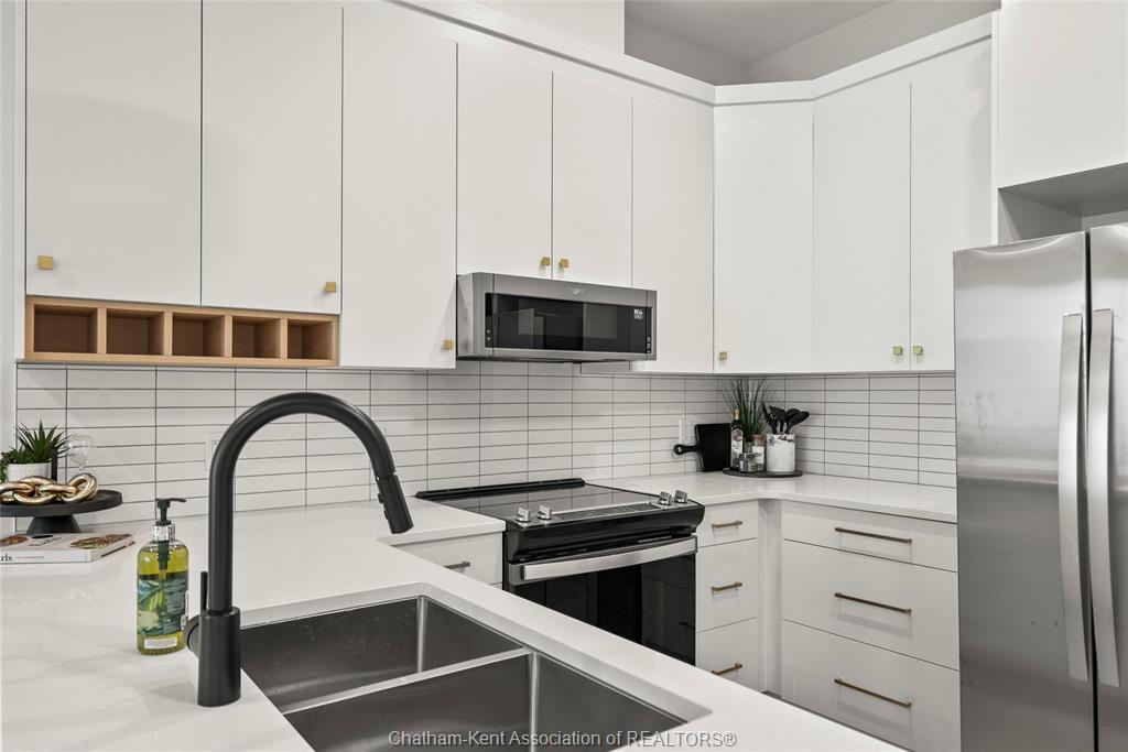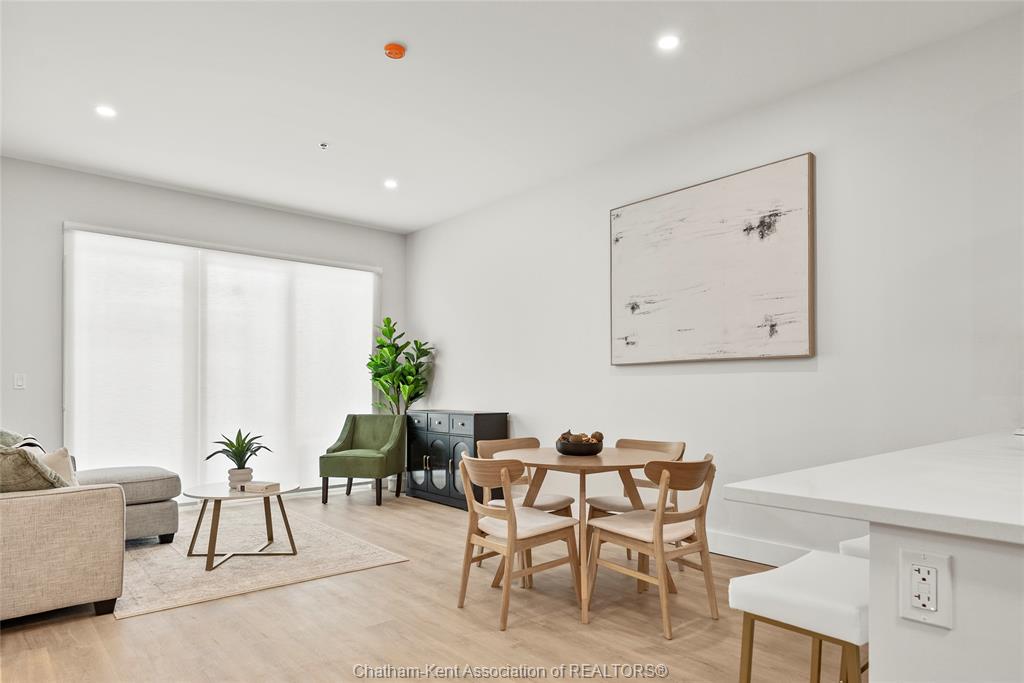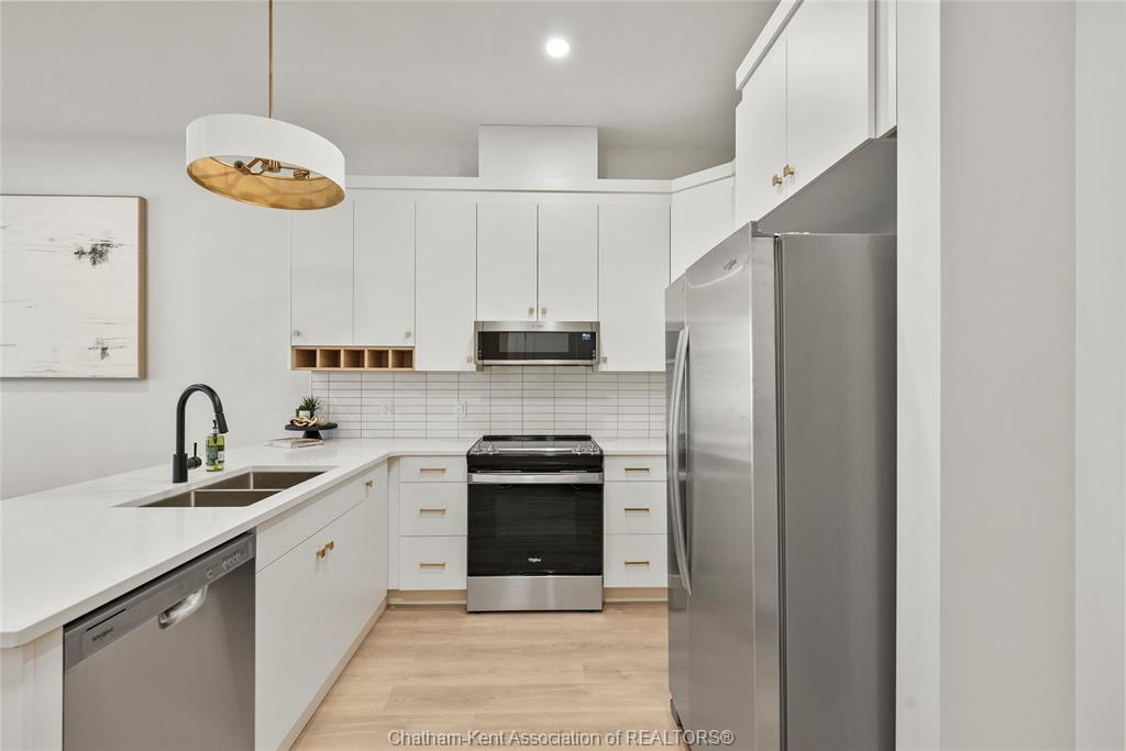 Welcome to the avalon on grand, where luxury meets convenience. Ark design build's newest offering in chatham, a spacious one-bedroom apartment with full size den/office, that is designed with your comfort and lifestyle in mind. Boasting an impressive 10 ft ceiling, this unit offers an airy and open ambiance that is not found in other buildings. The modern kitchen is a chef's dream, featuring quartz countertops and quality appliances that make cooking a pleasure. Step into the large bedroom and discover a walk-in closet and an expansive window that bathes the space in natural light. The private balcony, with glass panel railing, provides an exclusive outdoor retreat perfect for morning coffees or quiet evenings in the summer. The apartment is complete with a 3pc bathroom and in-unit laundry with front-load washer and dryer. Best of all, utilities are included in the price, ensuring a hassle-free living experience. The avalon on grand redefines apartment living. Occupancy november '24