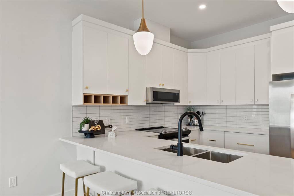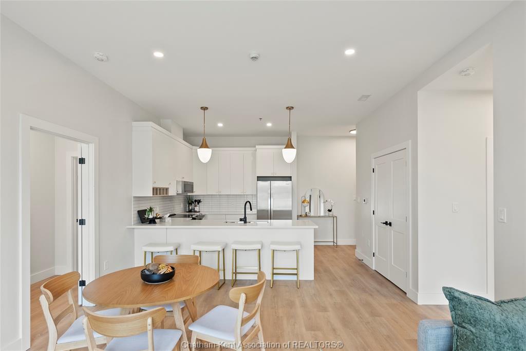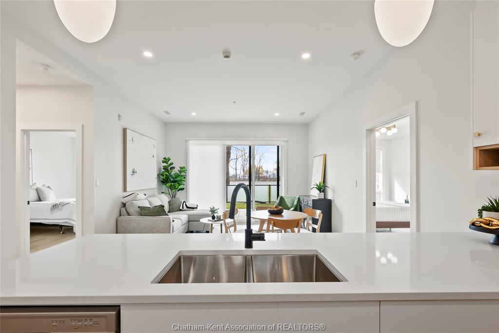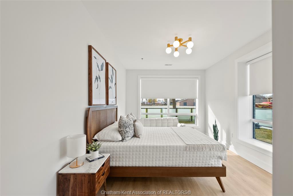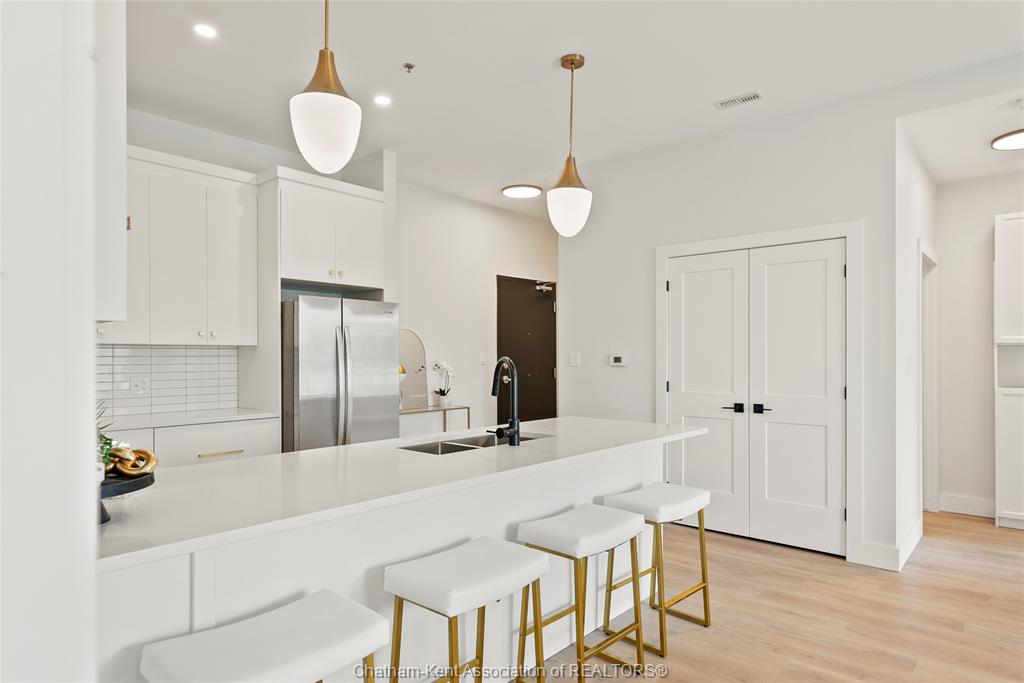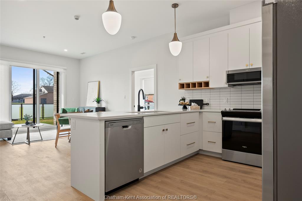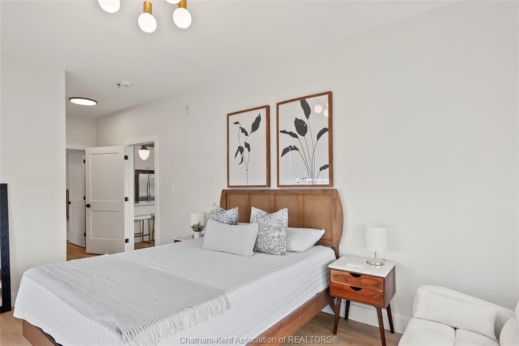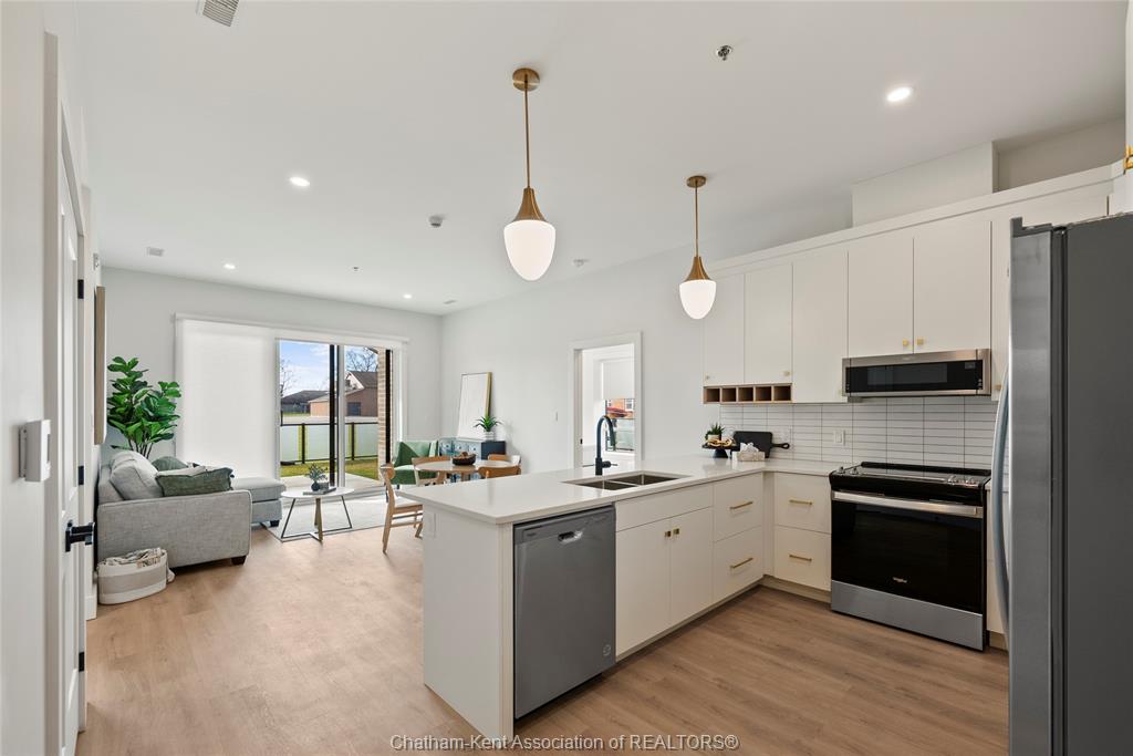 Welcome to the avalon on grand, where luxury meets convenience. Ark design build's newest offering in chatham, a stunning two-bedroom corner apartment. Boasting an impressive 10 ft ceiling, this unit offers an airy and open ambiance that is not found in other buildings. The modern kitchen is a chef's dream, featuring quartz countertops and quality appliances that make cooking a pleasure. Step into the large bedrooms and discover walk-in closets, large windows and en-suite bathrooms, one complete with double vanity. The private balcony, with glass panel railing, provides an exclusive outdoor retreat perfect for morning coffees or quiet evenings in the summer. Complete with in-unit laundry with front-load washer and dryer. Best of all, all utilities are included in the price, ensuring a hassle-free living experience. The avalon on grand redefines apartment living, offering unparalleled luxury and convenience.