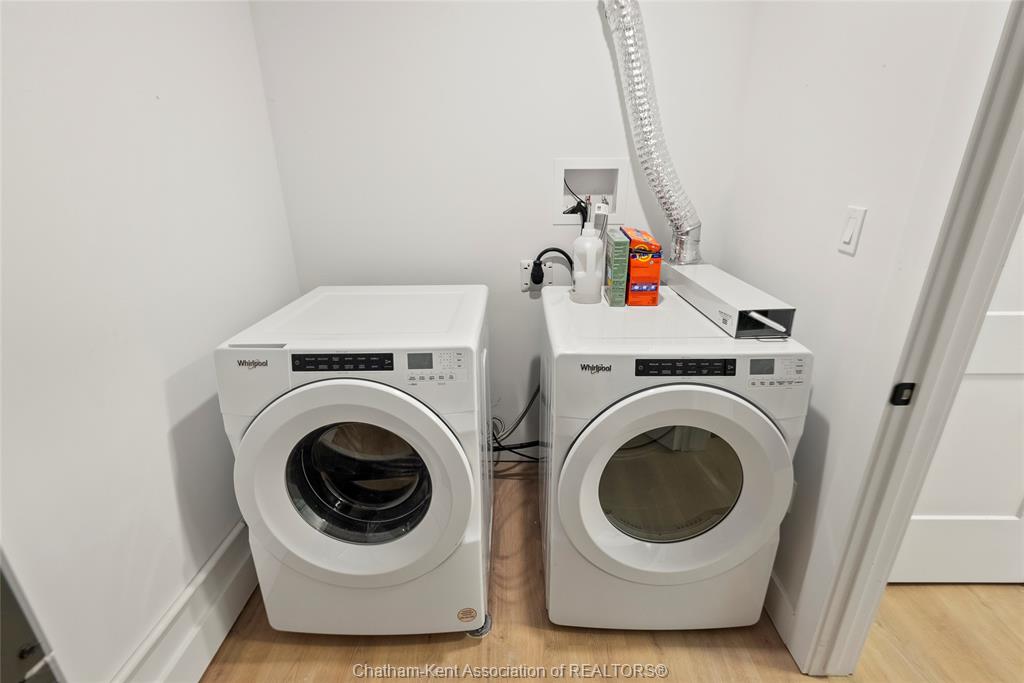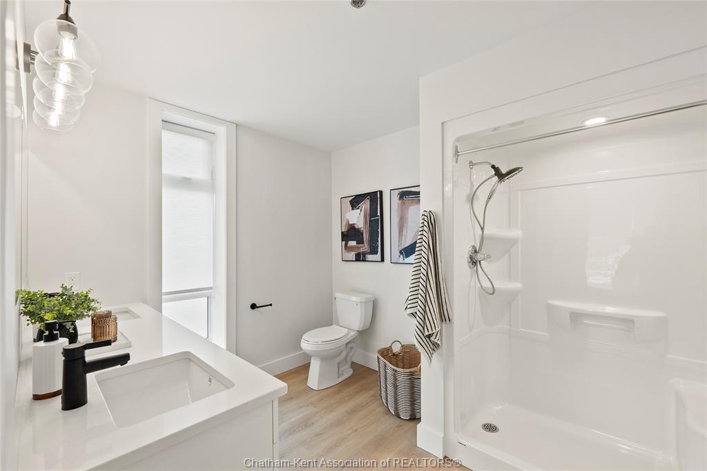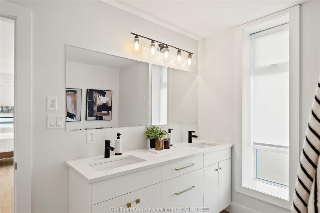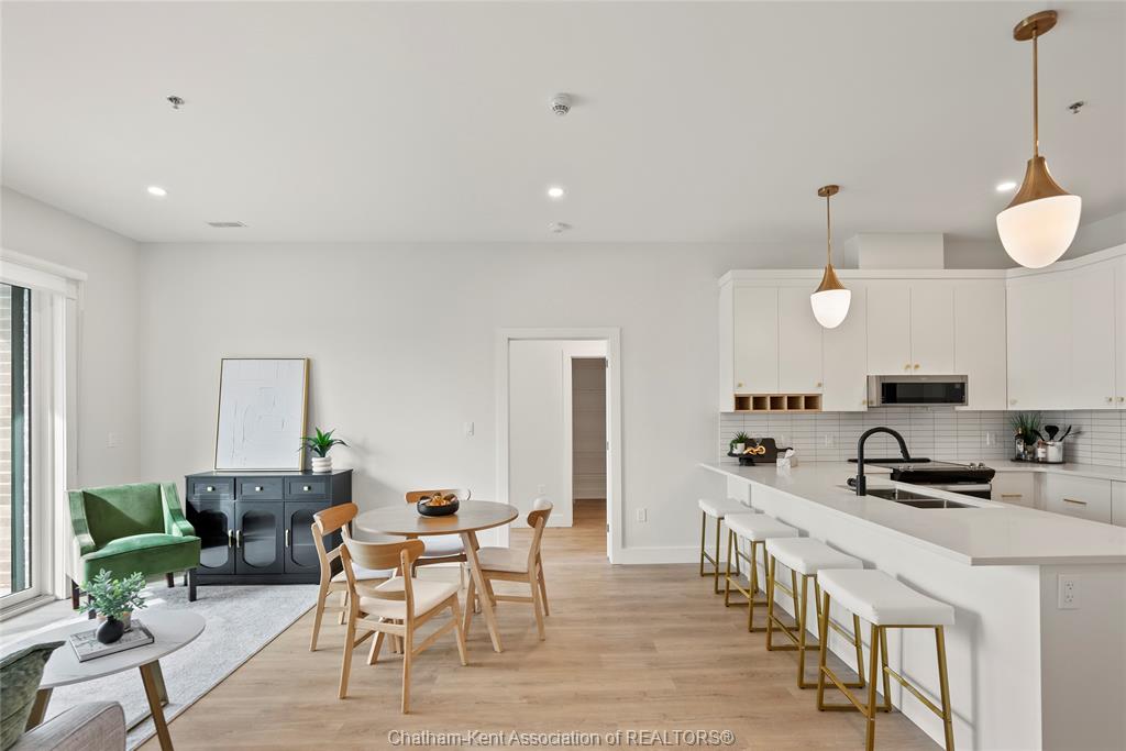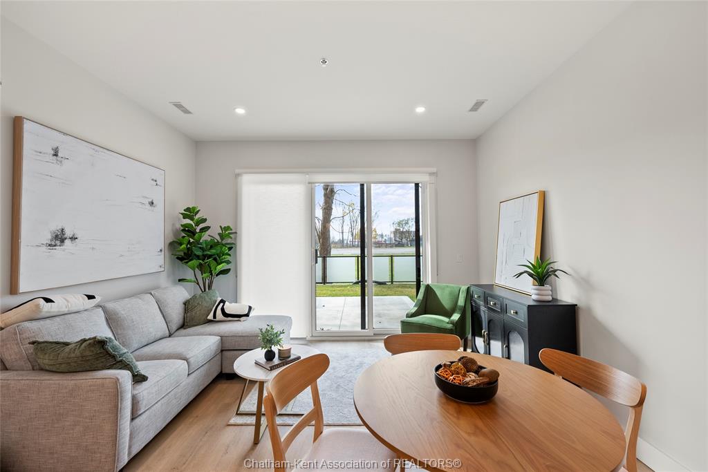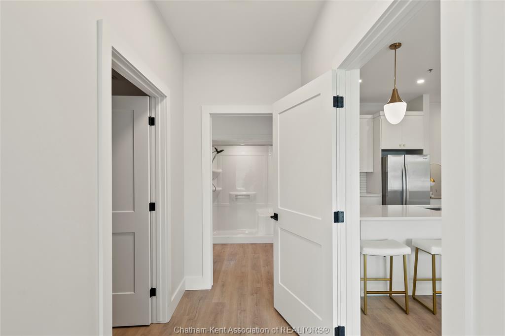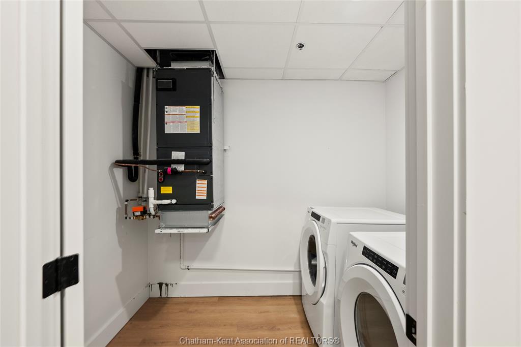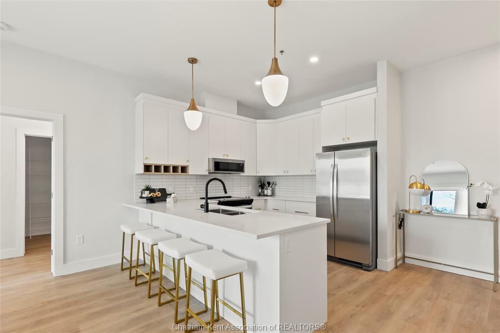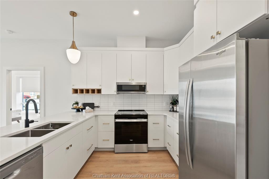 Welcome to the avalon on grand, where luxury meets convenience. Ark design build's newest offering in chatham, a stunning two-bedroom corner apartment. Boasting an impressive 10 ft ceiling, this unit offers an airy and open ambiance that is not found in other buildings. The modern kitchen is a chef's dream, featuring quartz countertops and quality appliances that make cooking a pleasure. Step into the large bedrooms and discover walk-in closets, large windows and en-suite bathrooms, one complete with double vanity. The private balcony, with glass panel railing, provides an exclusive outdoor retreat perfect for morning coffees or quiet evenings in the summer. Complete with in-unit laundry with front-load washer and dryer. Best of all, all utilities are included in the price, ensuring a hassle-free living experience. The avalon on grand redefines apartment living, offering unparalleled luxury and convenience.