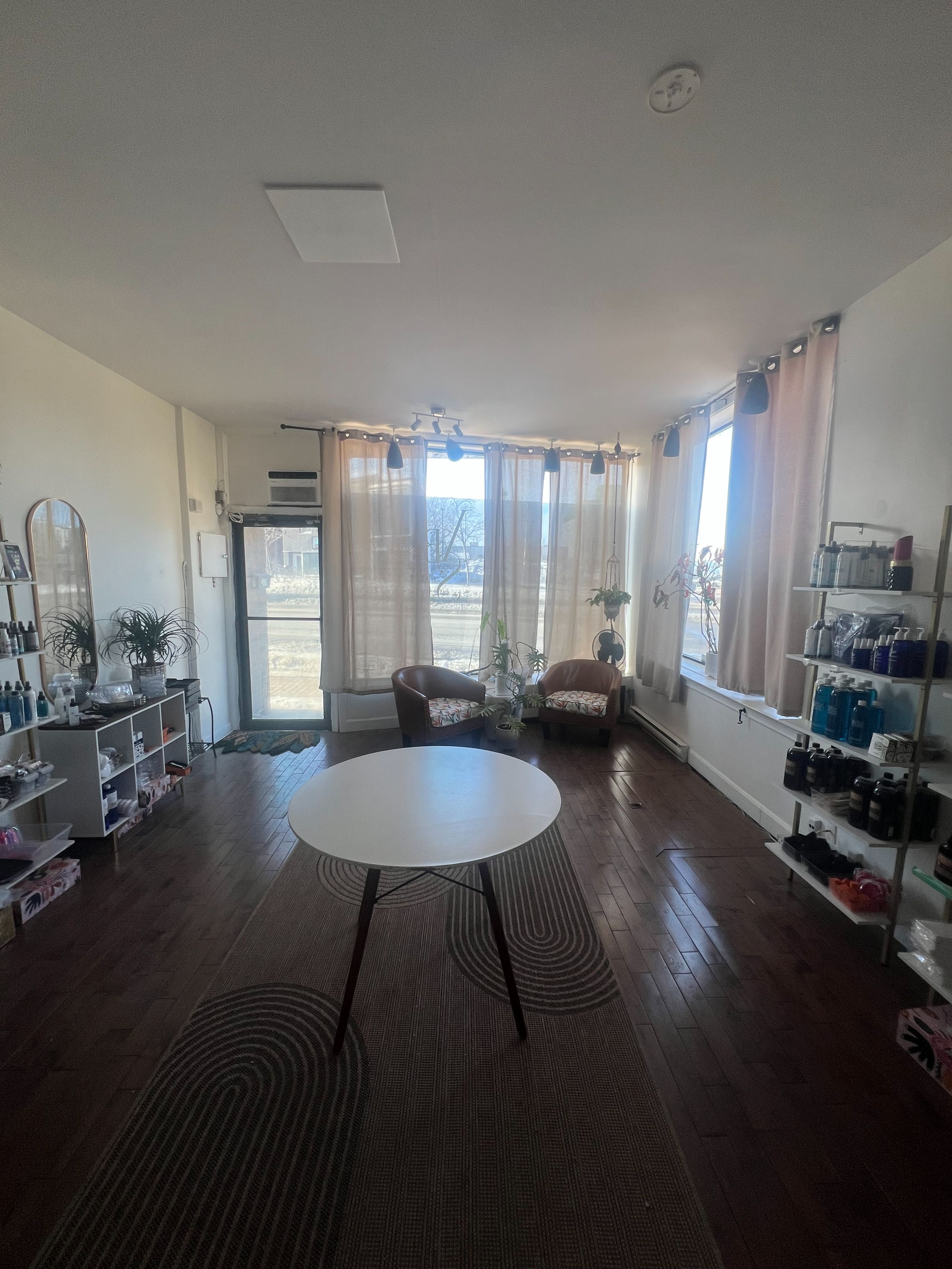 • Large windows create a bright atmosphere and showcase products.