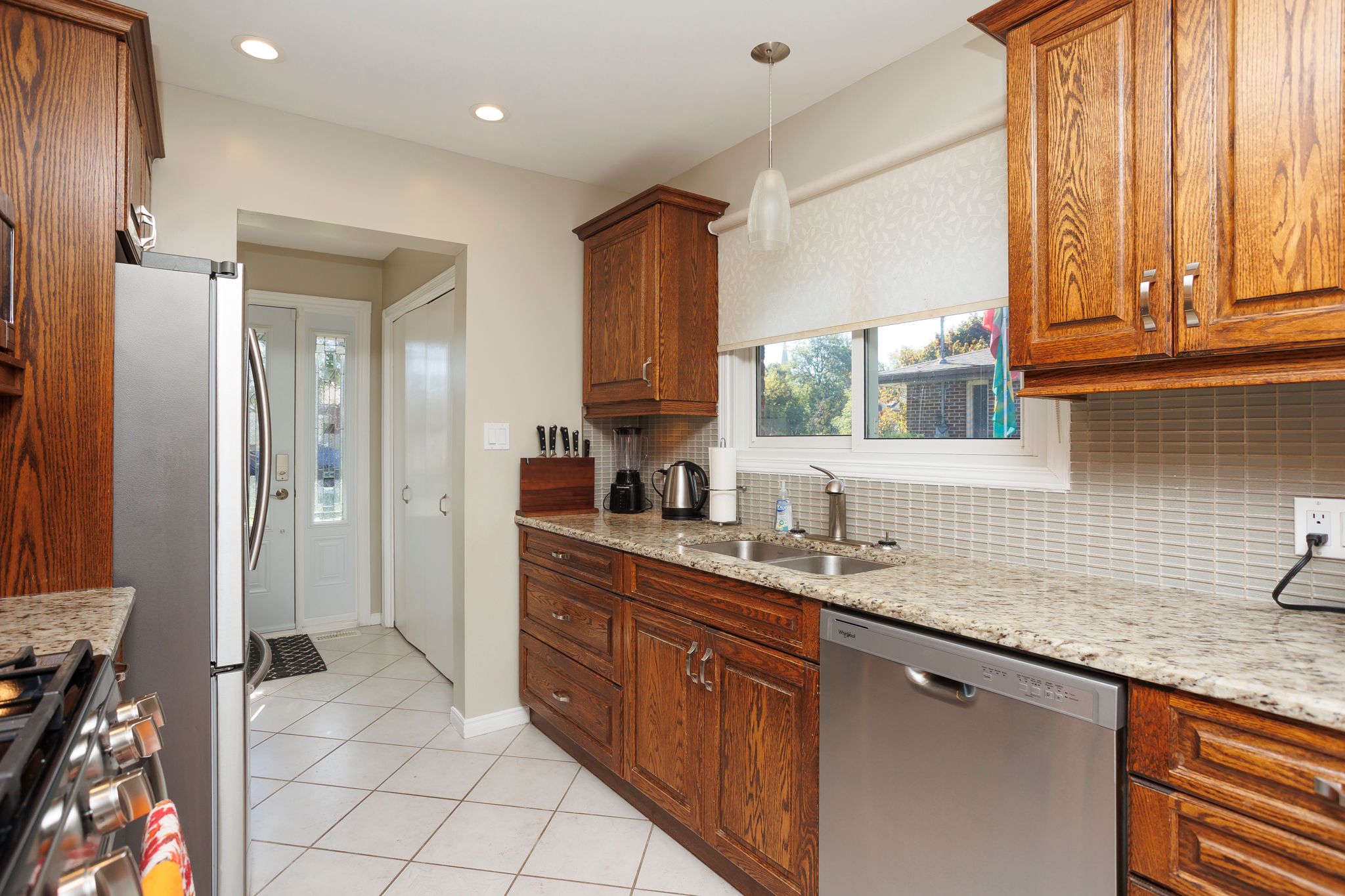 Situated on a quiet cul-de-sac in sought after riverdale neighborhood, this meticulously maintained 3+1 bedroom backsplit with attached 2 car garage is within walking distance to town amenities. This spotless home offers hardwood floors in living/dining room with walk out to fantastic covered patio. Stunning eat-in kitchen with granite countertops and stainless steel appliances. Lower level offers large family room with cozy gas fireplace & 2 pc bath and tons of storage. Impeccably cared for and move-in ready, this riverdale home awaits you, a harmonious blend of comfort, quality, and convenience in the area's most desirable locations.