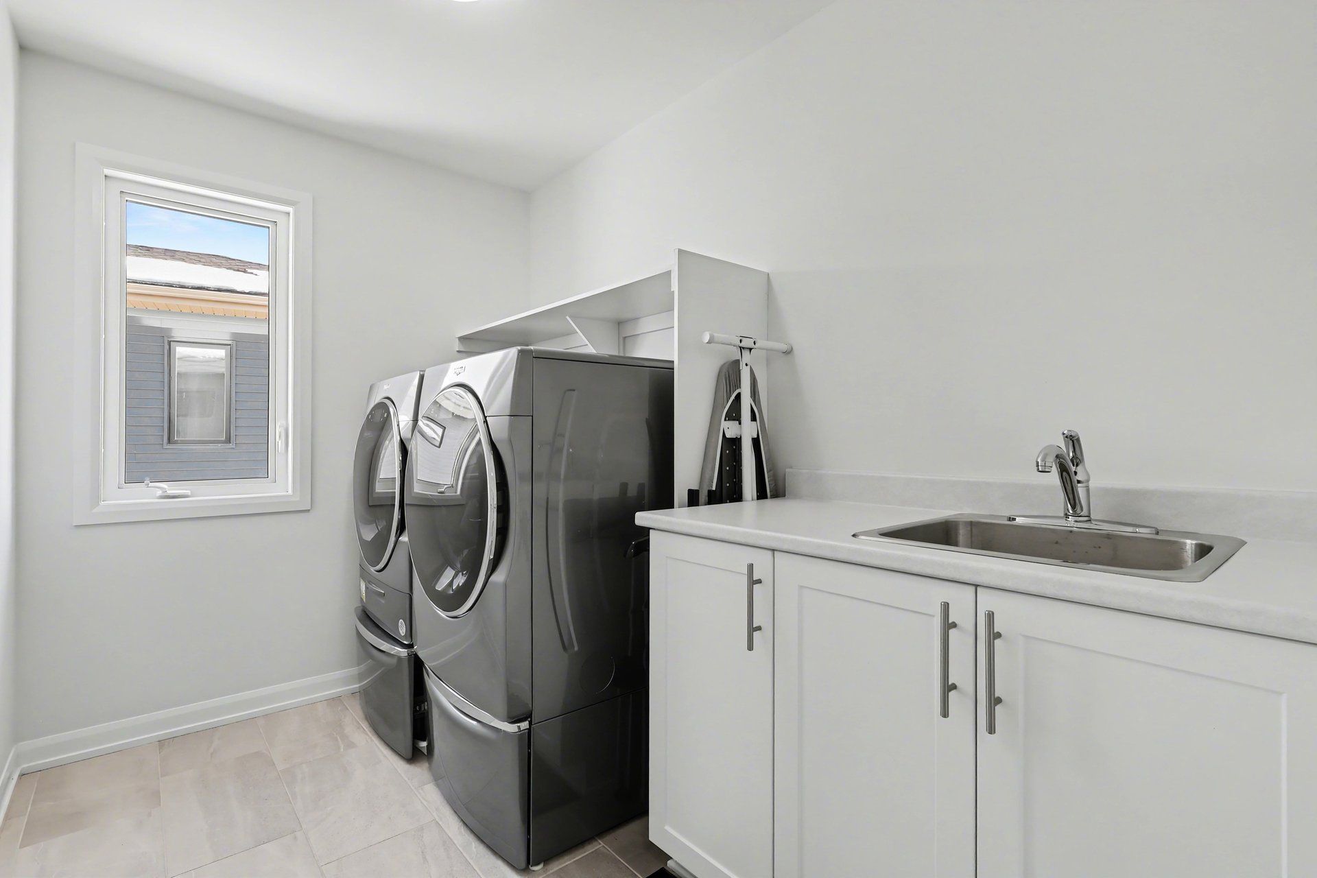 Welcome to 364 sterling avenue, a beautifully upgraded 4-bedroom, 3-bath longwood "calais" model offering 2,197 sq. Ft. Of living space plus a nearly finished lower level in sought-after morris village. Ideally located on a prestigious, family-oriented street, this 2021-built home is within walking distance of parks and schools and only about 30 minutes from ottawa, offering the perfect balance of small-town feel and city convenience. The main level features an open-concept layout with a bright living room centred around a cozy gas fireplace and a spacious dining area, ideal for family dinners and entertaining. The gourmet kitchen offers quartz countertops, ample cabinetry, stainless steel appliances, and a large island with breakfast bar seating for busy mornings and casual gatherings. Upstairs, the private primary suite includes a walk-in closet and 3-piece ensuite, complemented by three additional good-sized bedrooms, a full 3-piece main bathroom, and a convenient second-level laundry. The finished lower level provides a huge recreation room, a separate playroom that could easily function as a guest bedroom or home office, and ample storage. Outside, the backyard and double car garage complete this move-up family home, giving you the space you've been looking for both inside and out.