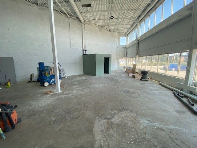 Corner unit with fantastic exposure onto healey rd. All main floor square footage. Second level could be added to take advantage of the second level windows. 1 large washroom and 4 reserved parking spaces.
