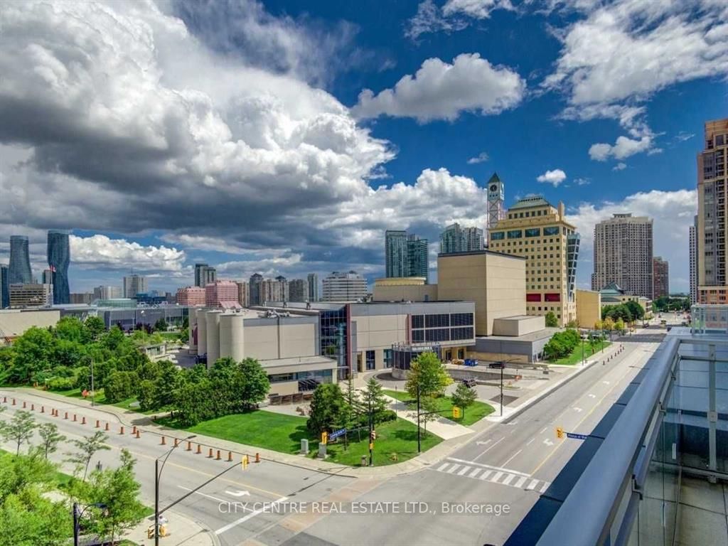 Bachelor/studio condominium unit with own outdoor terrace & unobstructed east view by square one, downtown mississauga, with one parking space, 1 locker, vacant possession for june-1-2026, 10-foot ceilings, ensuite laundry, stainless steel appliances, granite kitchen countertop, walking distance to square one shopping mall, celebration square, library, living arts centre, ymca, bus terminal, go bus, major highways, very affordable low taxes & low condo fee, pet friendly. Right across sheridan college, stainless steel appliances (fridge, b/i dishwasher, stove, built-in microwave), washer & dryer, all electric light fixtures, building amenities include: basket/volley/multipurpose court, bbq terrace, party room, theater room, visitor parking, 24-hrs concierge