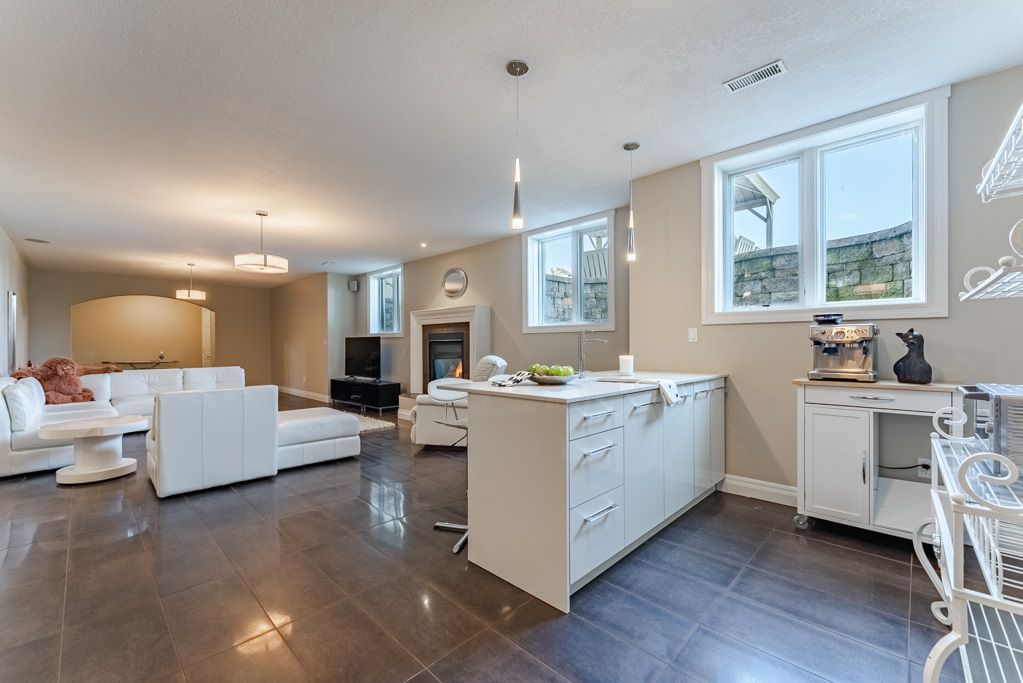 • Spacious lower level family room with a gas fireplace and wet bar.