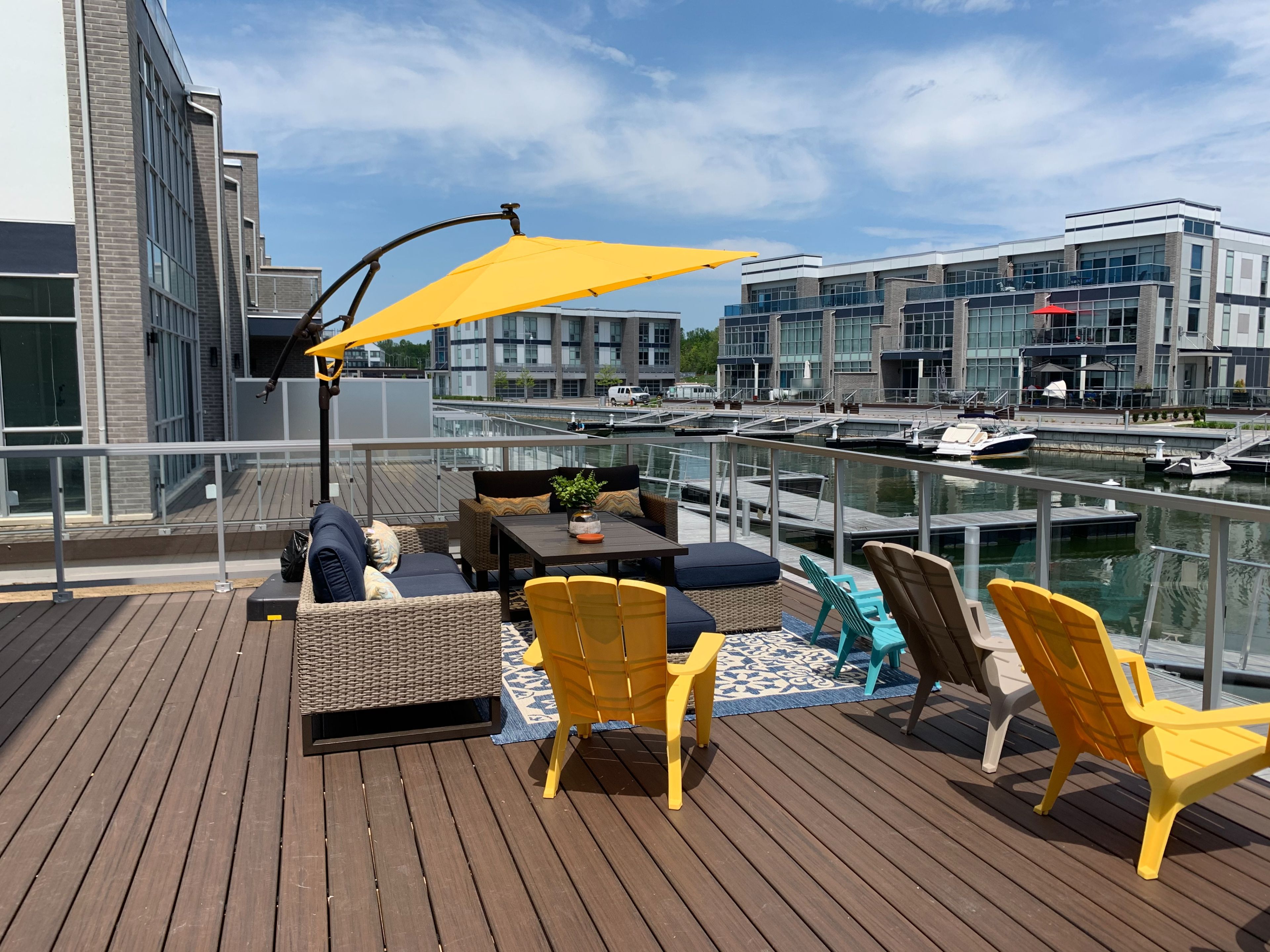 Rare opportunity to rent a breathtaking fully furnished island corner townhouse. Luxury urban style cottage townhome in prominent friday harbour resort with water access through private dock/boat slip with pedestal supplying water & electricity on the south exposure shoreline for the most sunlight. Main floor 10' ceiling, laminate flooring/oak stairs throughout open concept designliving/dining/kitchen walkout to deck in front with direct access to 2-car garage & 2-car driveway at rear, second floor 9' ceiling are 2 bedroom with prime ensuite bathroom & walkout to balcony, all floor-to-ceiling windows, top floor with 4th bedroom with prime ensuite bathroom and loft great room, an entertainment centre with wet bar & walkout to rooftop terrace overlooking water. Designer luxury finishings top to bottom. Step to club house & island pool, sep to may $5000 per month. Utilities will be included based on length of rental