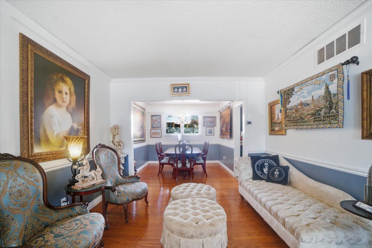 • Bright open-concept main level with large windows and hardwood floors.