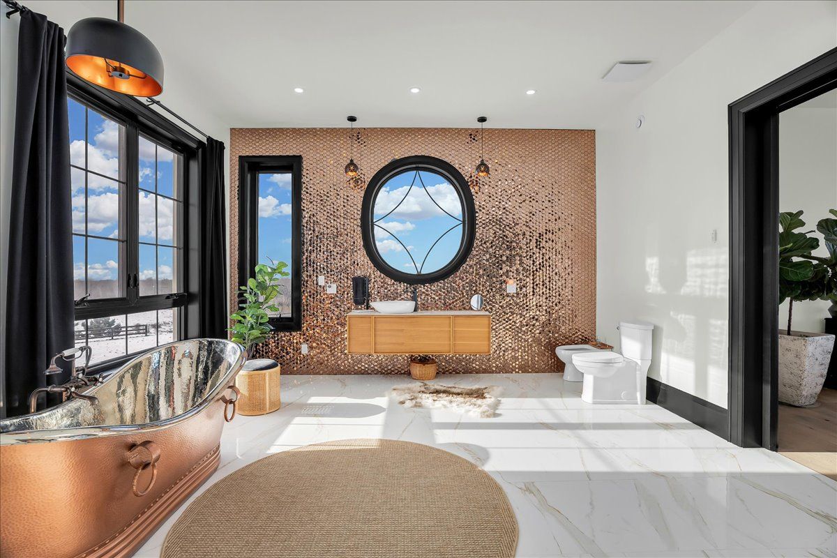 A once-in-a-lifetime opportunity to own one of durham region's most distinctive modern country estates, over 8,500 sq. Ft. Of finished luxury on 52 private acres of rolling countryside and canadian woodland, plus and additional 5,700 sq. Ft. Of lower-level space ready for your creative vision and needs. Expansive principal rooms reveal soaring ceilings, walls of glass, and sweeping views of the surrounding landscape and open sky. The gourmet kitchen, finished with upgraded materials, designer fixtures, and appliances, transitions seamlessly into sophisticated dining and living areas designed for effortless entertaining. The west-wing primary suite defines indulgence: a serene retreat with dressing room or nursery, walk-in closet, fitness room, and a spa-inspired ensuite featuring dual vanities, a two-person steam shower, and a freestanding soaking tub with tranquil views of nature. Upstairs, each bedroom enjoys its own ensuite and walk-in closet, while a private guest wing includes a living area, full kitchen, and bath. Geothermal heating, radiant floors, multiple fireplace rough-ins, 41 skylights, a pet spa, boot warmers, and a 3-car heated garage combine modern comfort with refined craftsmanship. The 1150 sq. Ft. Covered terrace invites year-round enjoyment, and the light-filled lower level, with its tall ceilings and large windows, awaits transformation into a home gym, theatre, bowling lane, wine cellar, to meet any of your future indulgences. Just minutes from community amenities and top schools, yet entirely private on a cul de sac, this estate offers an unmatched blend of serenity, sophistication, and enduring value.