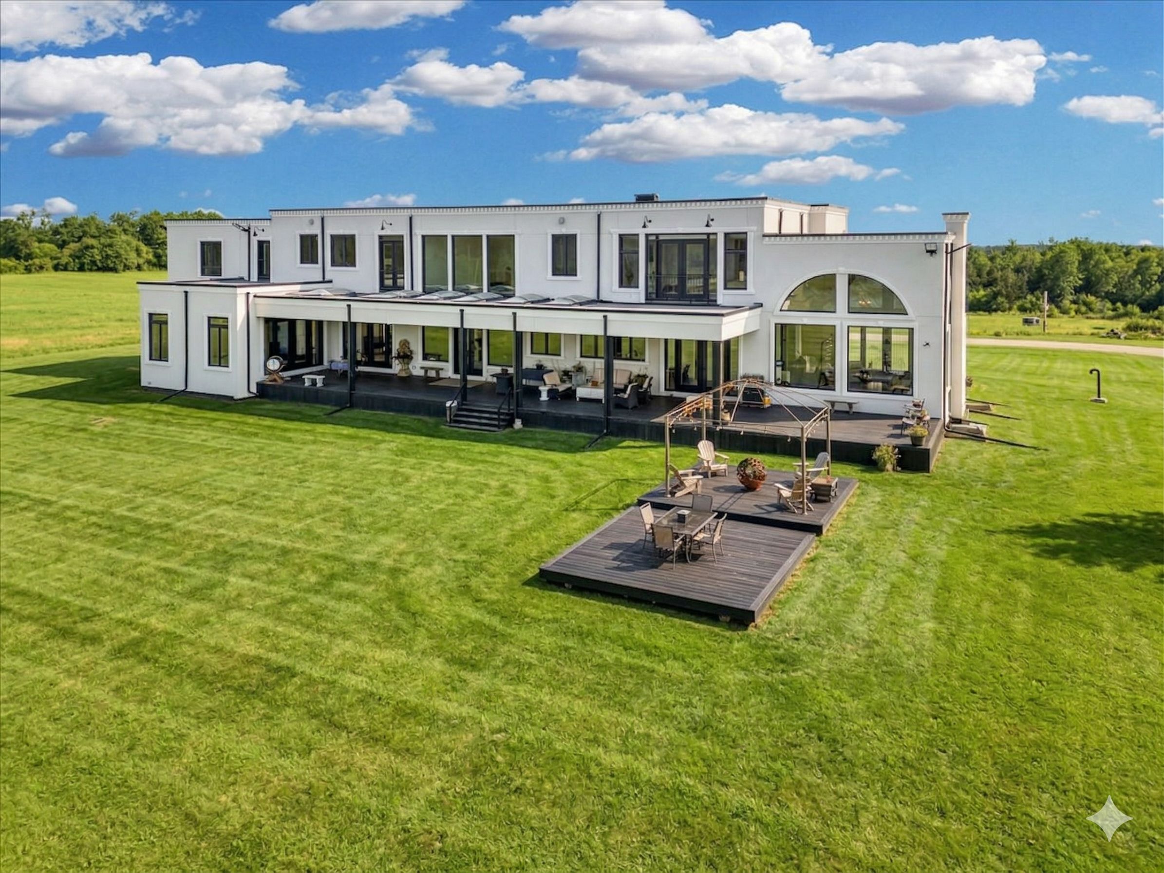 Rarely does a property offer the infrastructure to support both a private legacy lifestyle and a world-class hosting venue. Stylized after the grand estates of the california pacific coast, this 8,500+ sq. Ft. Residence is set on 52 acres of rolling fields and canadian woodland at the end of a quiet country road cul-de-sac. The design enhances a profound connection to nature through the sheer size of the windows, which bring the outdoors in and allow you to immerse yourself in the changing countryside each season fully. Built just eight years ago, the home reflects thoughtful long-term planning with elevated ceilings and systems including geothermal heating/cooling and radiant heated floors. The architecture favors grand-scale entertaining, where soaring principal rooms flow naturally to a deep covered terrace designed for parties that linger long into the evening. Perfectly suited for a private wellness retreat, corporate sanctuary, or the ultimate setting for milestone events, the layout features a guest wing for out-of-town visitors and a secluded primary wing for privacy and restoration. Minutes from schools and amenities yet completely secluded, this is a rare estate offering that balances modern efficiency with absolute presence. Now re-positioned to offer a compelling opportunity, the timing to secure this landmark horizon is now.
