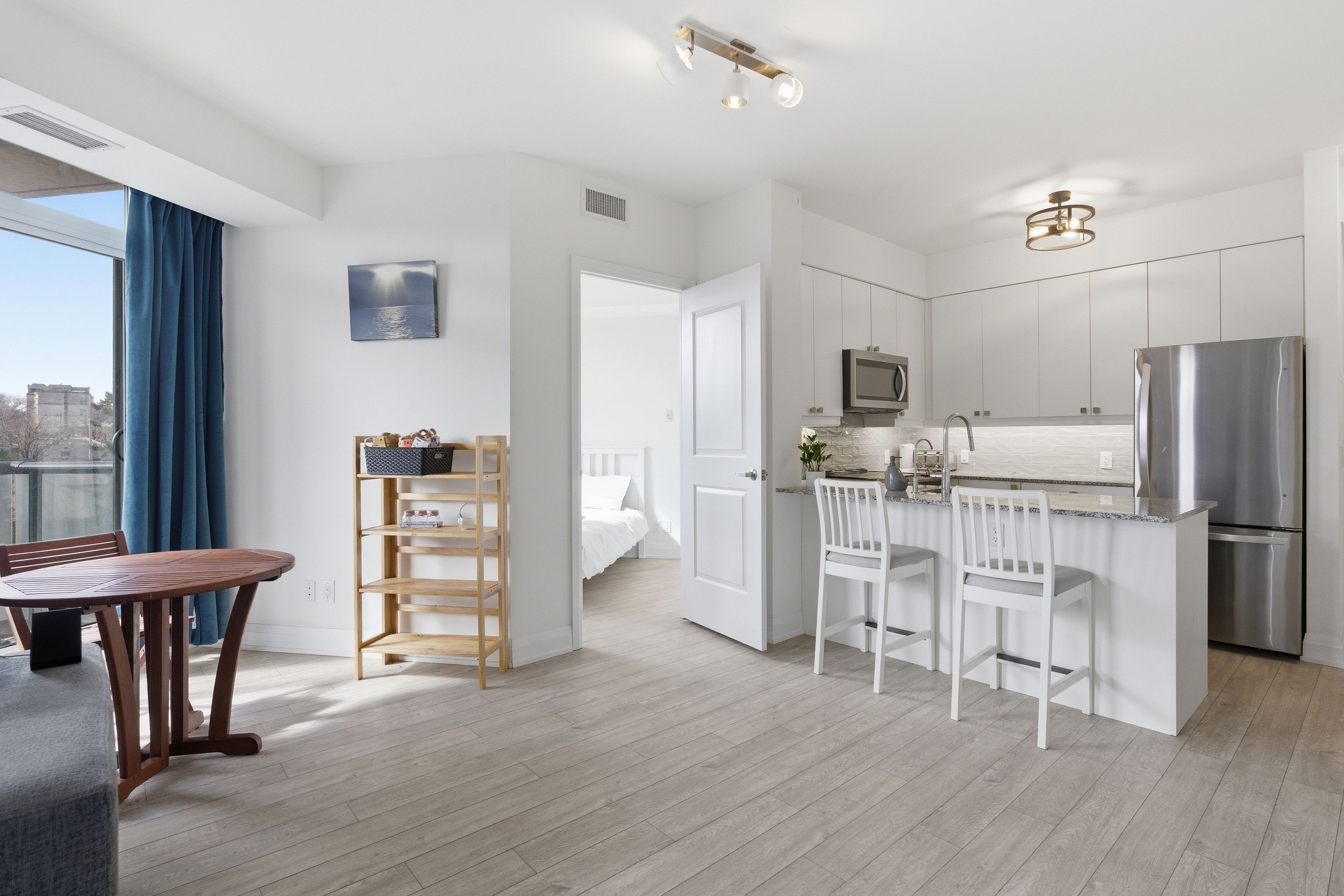 Tucked into the heart of the highly desirable scarborough village community, this tastefully furnished, bright and spacious corner suite offers an exceptional blend of comfort, functionality and style. The thoughtfully designed layout features two well-proportioned bedrooms and two full bathrooms, with large windows that fill the home with natural light throughout the day. The renovated kitchen serves as the centrepiece of the home, showcasing stainless steel appliances, a stylish backsplash, reverse osmosis filter and breakfast bar seating-perfect for both everyday living and entertaining. The primary retreat includes a generous walk-in closet, while the bathrooms have been tastefully finished to create a calm, spa-inspired feel. Step outside to your private balcony and enjoy morning coffee surrounded by peaceful greenery. This suite also includes the rare convenience of two owned underground parking spaces along with an extra-large storage locker, providing ample room for both vehicles and belongings. Located moments from the scenic scarborough bluffs and guildwood park, and close to grocery stores, restaurants and everyday amenities, the neighbourhood offers a perfect balance of nature and urban convenience. With public transit just steps away, commuting around the city is effortless. A fantastic opportunity to enjoy comfortable condo living in one of scarborough's most established and well-connected communities.
