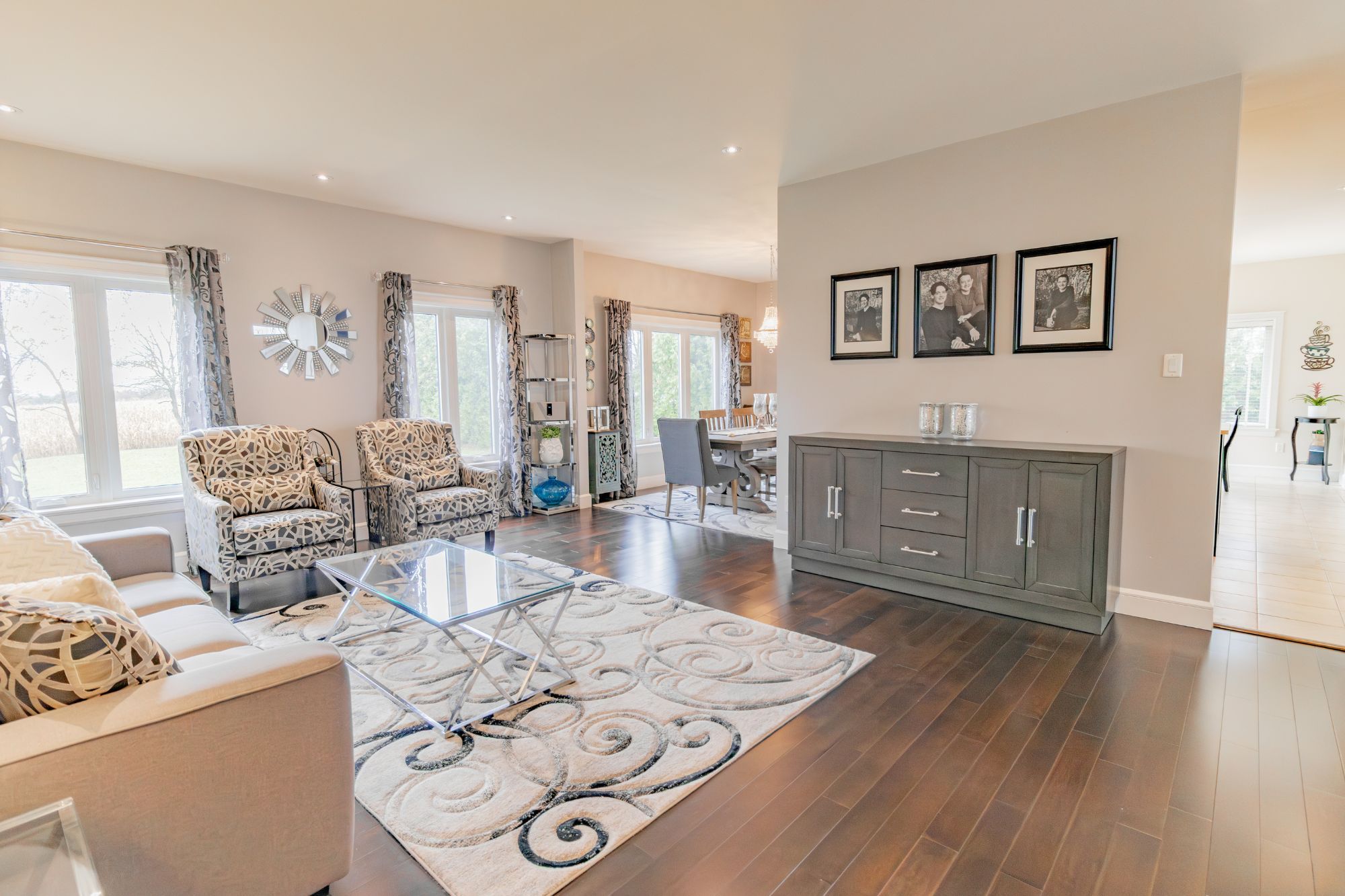 Welcome to this custom-built bungalow located in the community of kirby, a part of the orono area of clarington. This country property backs onto farmland and boasts a picturesque ravine with meandering stream running through the east side of this 3/4 acre lot and in an area of nice rural homes. As you approach the property, this 3+2 bedroom home has an attached double garage, paved driveway and interlocking brick front walkway. Step inside the foyer, where a partial vaulted ceiling adorned with a stunning palladium window and two side lights floods the entry space with natural light. The unique walk-in closet provides lots of shelving and space for your shoes, boots and coats. The open-concept layout flows into a spacious l-shaped living room and dining area, featuring rich hardwood floors and an abundance of windows that capture the southern exposure. The dining room is a standout, featuring an infinity fireplace set in a stylish brick accent wall. The eat-in kitchen is equipped with stainless steel appliances, centre island and windowed eating area with large sliding door walkout to a deck and yard. There is also a convenient 2-pc powder room and main floor laundry room with garage access. There are 3 bedrooms on the main level with the primary suite having a 5-pc ensuite and walk-in closet. The two secondary bedrooms share a well-appointed 4-pc washroom, and both rooms feature double closets and large windows overlooking the front yard. The lower level is a bright and inviting space with above-grade windows and walkout to a patio. This level features a cozy family room, 4th bedroom and an office with french doors that could easily serve as a fifth bedroom (if needed). There are also two separate unfinished rooms for storage, furnace and utilities. Easy access to highway 115/35, making commutes north to lindsay/peterborough or south to bowmanville/oshawa seamless, with quick connections to highway 407 and 401 for commuters.