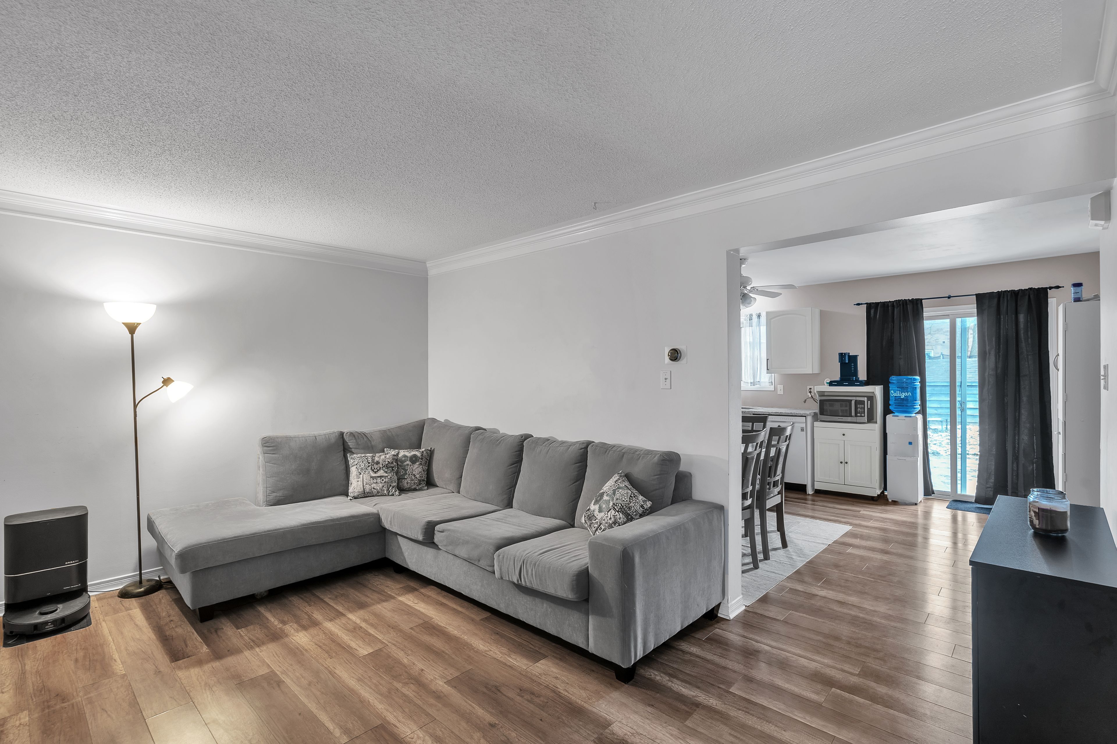 • Light-filled living area with a roomy eat-in kitchen.