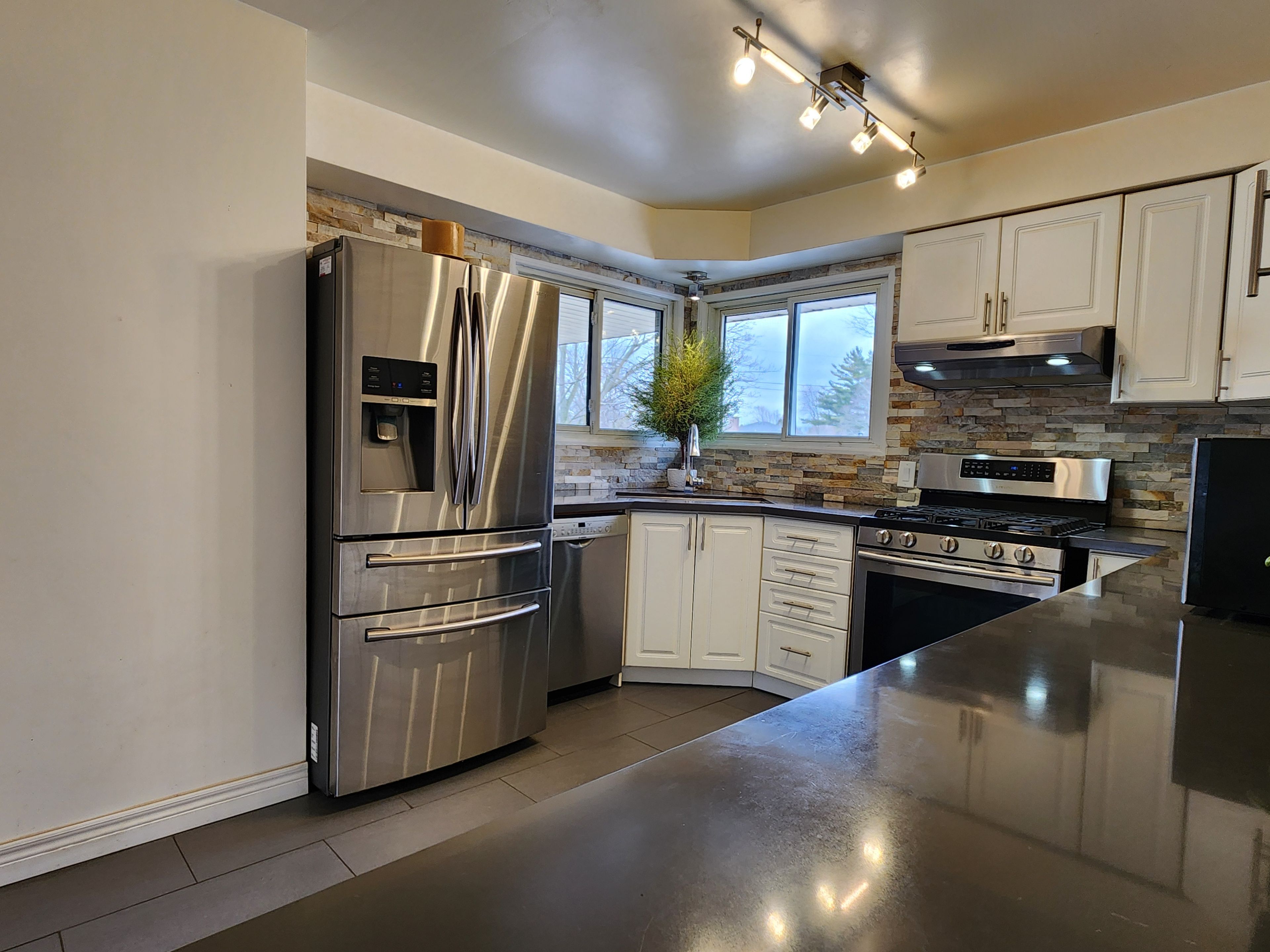 Modern living in this fully upgraded 3-bedroom main floor unit in north oshawa. This bright home features newer flooring throughout and a chef-inspired kitchen complete with quartz countertops, an oversized undermount sink, a gas range, and premium stainless steel appliances. Ensuite laundry, two dedicated parking spaces, and a walkout to your own private patio with full use of the massive front yard. Perfectly located for families, this home sits within the dr. S. J. Phillips p. S. And o'neill cvi catchment areas.