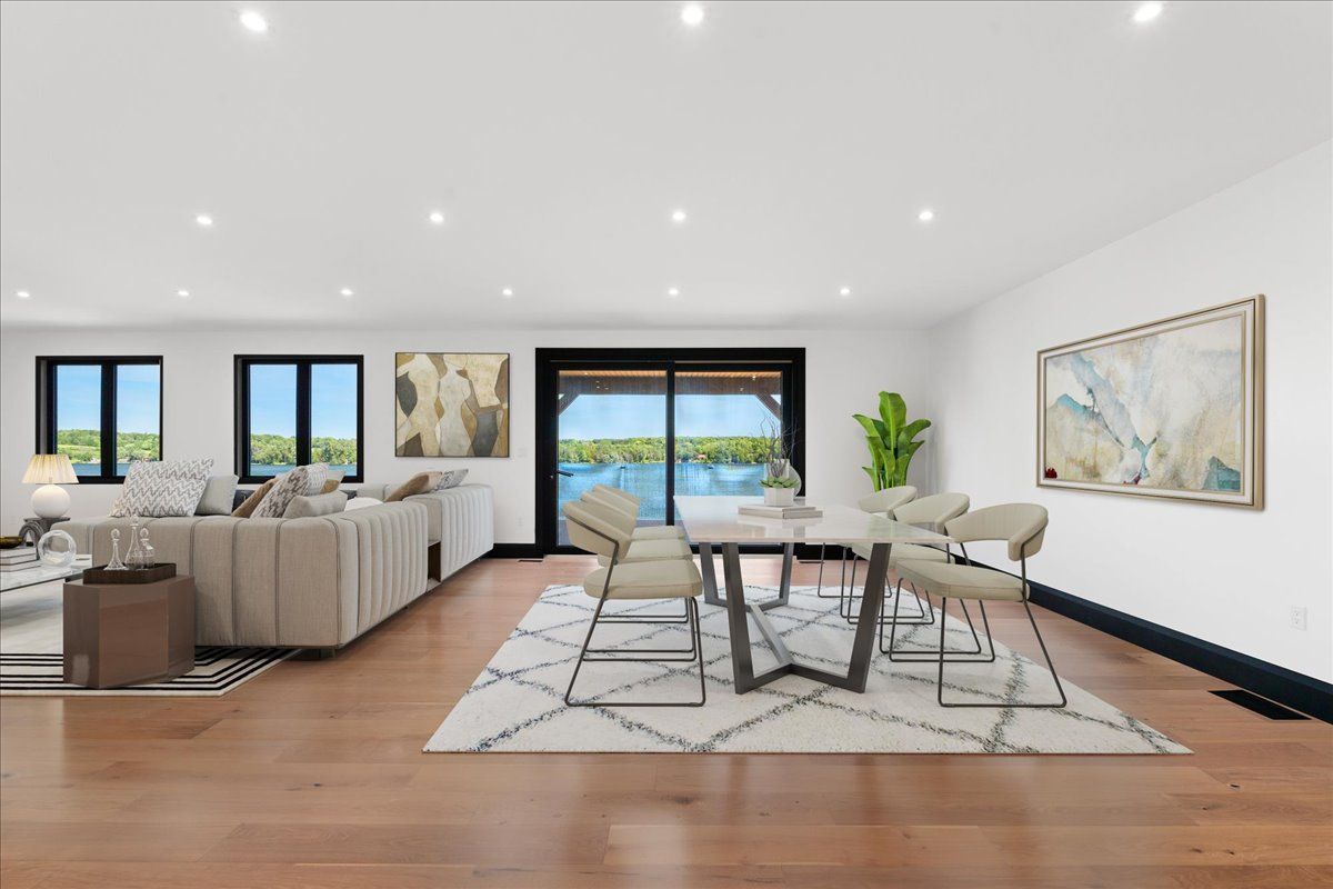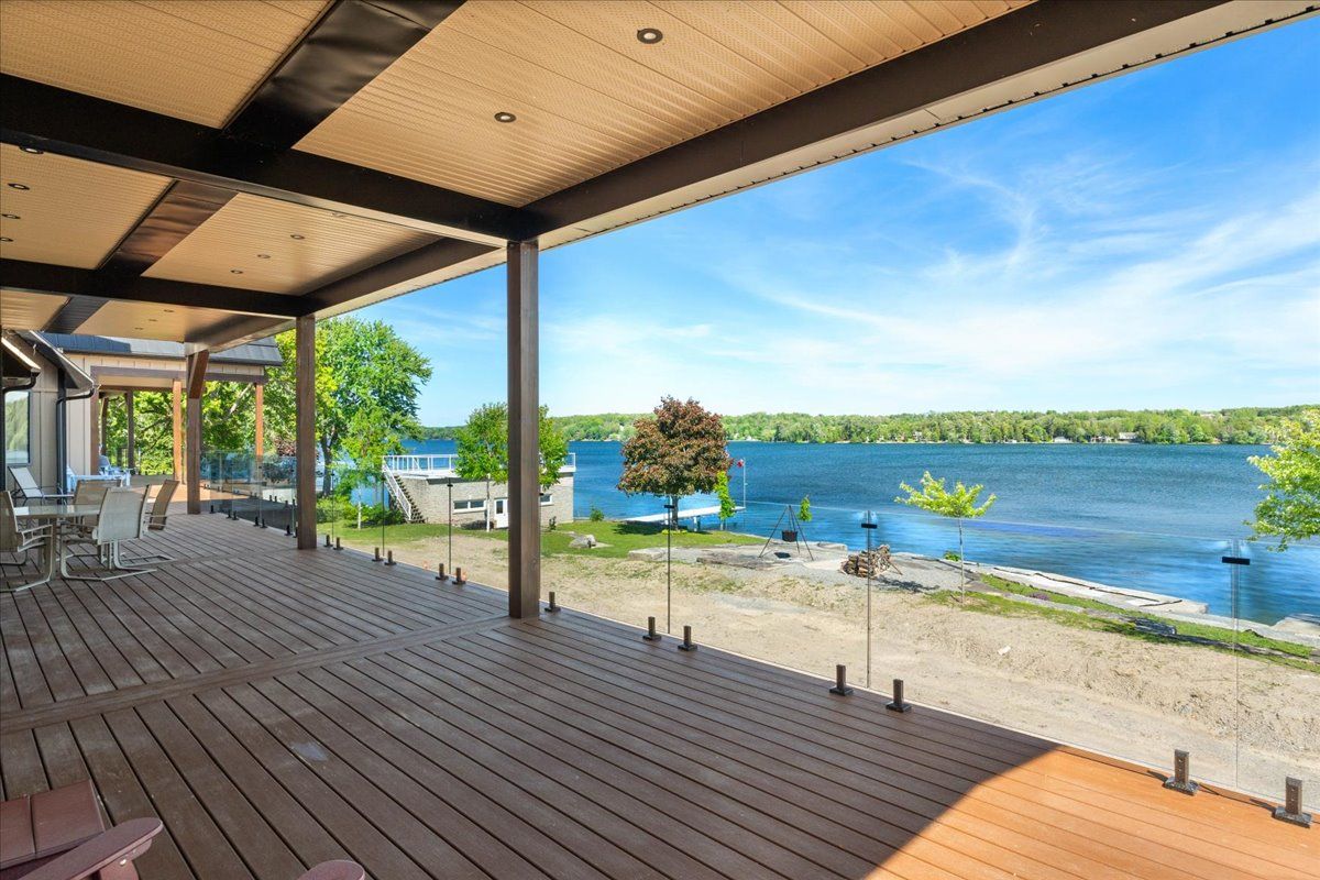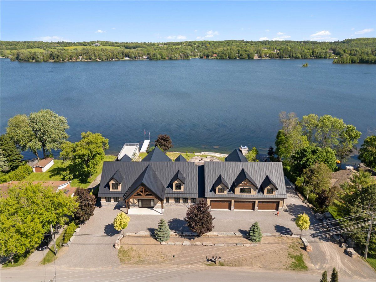 Introducing an unparralleled waterfront residence! This exceptional home is located on a prime double lot, boasting over 200 feet of stunning armor stone shoreline. Perfect for multi-generational families, this extraordinary property features a spacious and open floor plan, encompassing 4+ lavish bedrooms-including an exquisite penthouse suite - and six elegantly appointed bathrooms, all within more than 9500 square feet of refined living space. Enjoy the convenience of both upper and lower heated garages, accommodating up to six vehicles each. The enchanting stone boathouse, complete with a rooftop deck and marine rail, offers additional charm to this remarkable estate, which is accentuated by a cozy fire pit for those serene evenings by the water. Step into the grand great room , where a magnificent cathedral ceiling adorned with beams and pot lights creates a breathtaking ambiance. The luxurious kitchen is a chef's dream, featuring quartz countertops, a herringbone backsplash, double islands, a walk-in pantry, and top of the line appliances. Experience breathtaking lake views from the expansive outdoor deck, strategically designed with both covered and uncovered areas for effortless entertaining and tranquil relaxation. This is truly one of the most exceptional homes ever to grace the kawartha lakes market - an extraordinary opportunity that you won't want to miss!