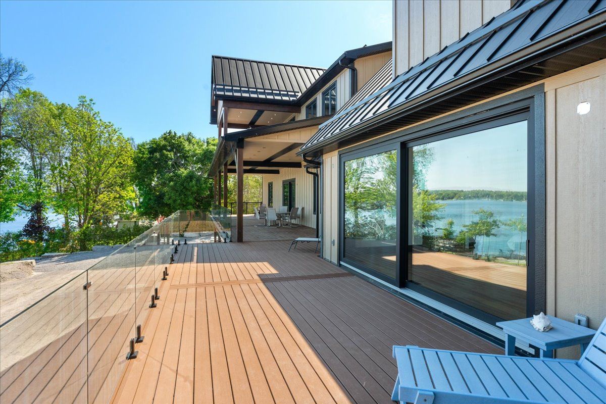 • Expansive outdoor deck with lake views, ideal for entertaining or relaxing.