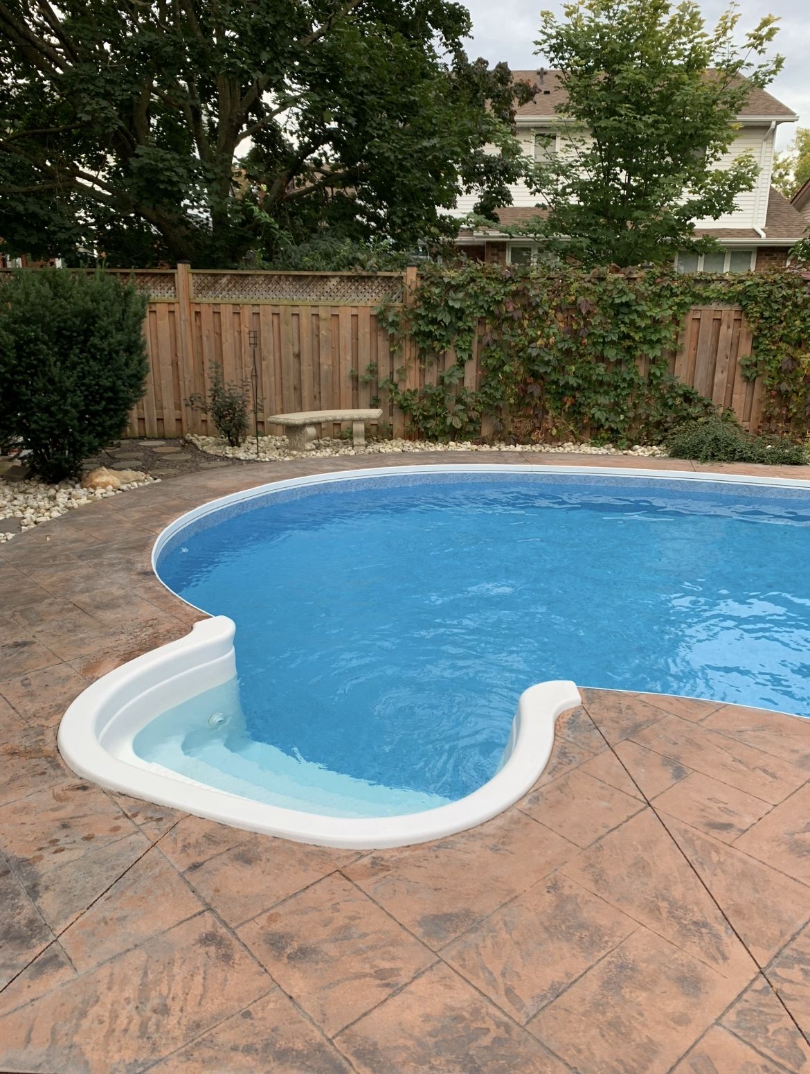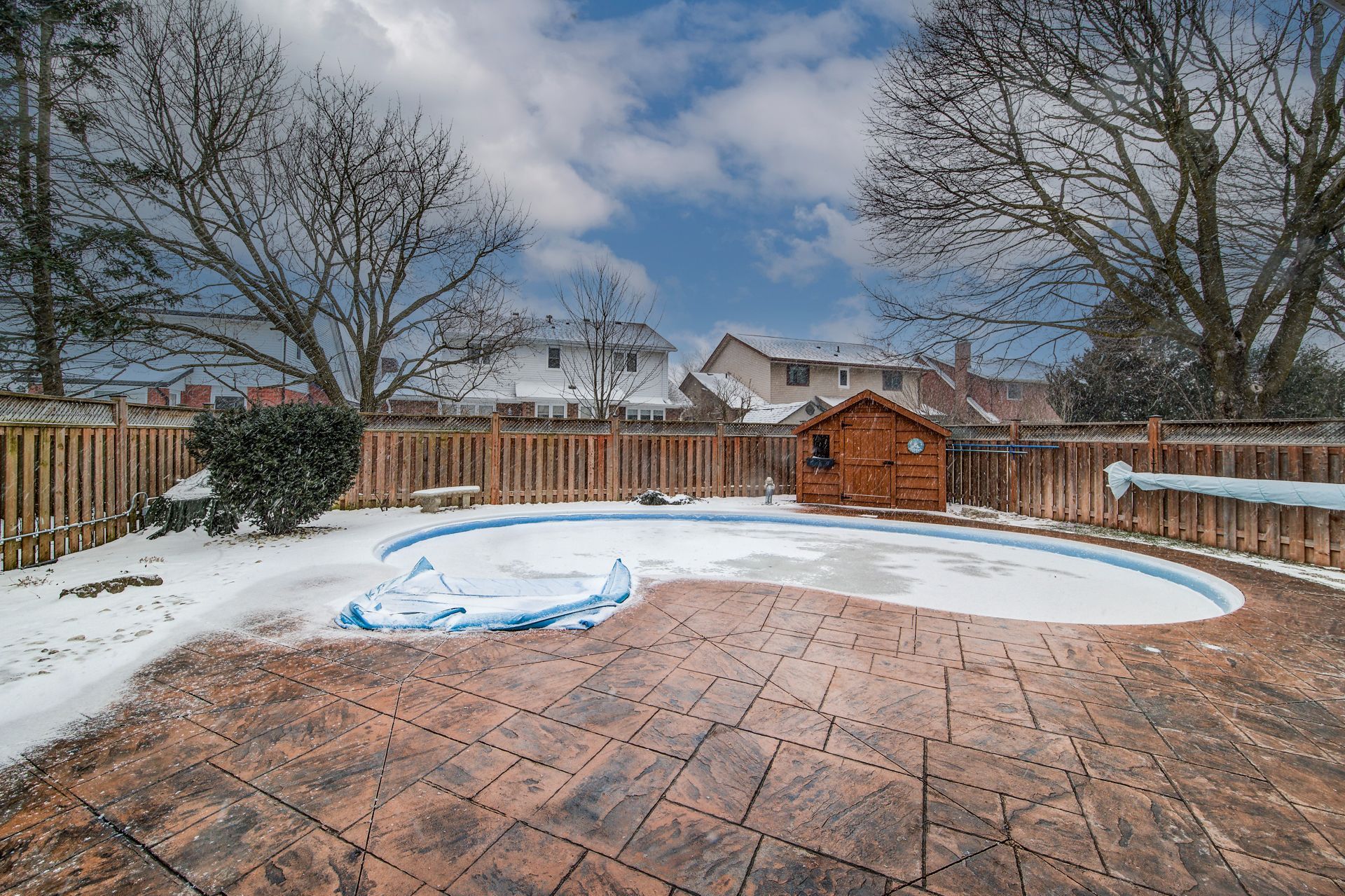 • Private backyard with a heated inground pool and pool house.