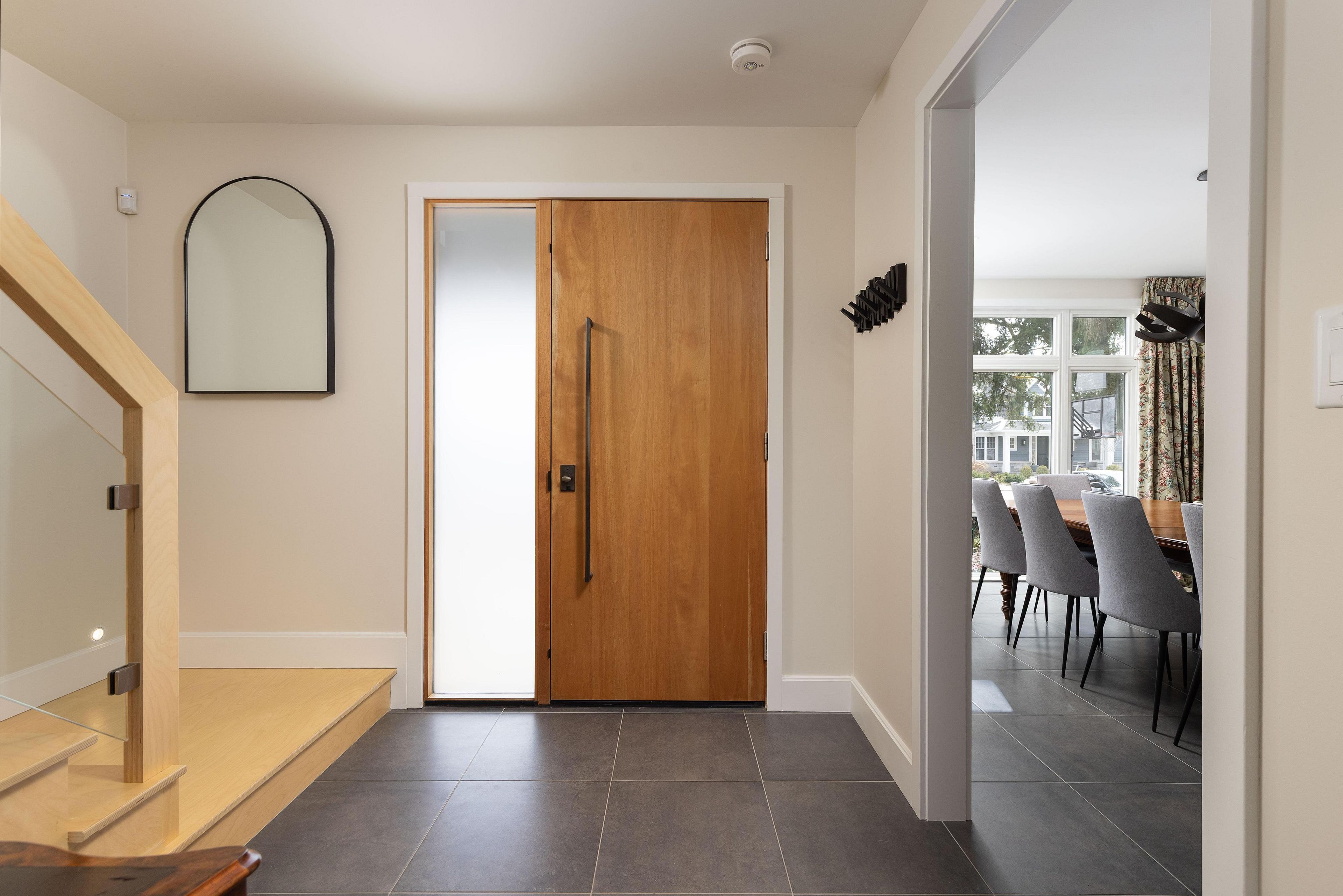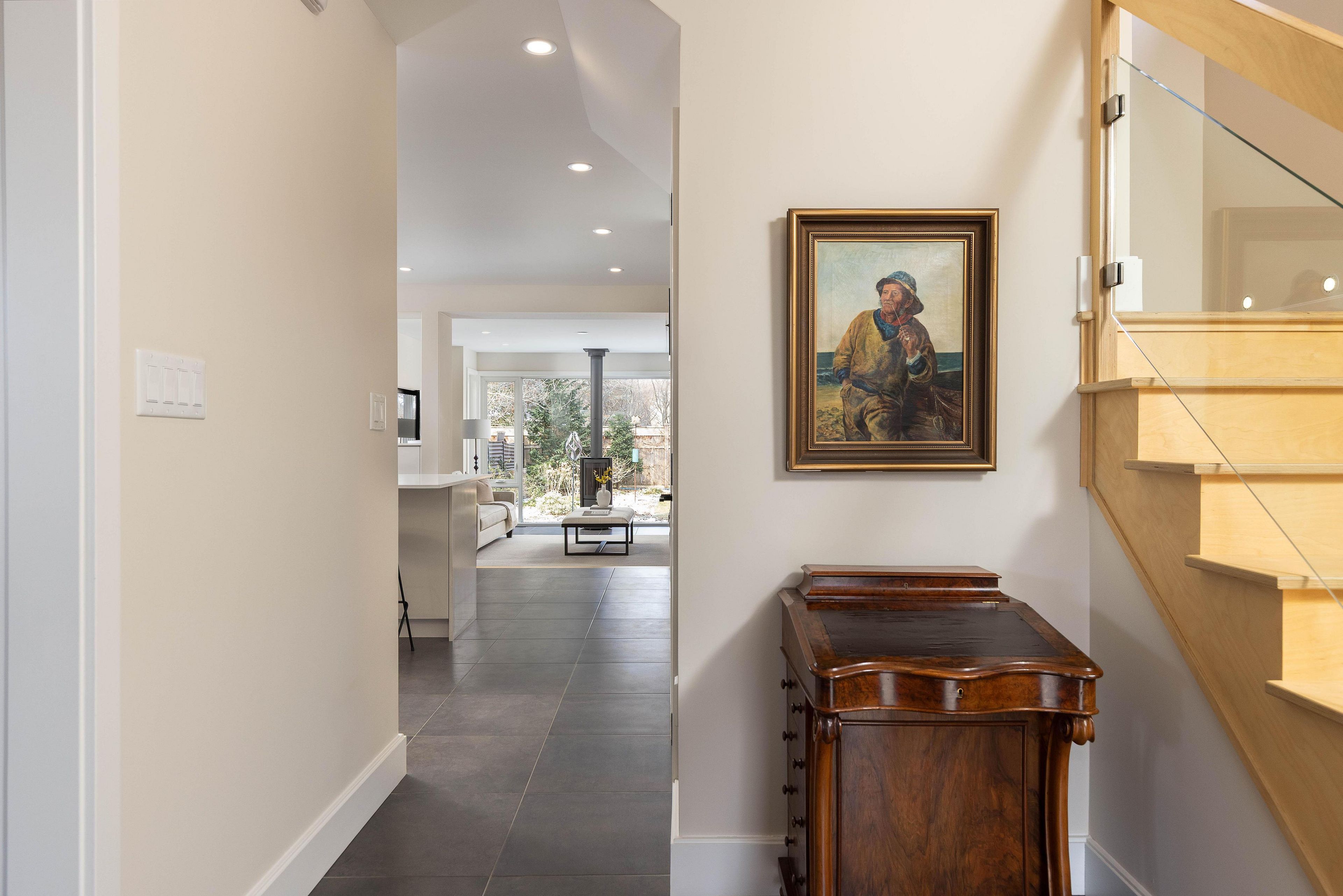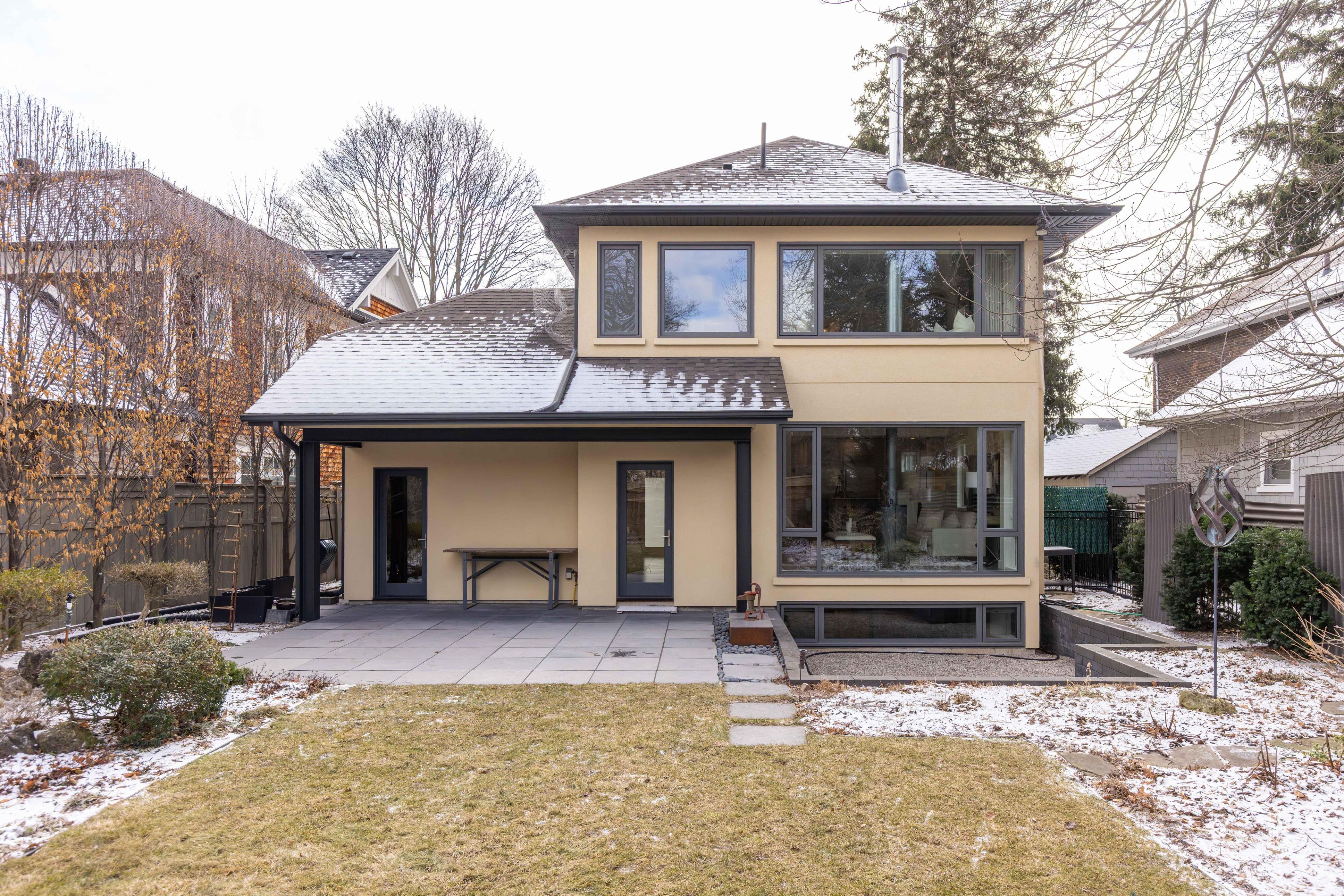 367 spruce street captures the charm of old oakville architecture while delivering the comfort and performance of modern design. Originally a classic 1920s foursquare, the home has been comprehensively rebuilt. Reimagined by john wilmott, most of the residence consists of new construction additions, complemented by a fully new, poured-concrete basement, allowing the home to retain its architectural character while offering clean contemporary lines and abundant natural light. The two-storey layout offers five bedrooms and four bathrooms. The main level balances warmth with refined design. The dining room is framed by a large picture window, while the kitchen features euro-style cabinetry, quartz countertops, stainless steel appliances, and a centre island with seating and storage. Heated tile floors extend through the kitchen, living areas, and mudroom. The living room is anchored by a jøtul wood-burning stove and expansive backyard views. A mudroom with custom cabinetry provides access from the garage, driveway, and patio. Upstairs are four bedrooms, including a bright primary suite with oversized windows, a walk-through closet, and a five-piece ensuite. Upper-level laundry adds convenience. The finished lower level introduces an industrial edge, highlighted by a poured-concrete foundation with radiant-heated polished concrete floors, exposed structural elements, and generous ceiling height. The space includes a family room with a media niche crafted from reclaimed original trusses, a gym area, fifth bedroom, three-piece bath, and storage. A heat-recovery air exchange system provides continuous fresh air, while in-floor radiant heating enhances comfort on the main level and basement. Outdoors, the private backyard offers mature landscaping, a stone patio, and fire pit seating. An extended garage, ev charger, carport, and ecoraster recycled driveway complete this distinctive old oakville offering.