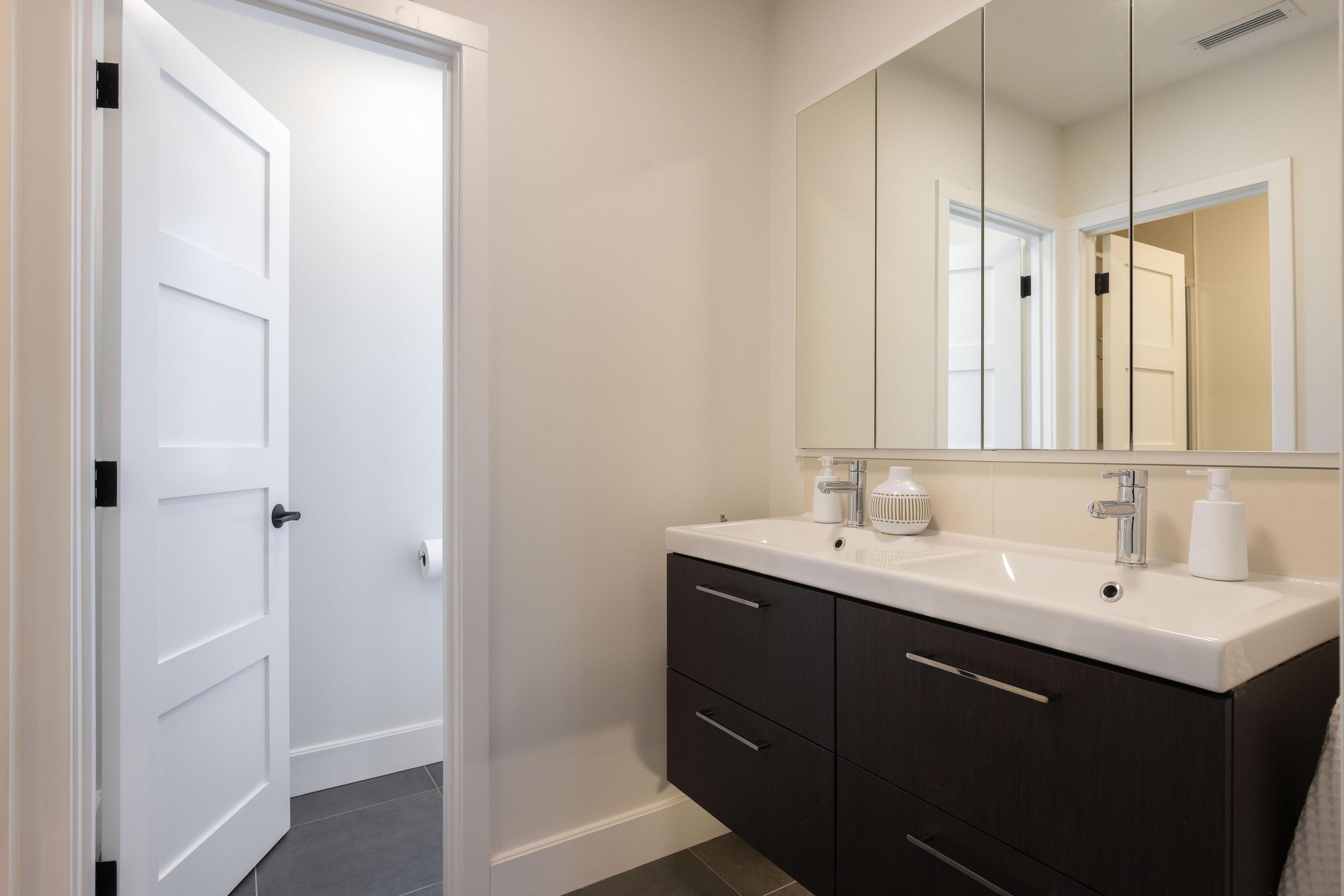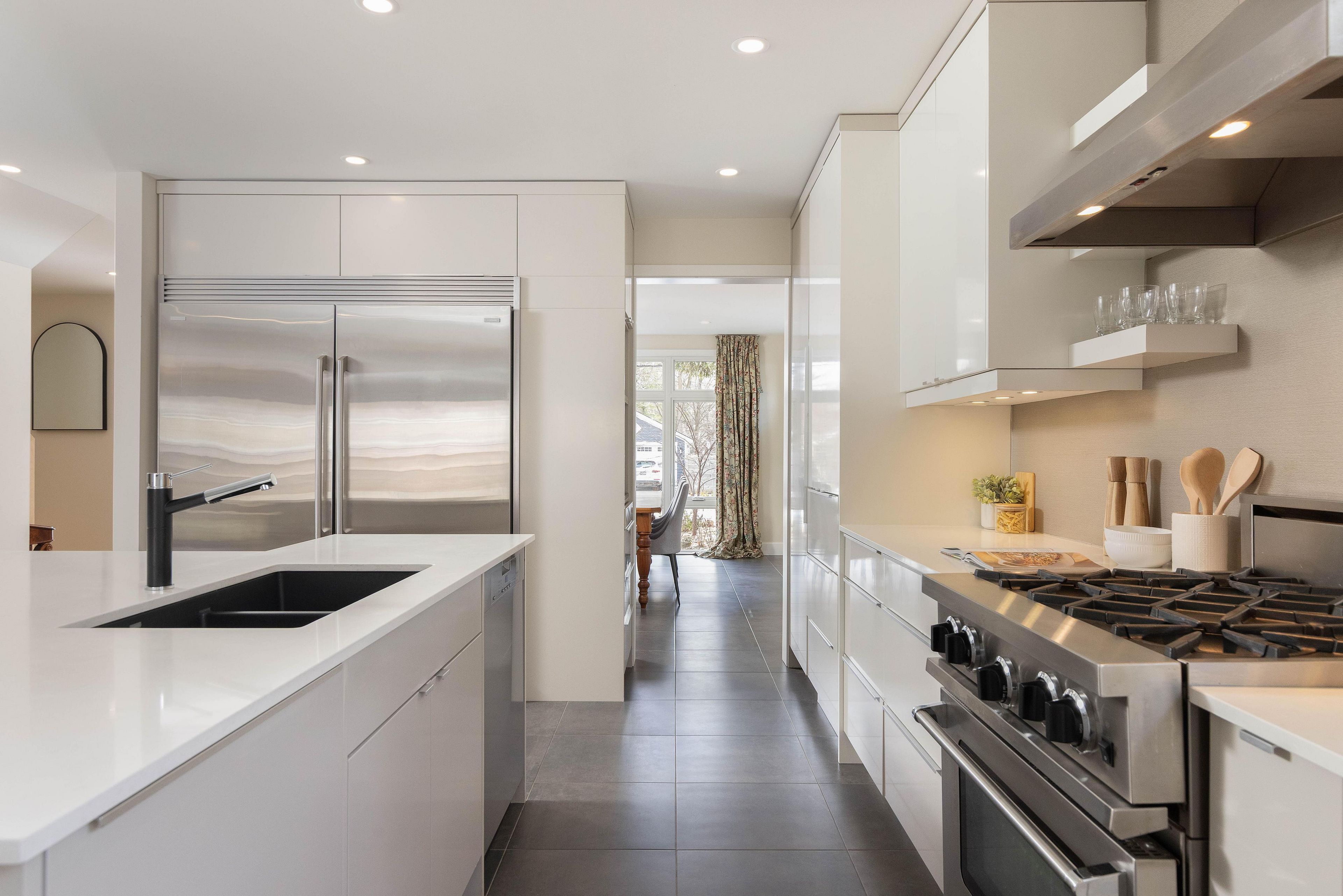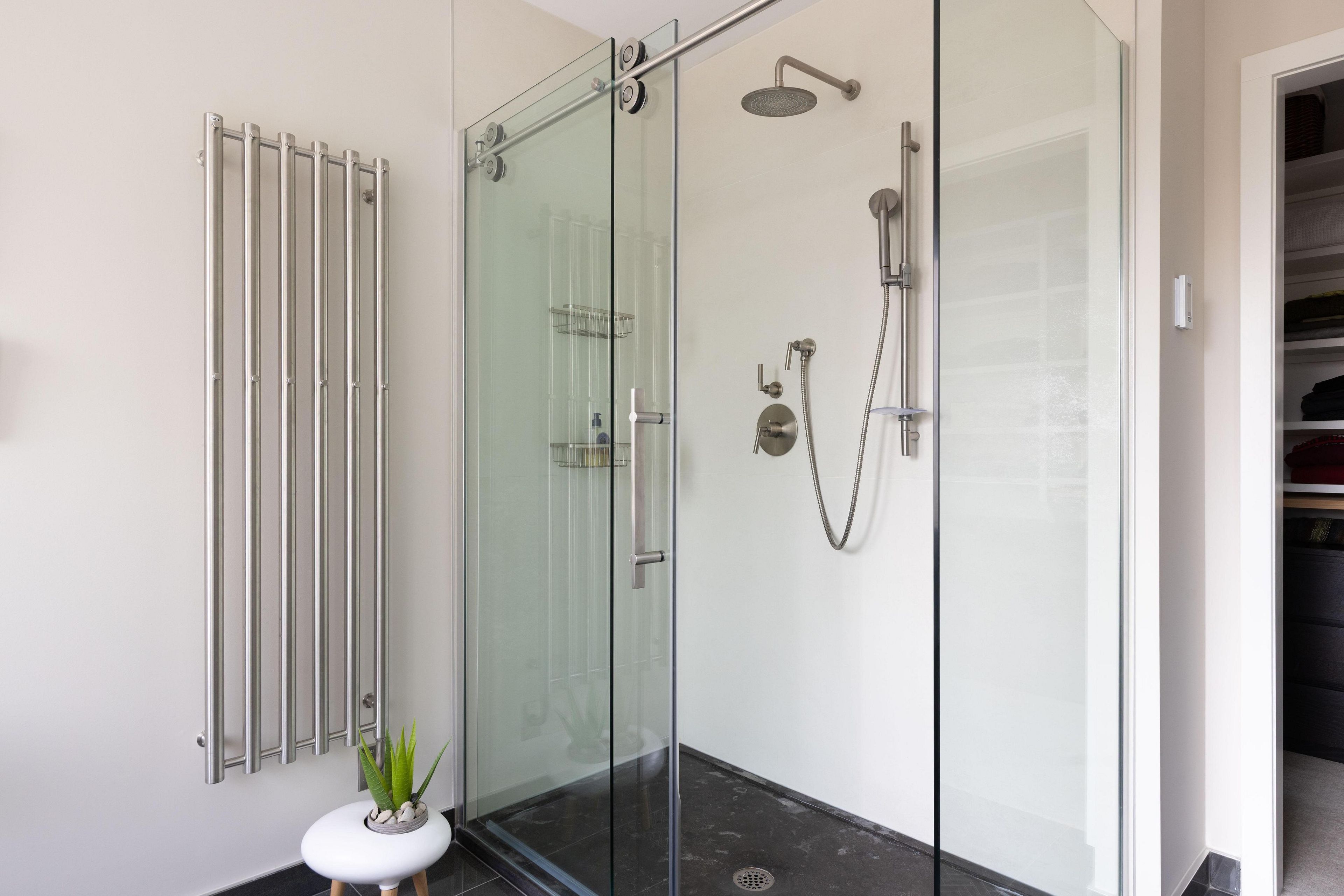 • Bright main level with Euro-style kitchen, quartz countertops, and heated tile floors.