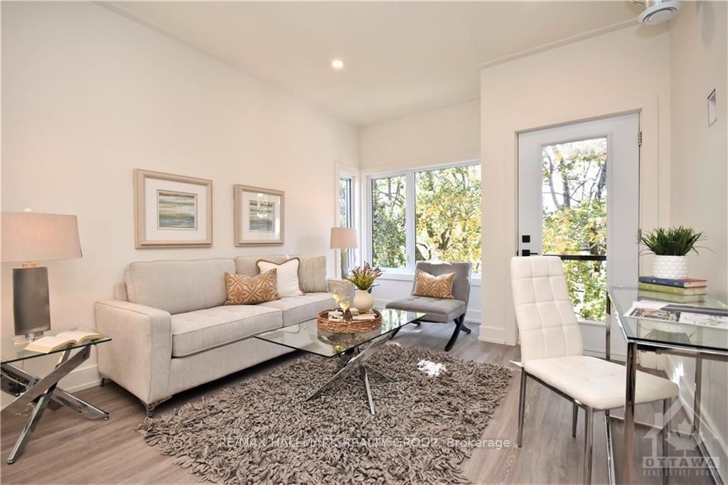 Welcome home to this beautifully designed executive rental in the heart of sandy hill. Featuring 3 bedrooms, 1 1/2 baths on the main level, with open concept living/dining and kitchen. Featuring quartz counters, ss appliances, pot lights throughout, on demand hot water tank and in-unit laundry. 919 sq ft of space according to the architect. Bike storage is also included. Close to ottawa u, transit, parks, the rideau centre and byward market. 48 hours irrevocable and schedule b in attachments to accompany all offers. Other is 30 sq. Ft. Rear facing balcony. See attachments for floor plan layout. Note: pictures were taken from another unit that was staged which is the same layout as this one. Tenant pays rent + gas and hydro.