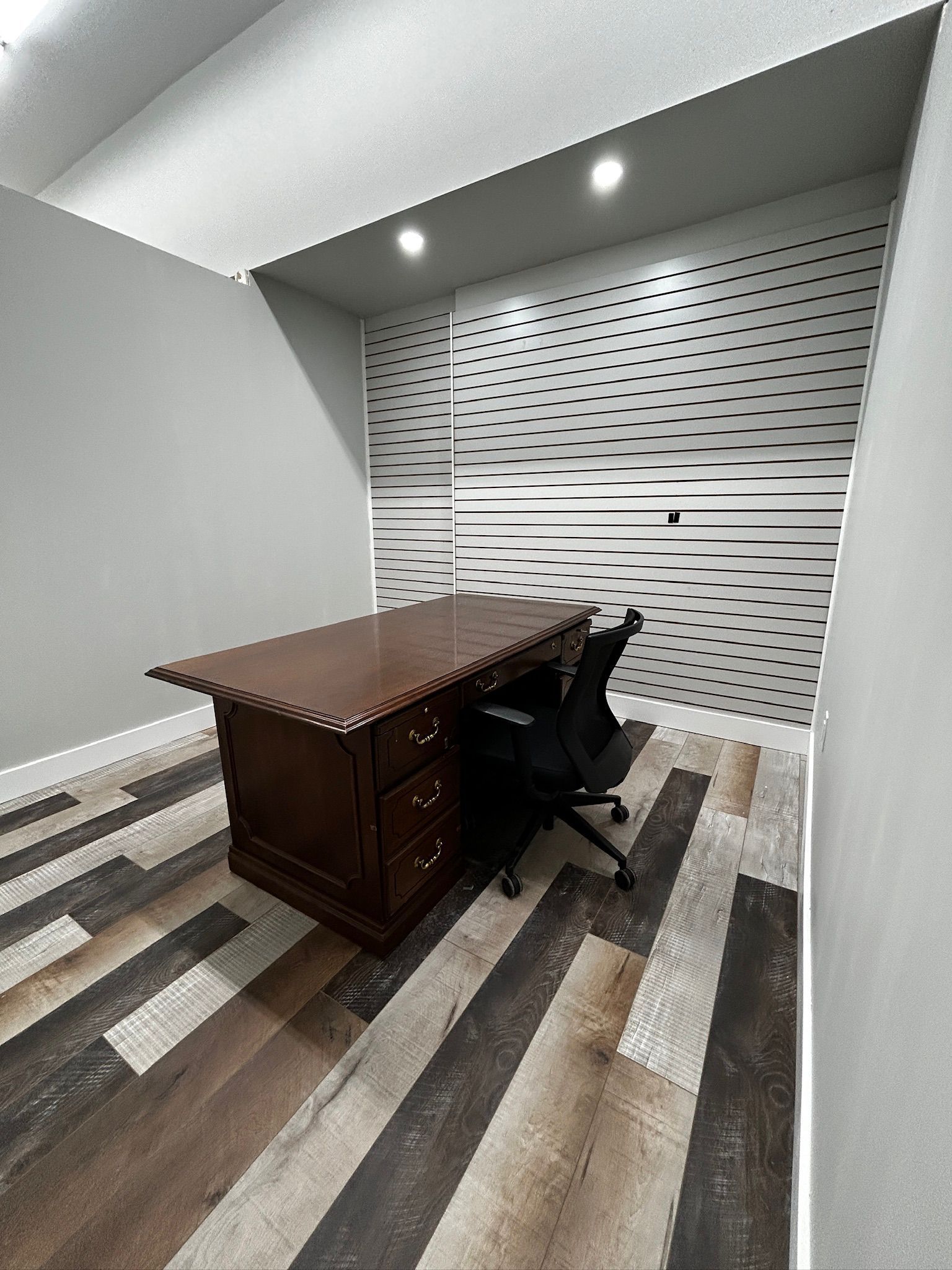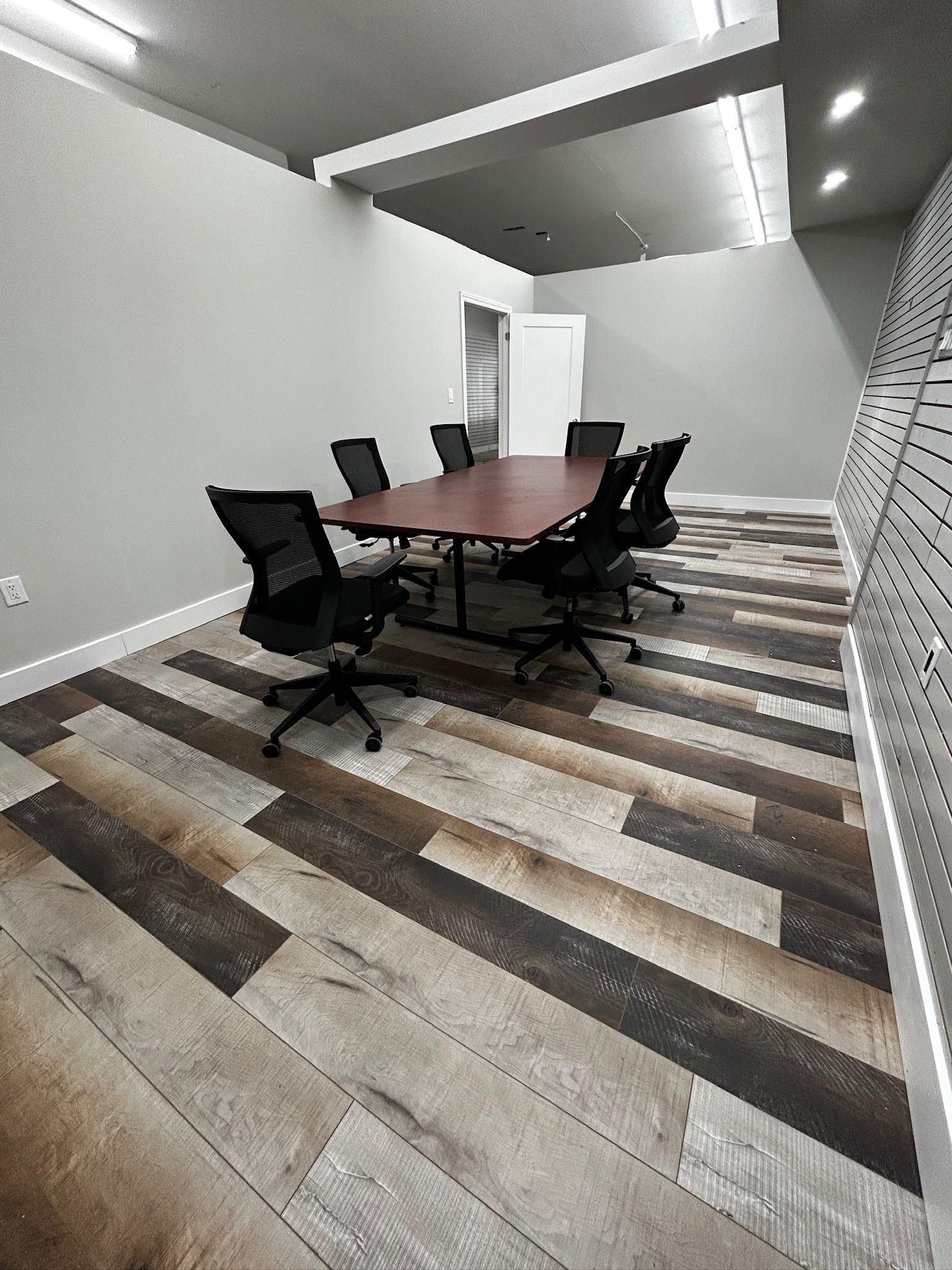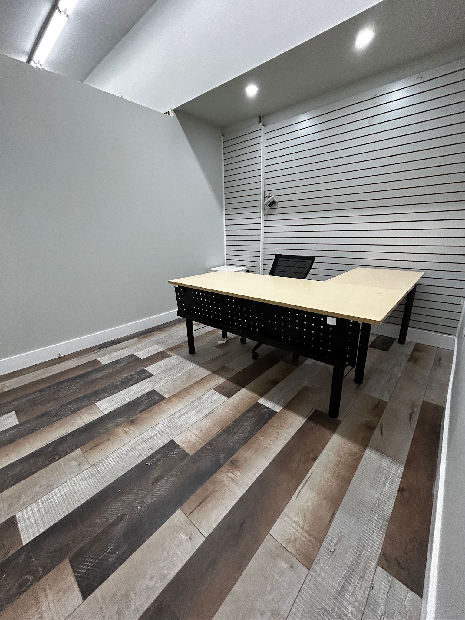 • Flexible layout with private offices and a large boardroom for meetings.
