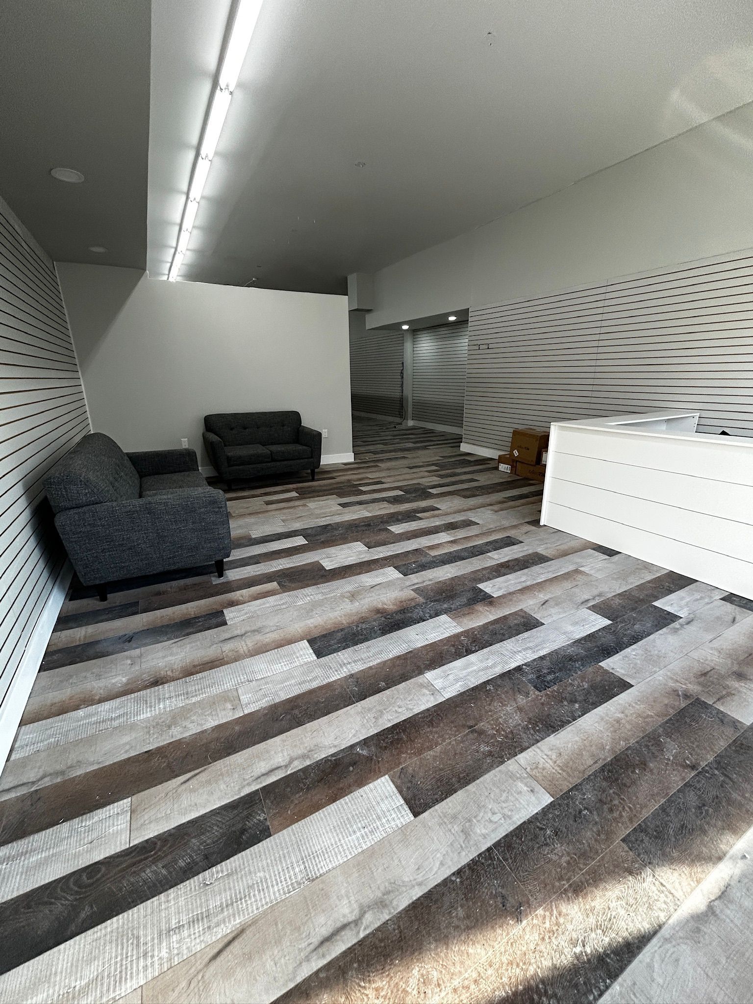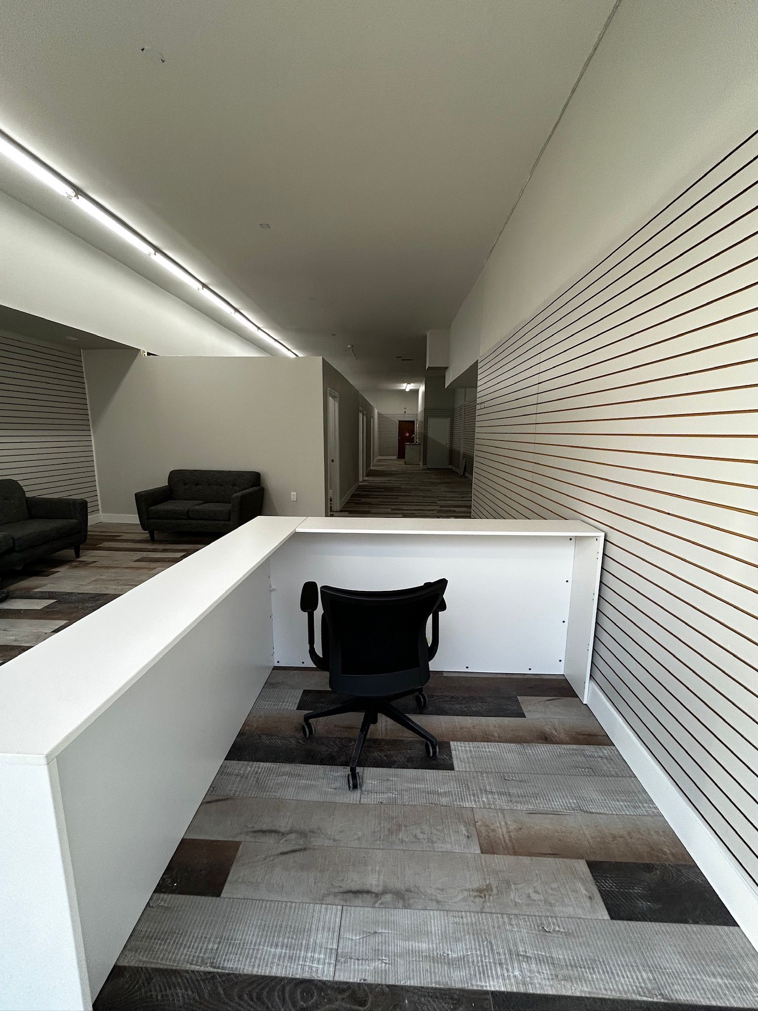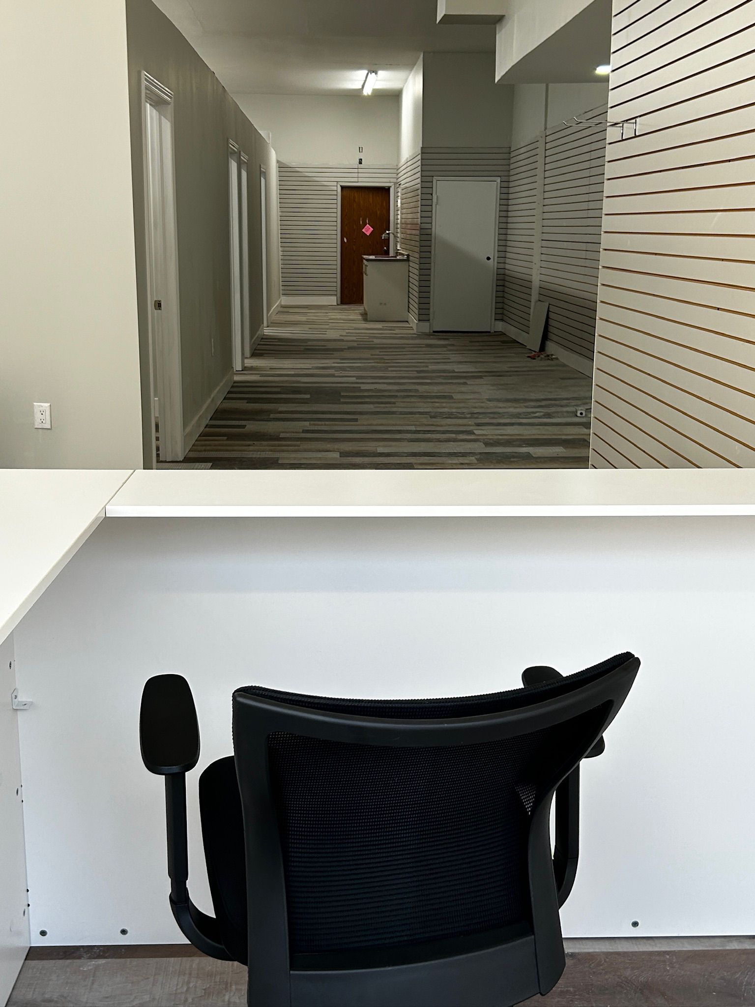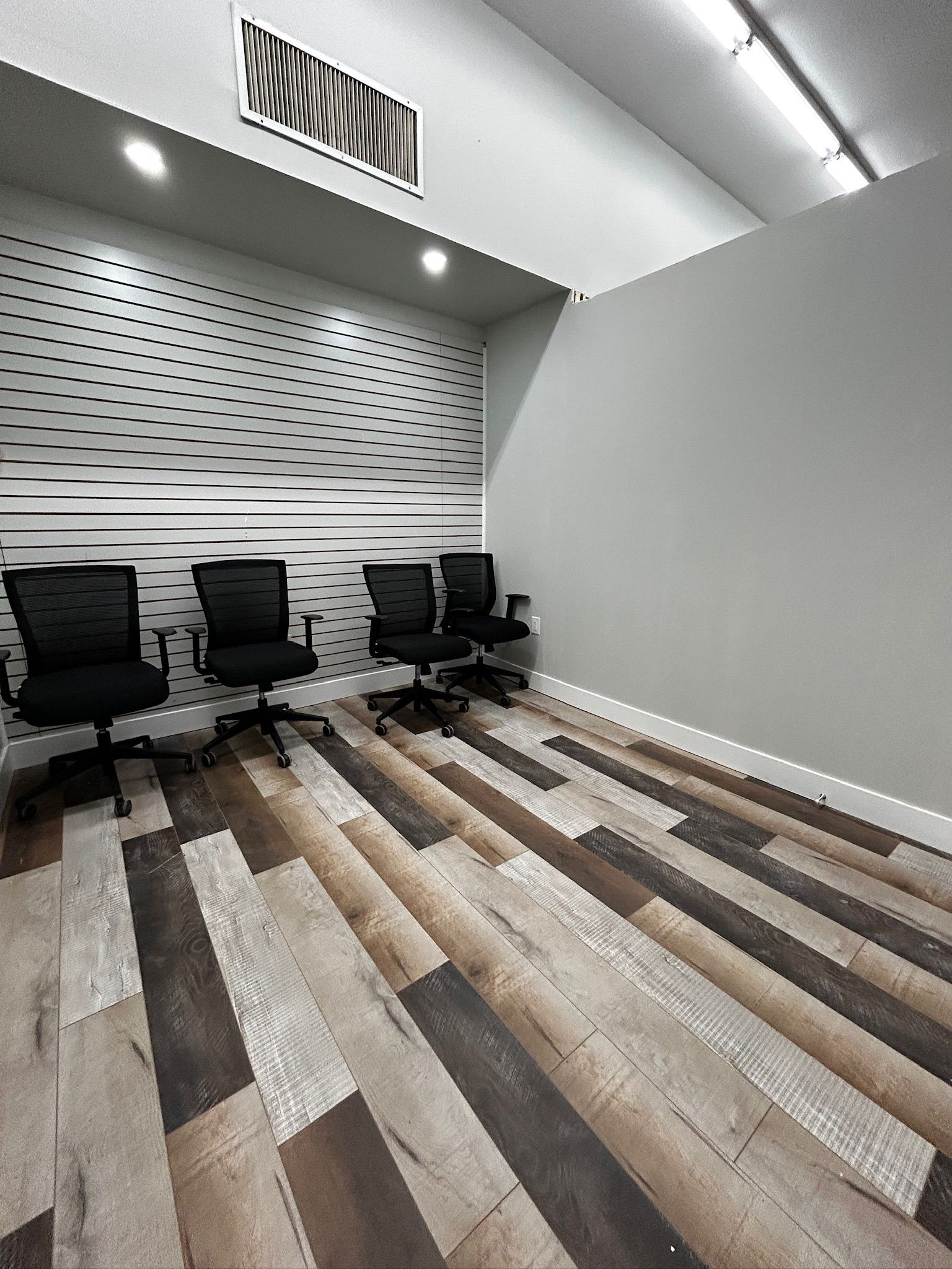 • Flexible layout with private offices and a large boardroom for meetings.