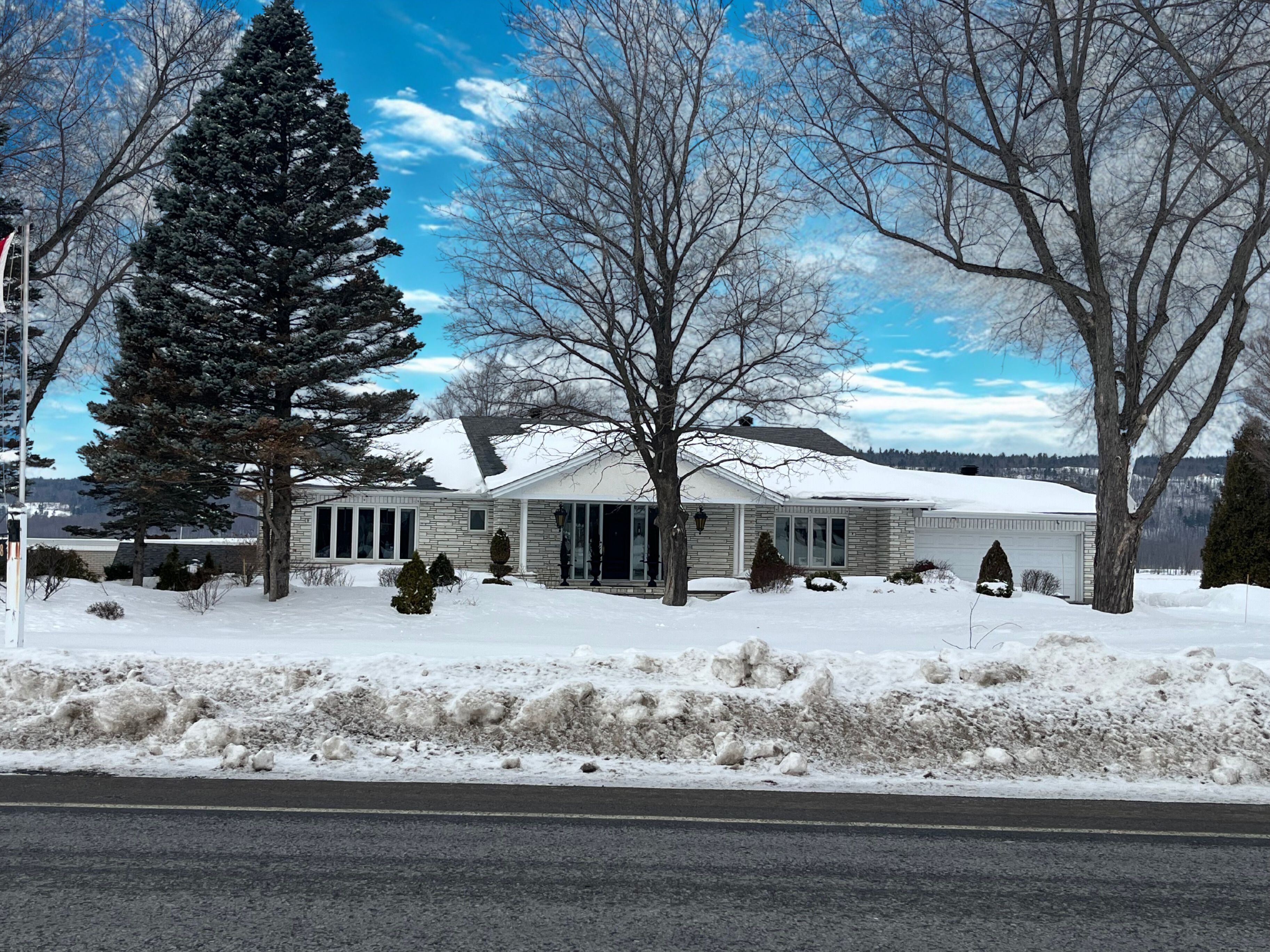 Waterfront bungalow on ottawa river nestled on flat landscaped land in the prestigious neighborhood of front rd l'orignal. Extra large bungalow of 2470sq waiting your modernization. Natural gas available and high speed.