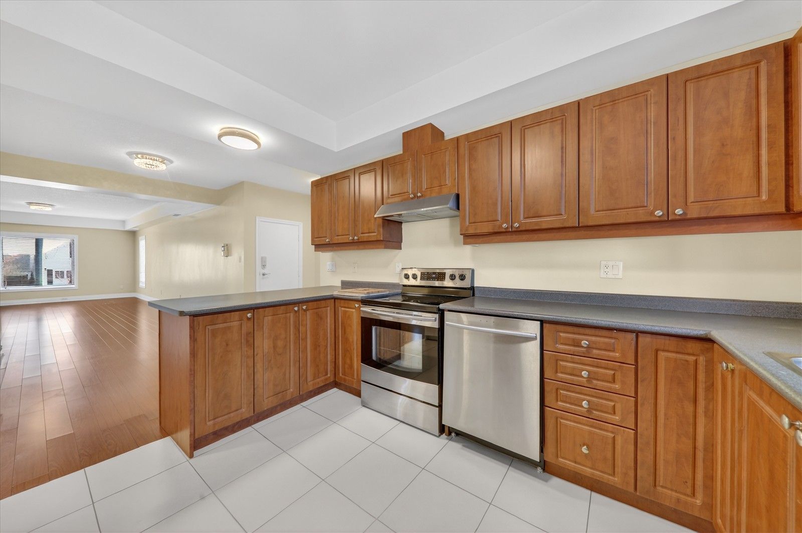 • 9-foot ceilings and laminate flooring throughout for a modern feel.