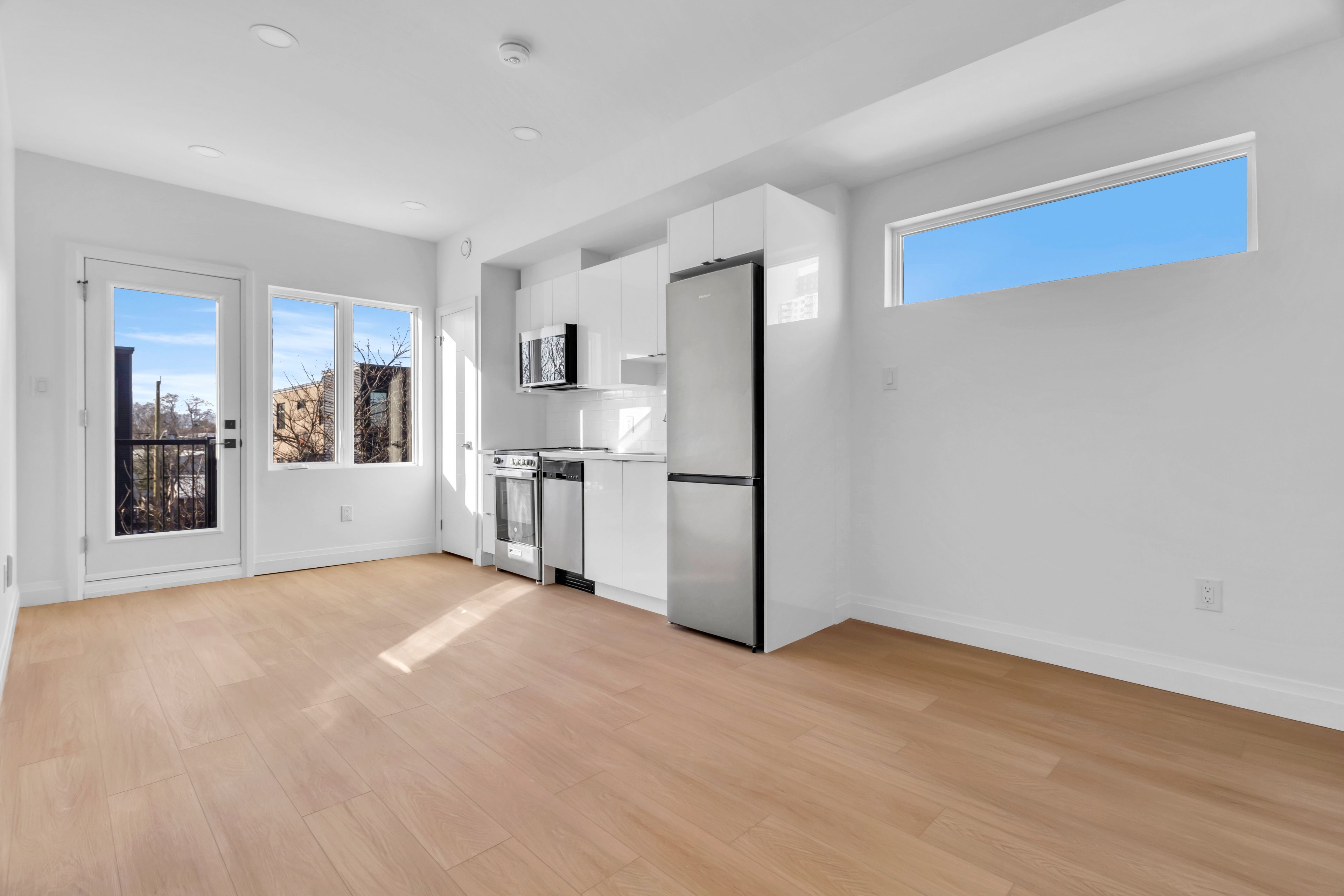 • Open-concept layout with large windows for natural light.