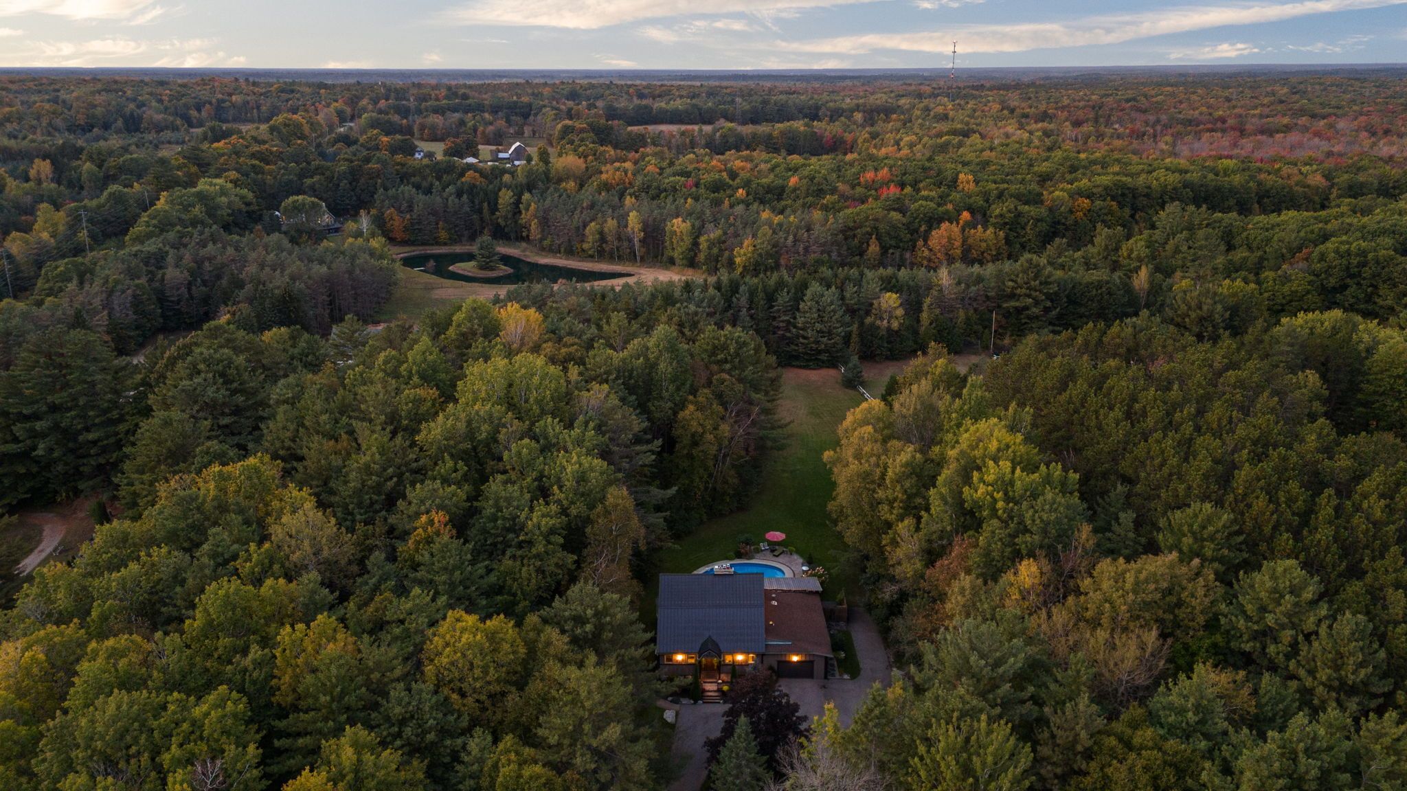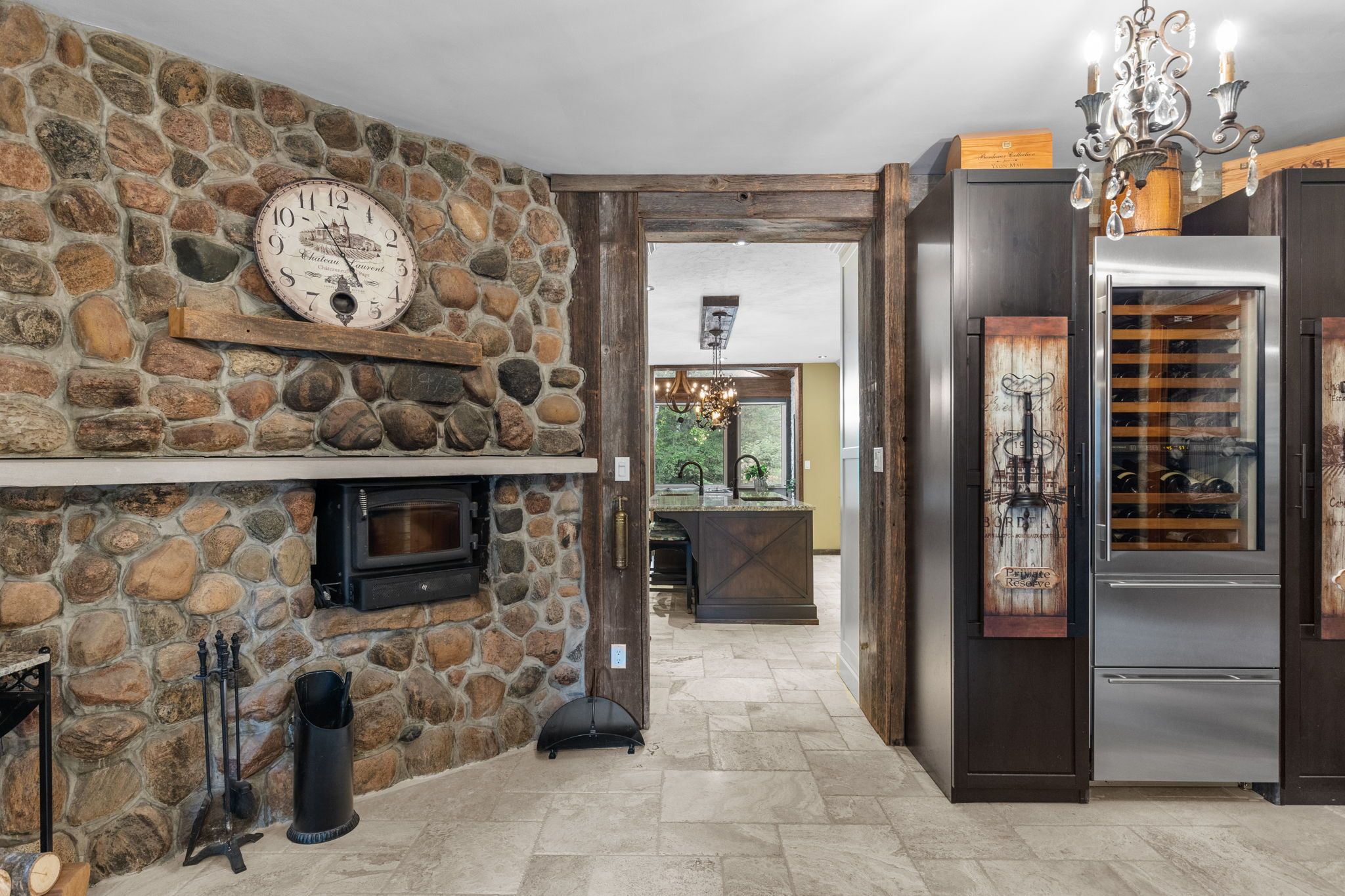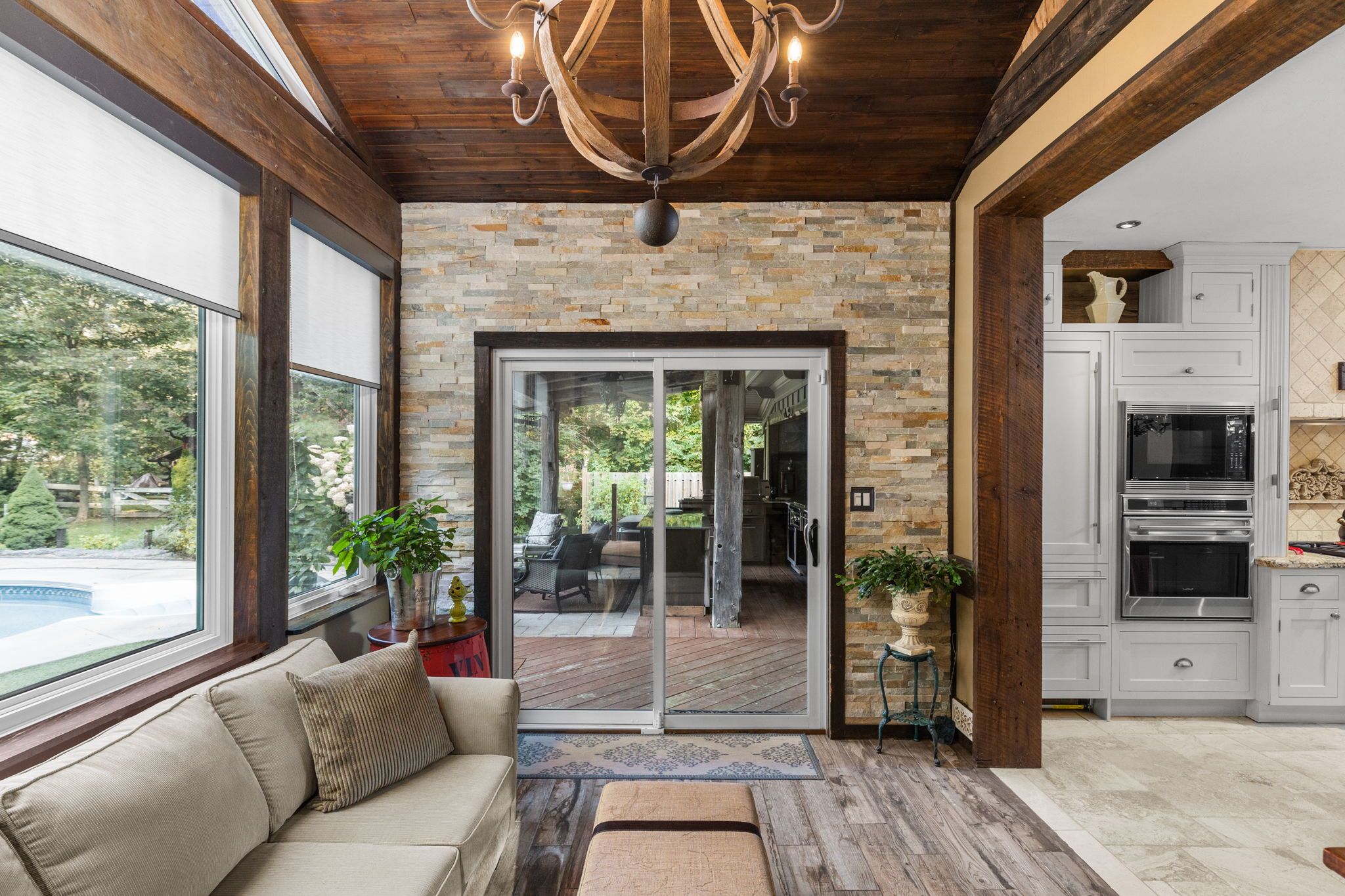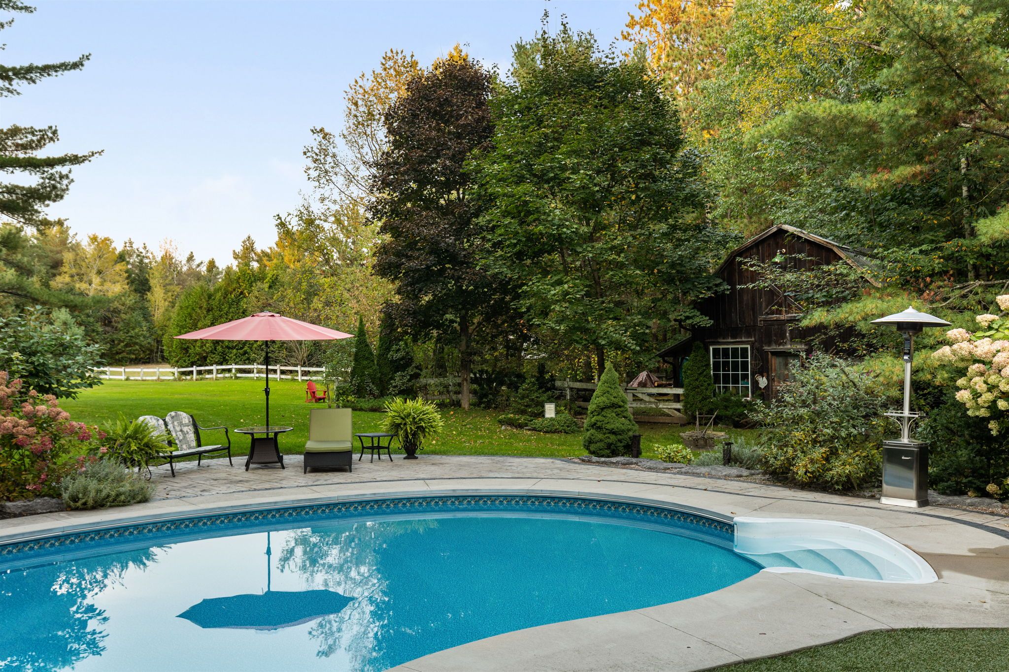 Discover a one-of-a-kind barndominium that is a perfect blend of timeless luxury and rustic character. Nestled within a lush, tree-lined sanctuary, this property boasts 3. 88 acres of meticulously maintained grounds, complete with circular driveway and attached garage. Relax outside in the in-ground heated pool, featuring a 9-foot deep end, accompanied by a rejuvenating hot tub. Entertain effortlessly in the full outdoor kitchen, situated under a striking barn beam enclosure, equipped with premium amenities including a lynx double pro searer, outdoor fridge, quartz countertops, and a restaurant-quality stainless steel island cabinet. Spanning over 4,300 square feet, the residence showcases exquisite high-end finishes and original barn elements. The refinished wide-plank floors harmonize with limestone and porcelain tiles throughout the main floor. The chefs kitchen is outfitted with granite counters, top-tier wolf appliances including 6 burner gas stove, warming drawer, in-counter deep fryer and steamer and sub-zero refrigerator and freezer. The four-season muskoka room, complete with in-floor heating, serves as a tranquil retreat year-round. The primary suite offers engineered hardwood flooring, a spacious walk-in closet, and breathtaking 5-piece ensuite with extraordinary stonework, soaker tub and walk-in shower. Two additional hayloft bedrooms share a beautiful 4-piece bathroom, while a large finished loft presents endless possibilities as an extra bedroom, play room, or hobby room. The fully finished basement with garage access, features a wet bar and rec area with wood burning fireplace and full bathroom with a unique stone shower and laundry. Geothermal heating and cooling ensures energy efficiency throughout. Completing this remarkable offering is a versatile 30x20 barn equipped with water and hydro. With unlimited character and unparalleled privacy, this extraordinary barndominium invites you to experience luxurious country living like never before.