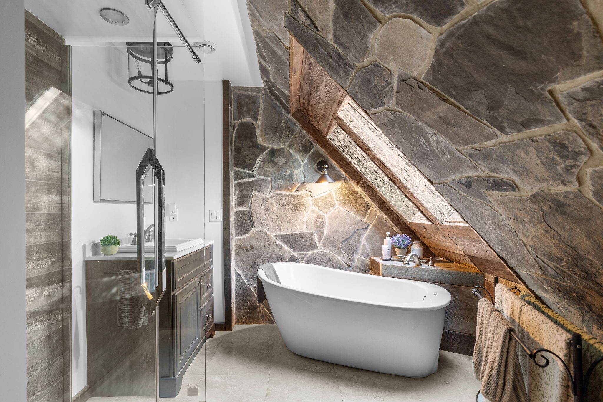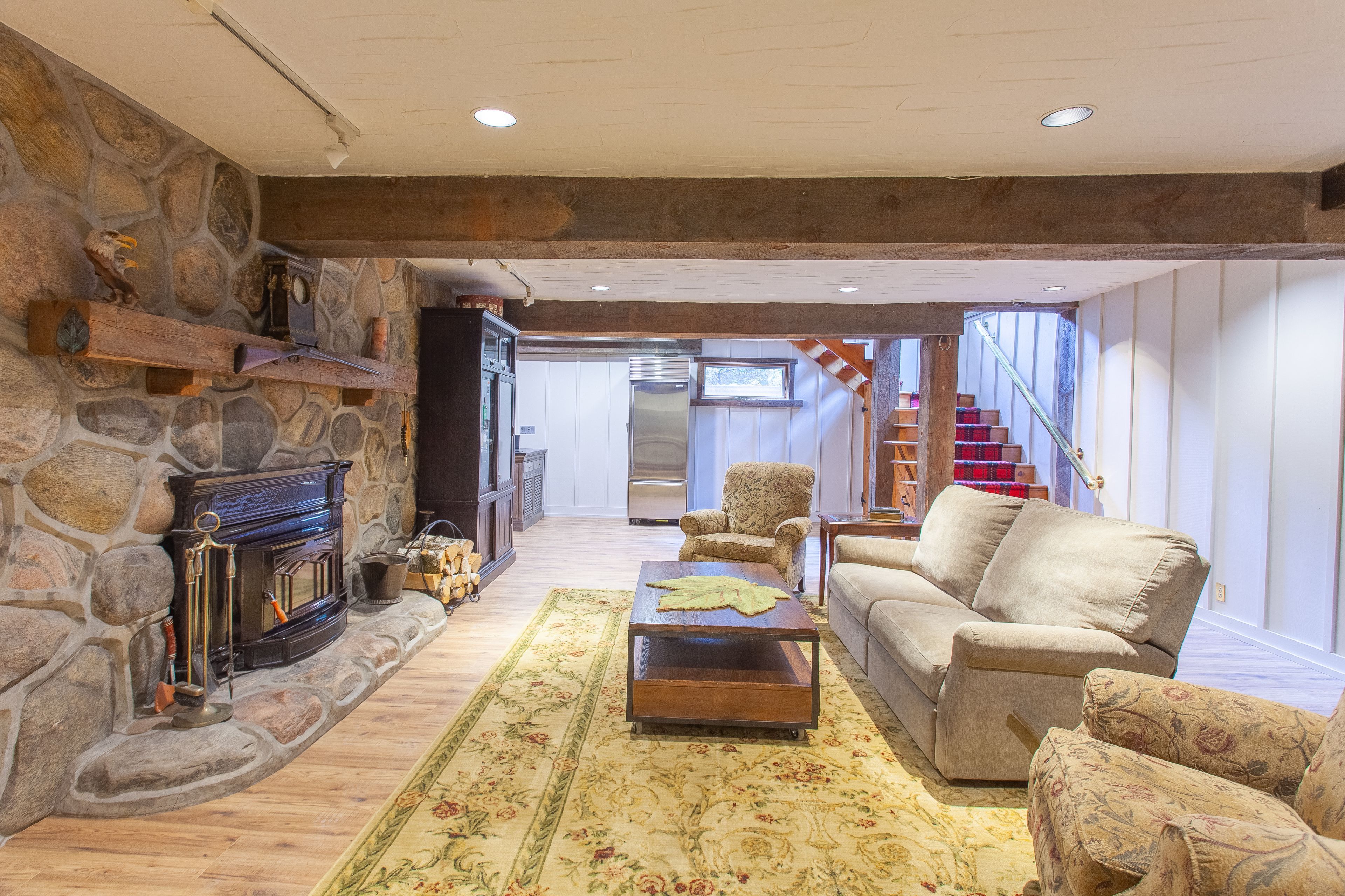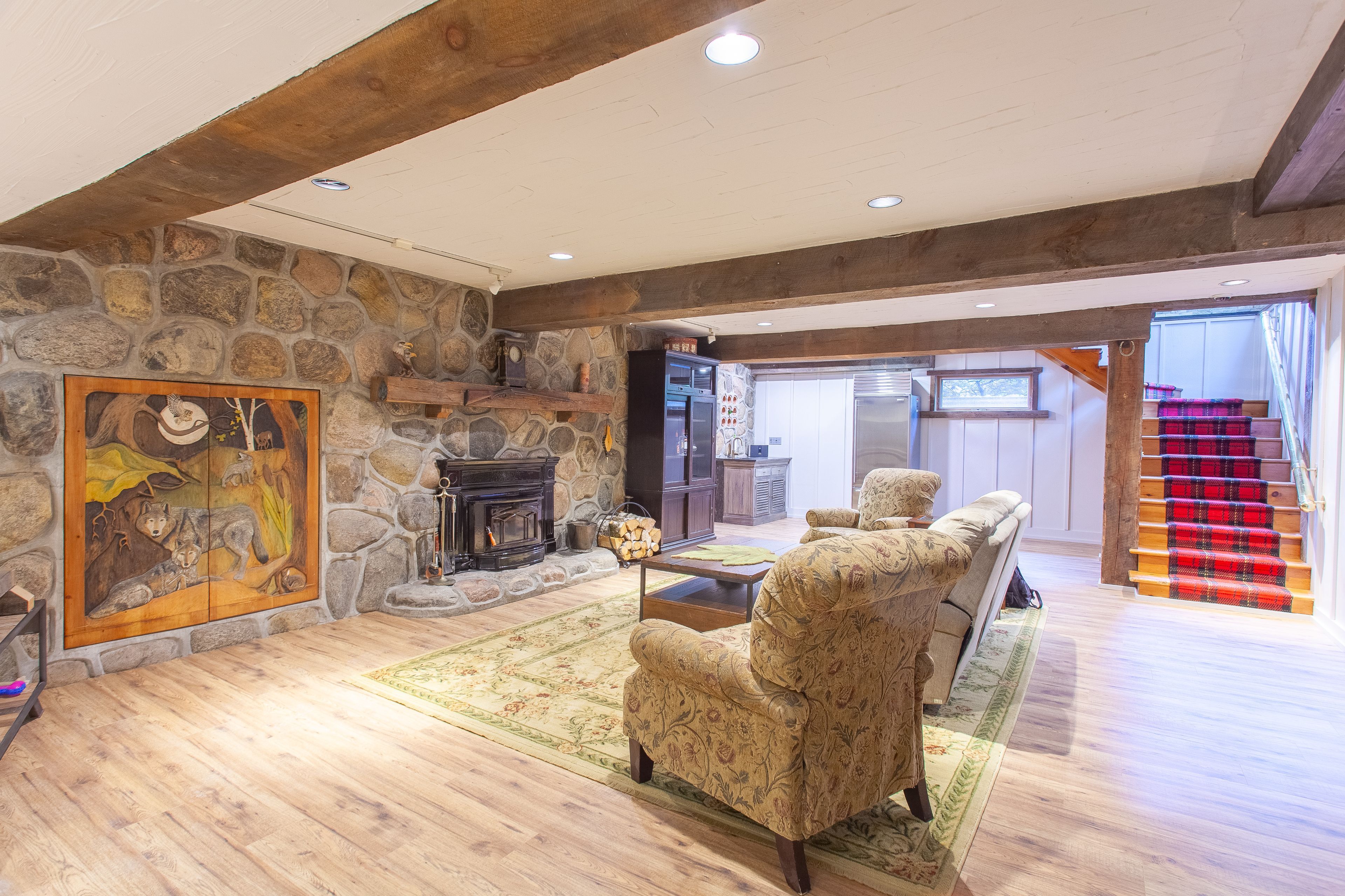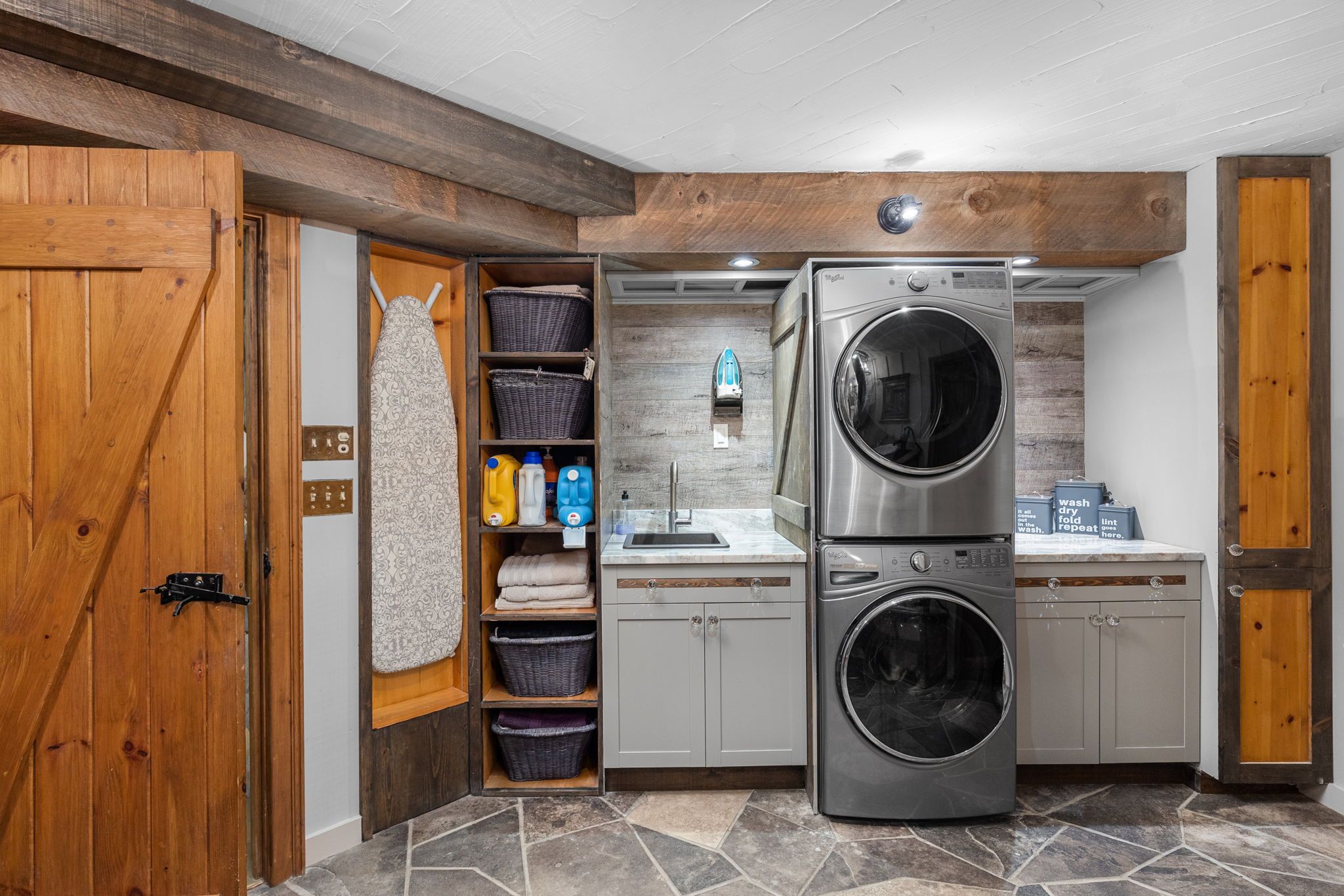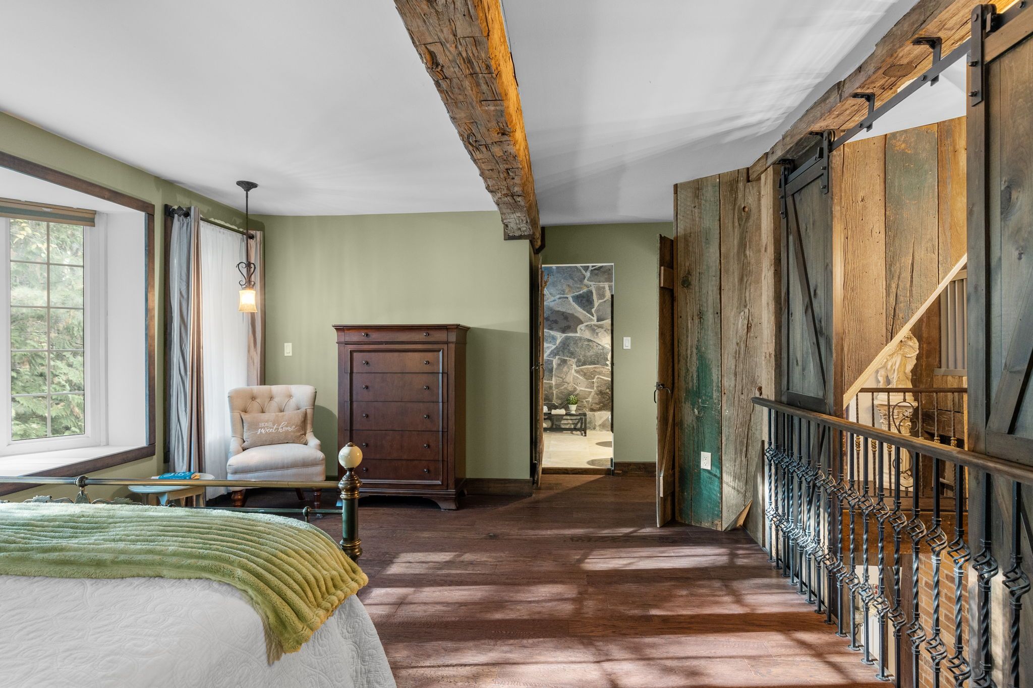 • High-end finishes and original barn features enhance the living space.