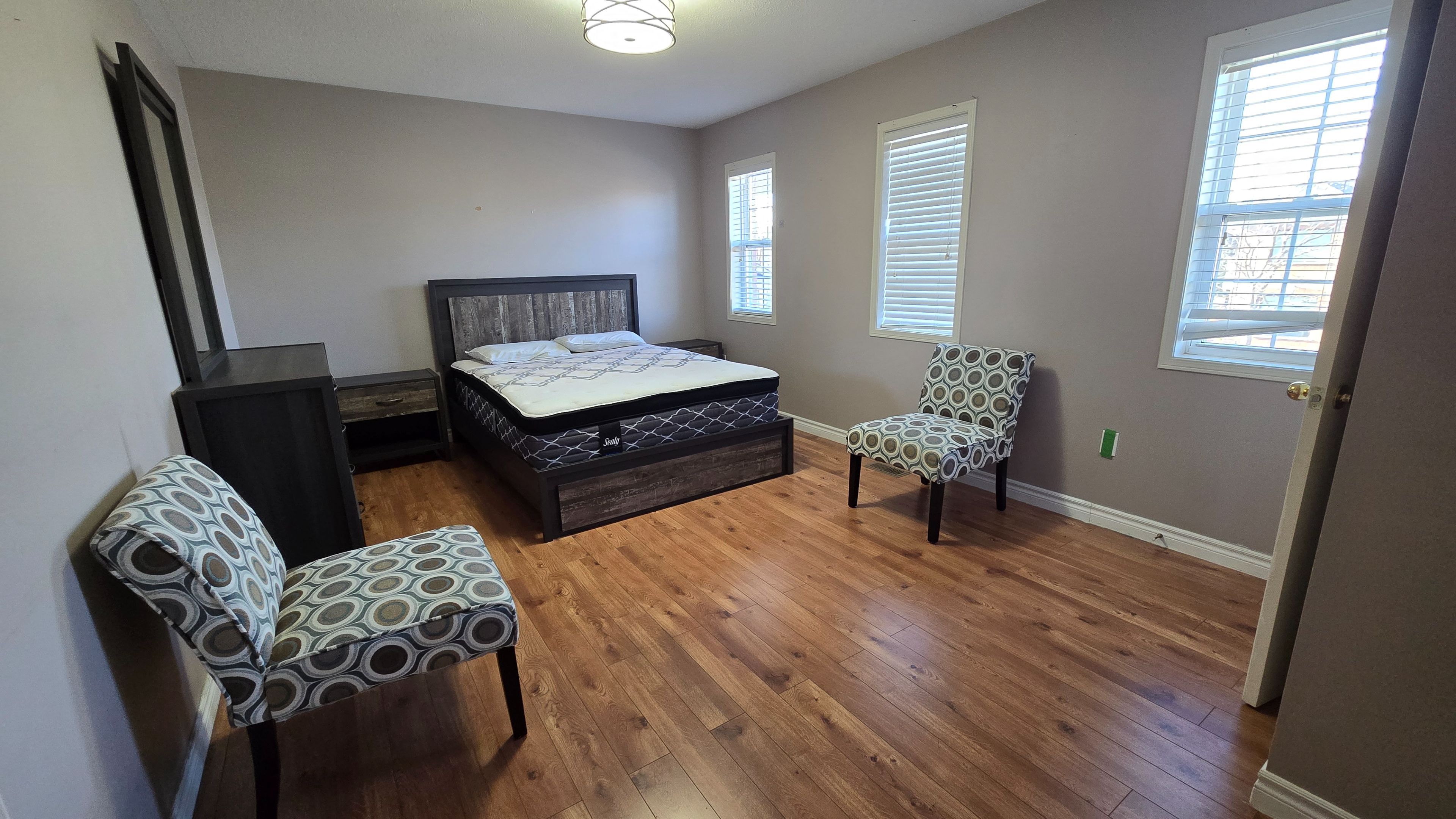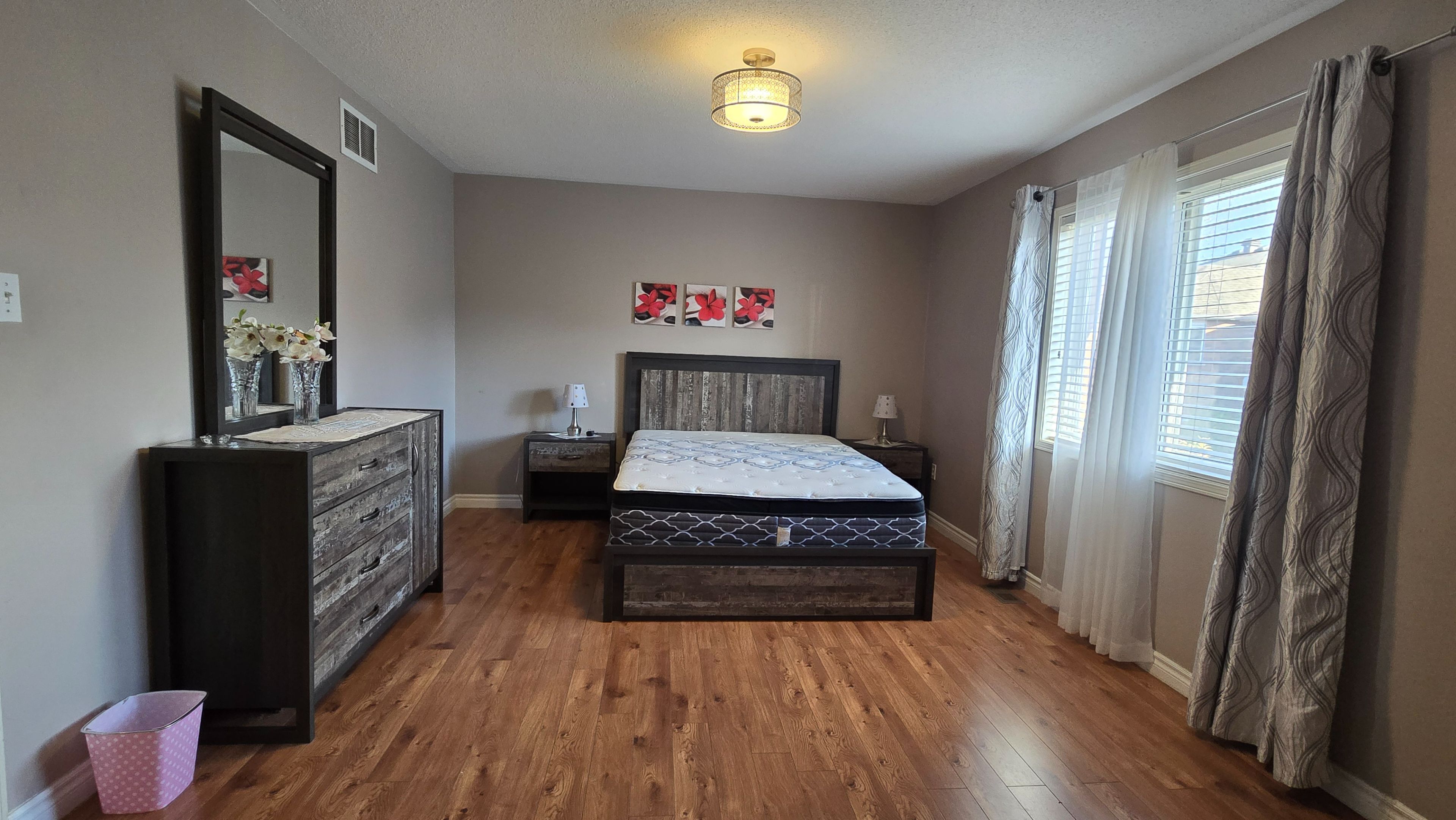 • Furnished detached home with bright and open living spaces.