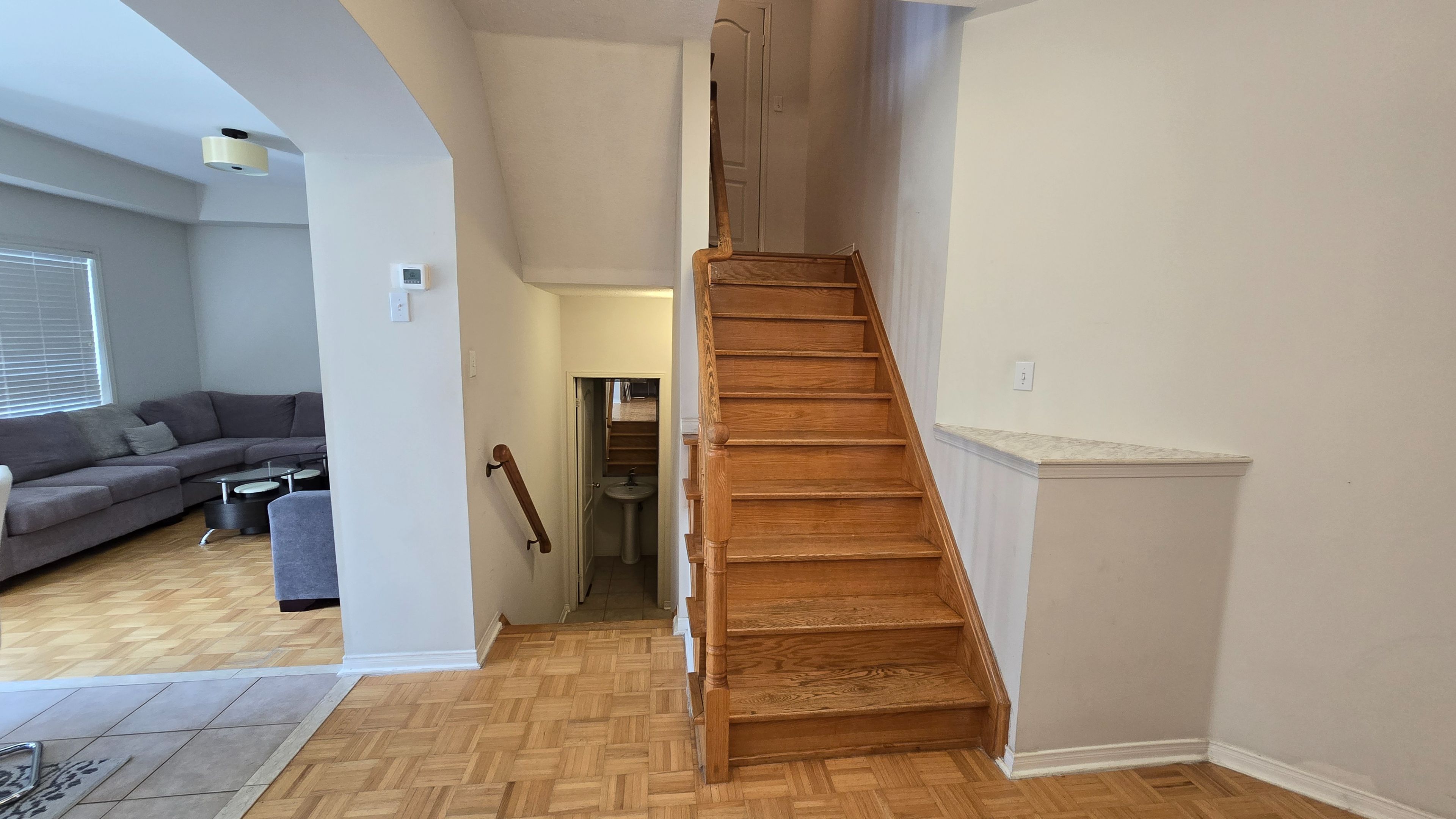 • Solid oak staircase adds a touch of elegance throughout.