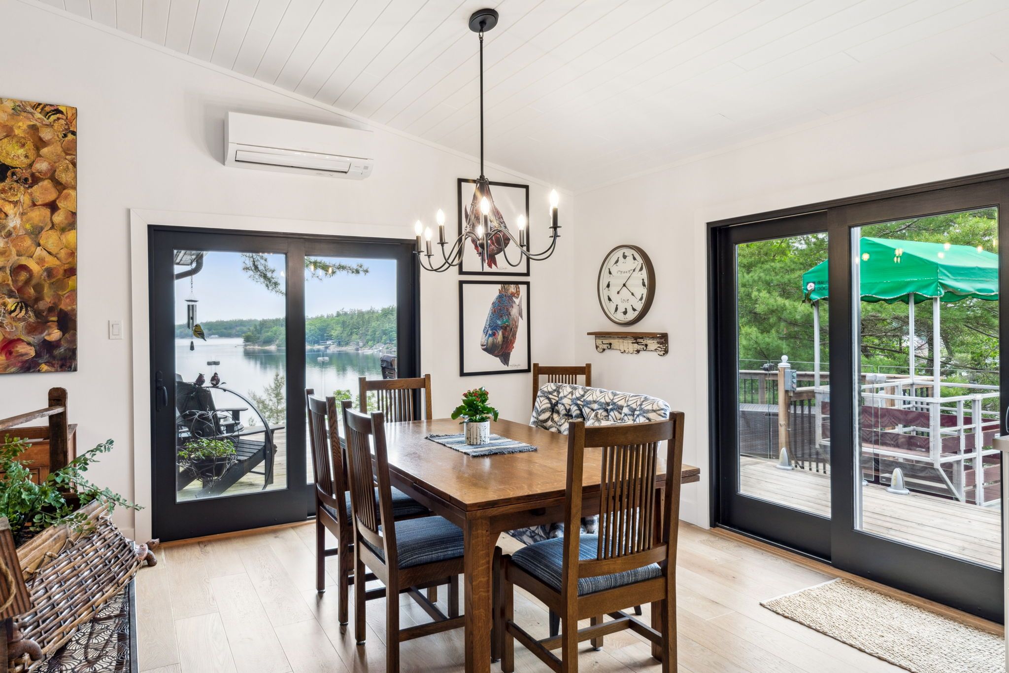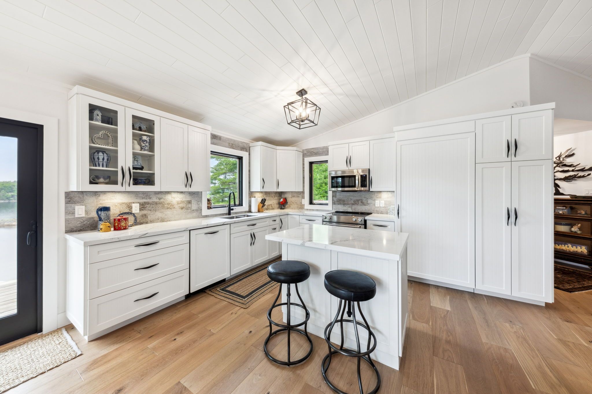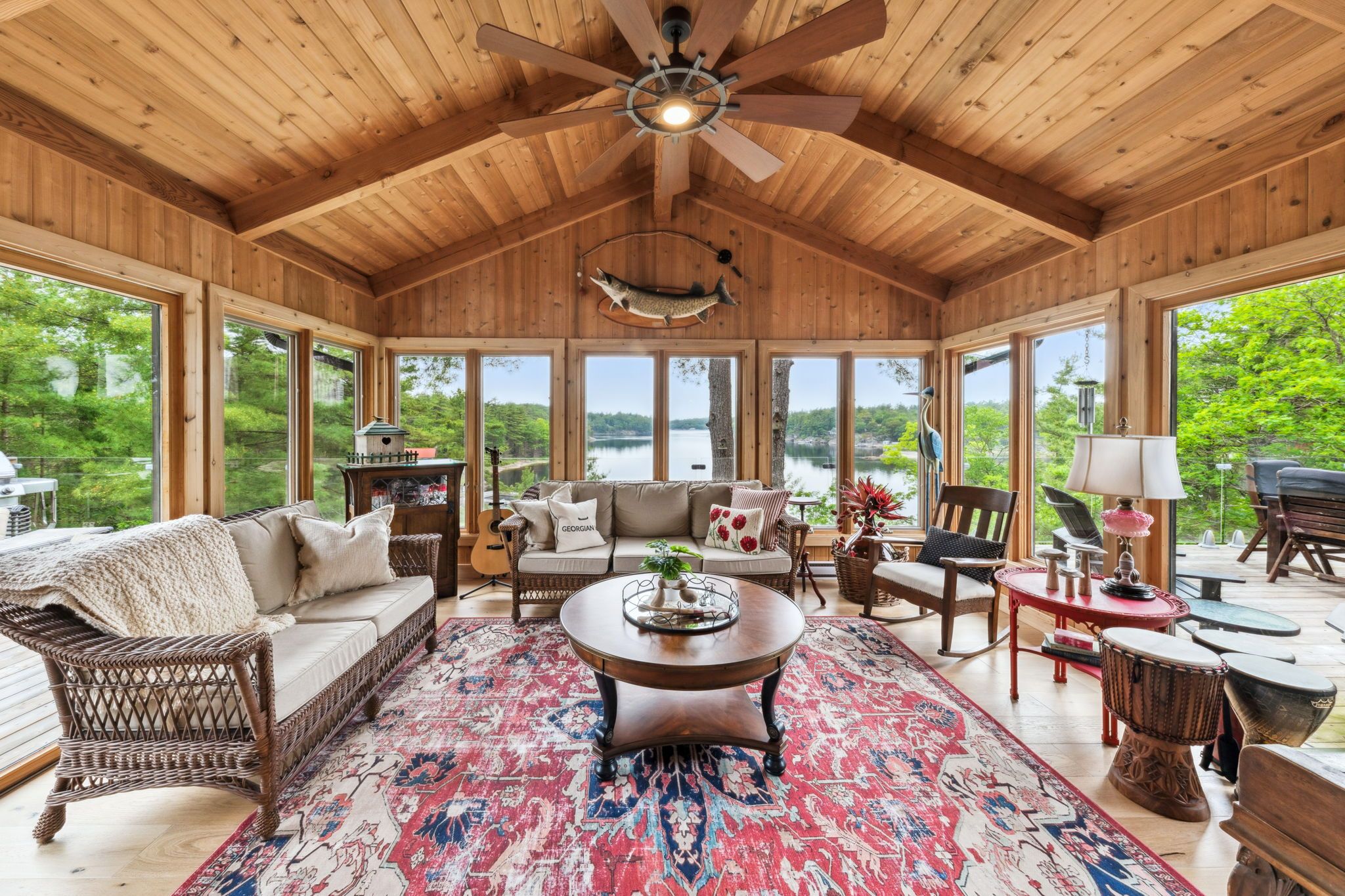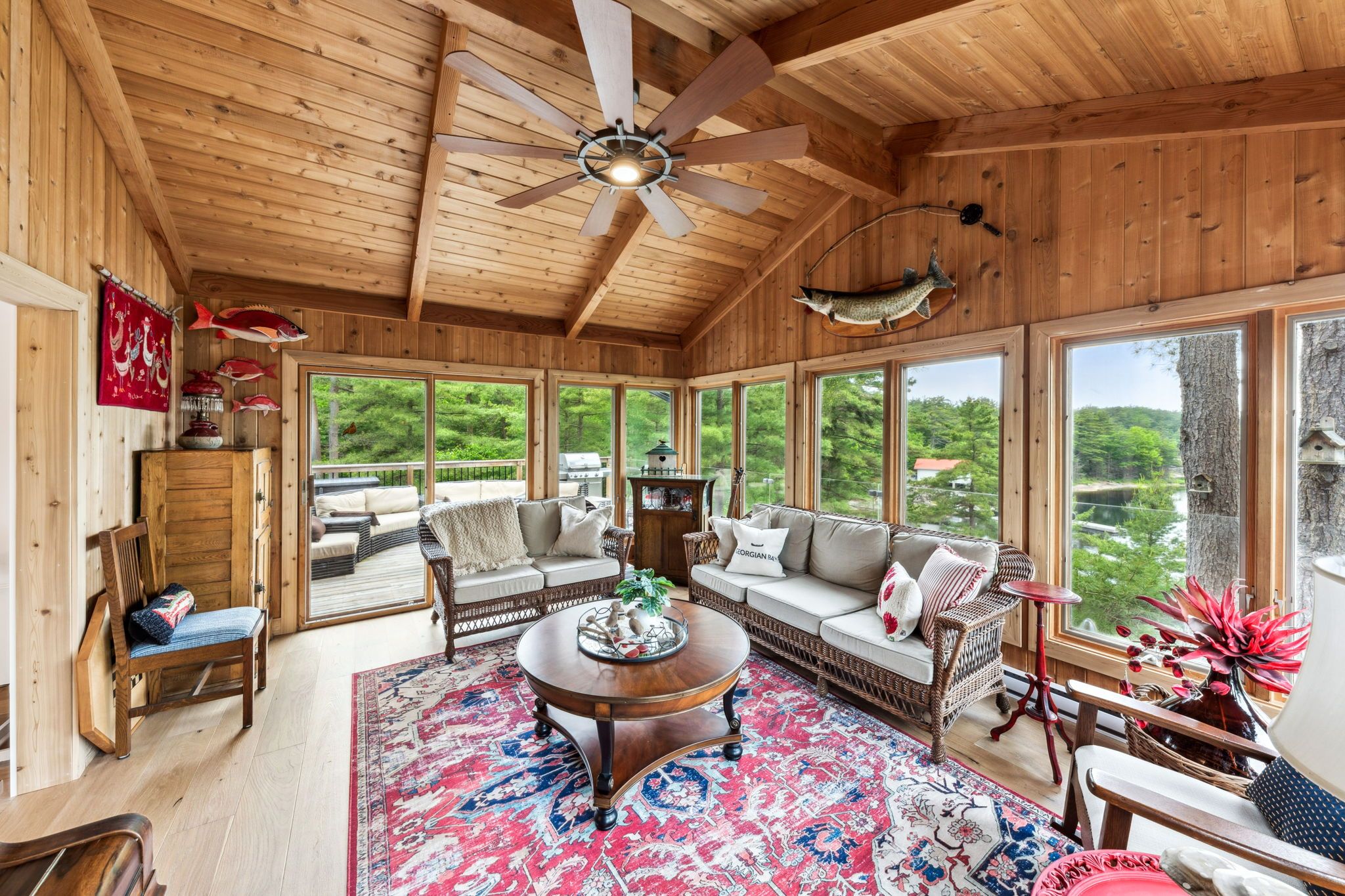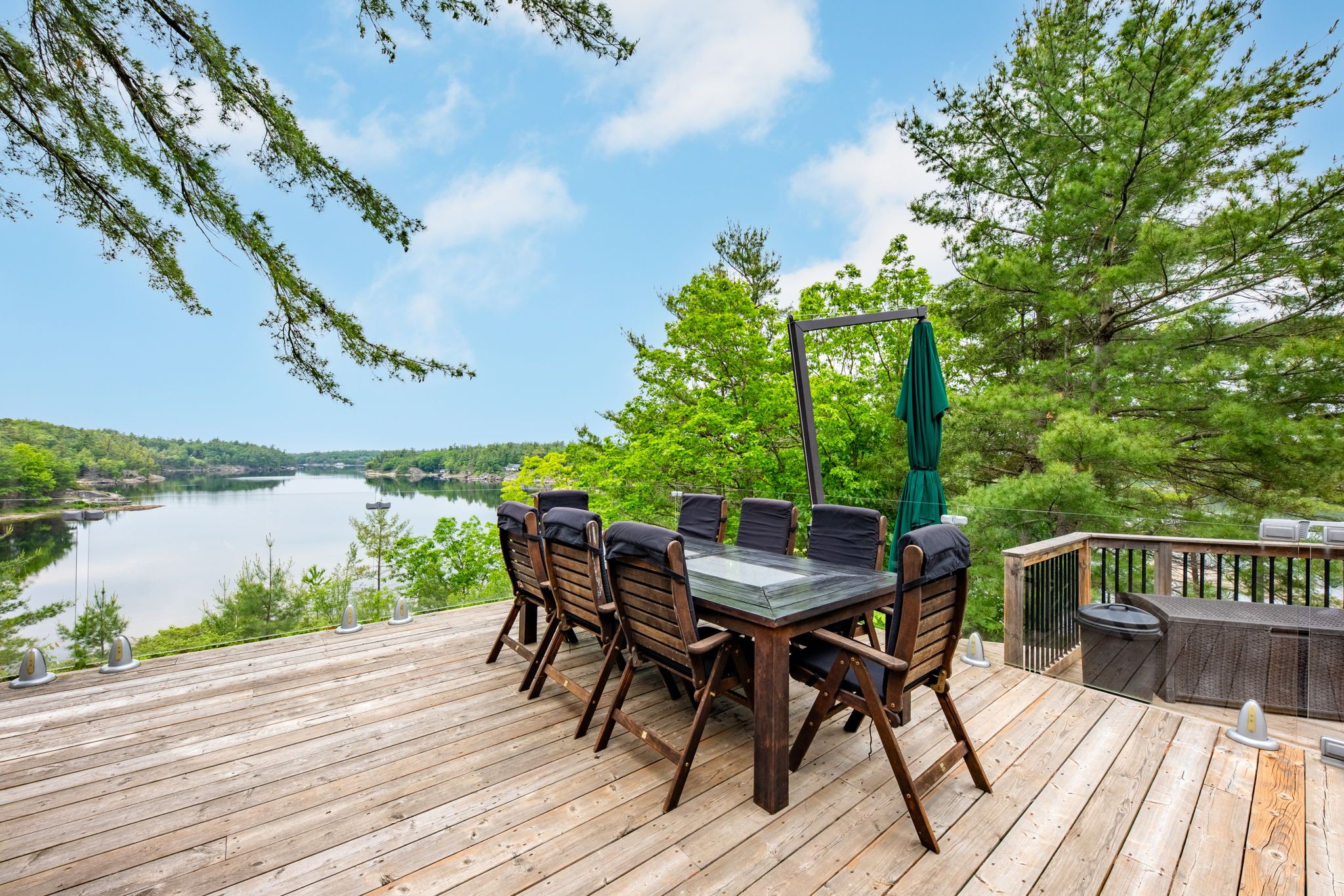 Welcome to your dream hideaway - an awe-inspiring 6. 9-acre treetop retreat on picturesque bone island, boasting 635 feet of iconic "group of seven" shoreline! This immaculate cottage offers two primary bedrooms, each with its own ensuite, providing comfort and privacy for family and guests. The larger primary suite is spacious enough to accommodate two sets of bunk beds, creating flexible sleeping arrangements for groups or families. The sunroom serves as a bright and tranquil space by day - and with room for a daybed, it easily transforms into an extra sleeping area when needed. A charming guest cottage adds even more space for visitors, making this property truly ready to host family gatherings or weekend getaways. Perched proudly on the rocky shoreline, this lakefront gem shines inside and out with extensive updates such as two newer oversized docks, hardwood throughout the main and guest cottage and tile flooring in the bathrooms. The kitchen has luxurious white cabinets and quartz countertops. Updates are lengthy and there's nothing left to do but move in and start enjoying. Stay connected with starlink internet and work lakeside if you must. Outdoor living is at its finest here; bask in the sun on the wrap-around deck with sweeping 250-degree water views, unwind under the gazebo, or soak in the built-in hot tub. A shaded large awning provides shade for sitting up top overlooking georgian bay. Edge-lit glass railings add a magical glow to evenings outdoors. For your boating lifestyle, the two large fixed and floating docks provide deep, sheltered mooring and perfect spots for swimming. There's ample storage for all your lakeside toys plus a separate workshop for your hobbies. And with the hassle-free inclinator, you can glide easily between the waterfront and your cottage haven - no stairs required. This property truly combines luxury, flexibility, and nature's beauty - the perfect island escape for family, friends, and unforgettable georgian bay adventures.
