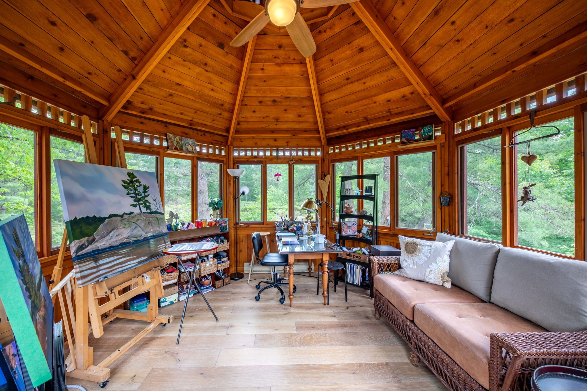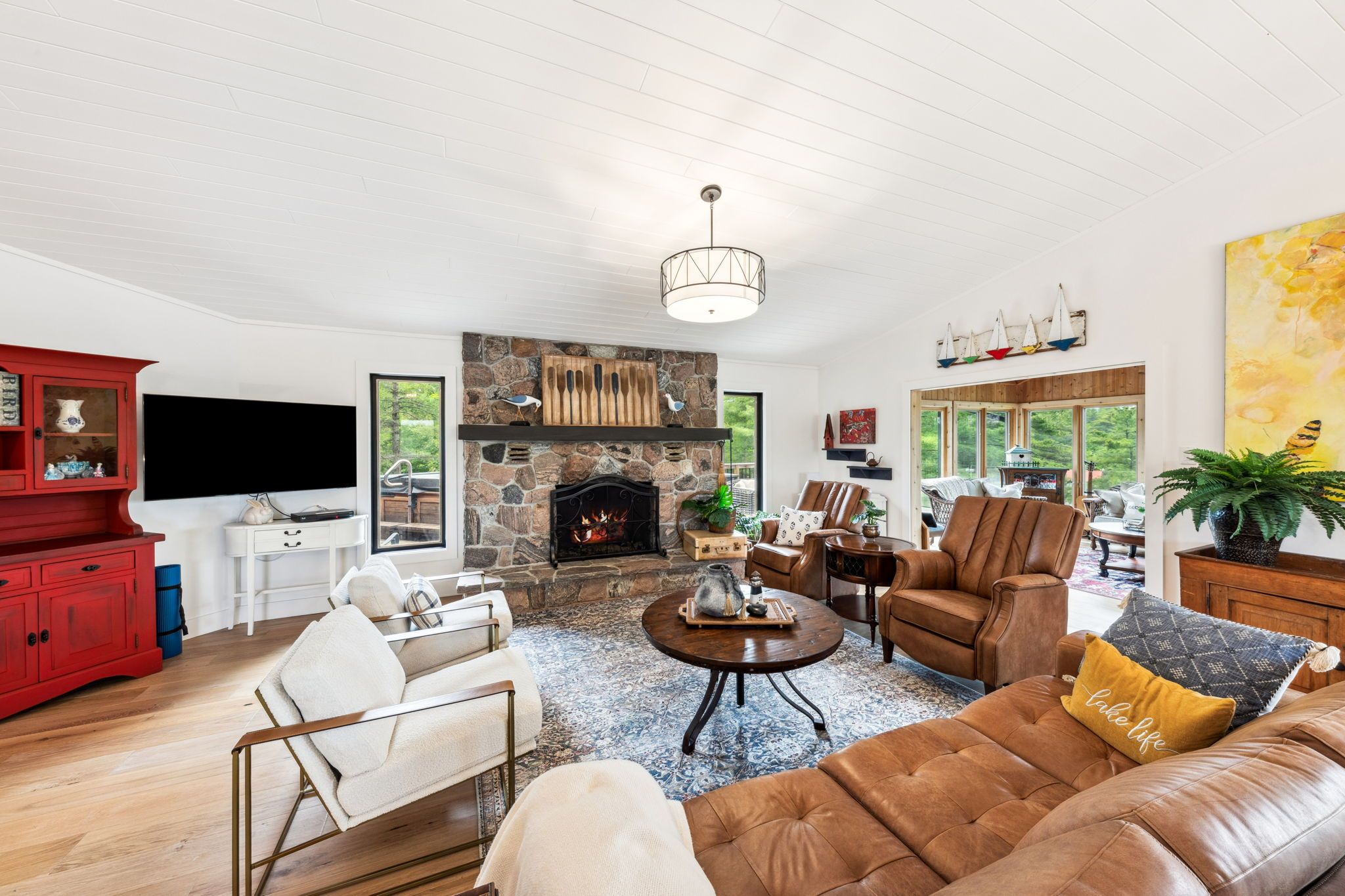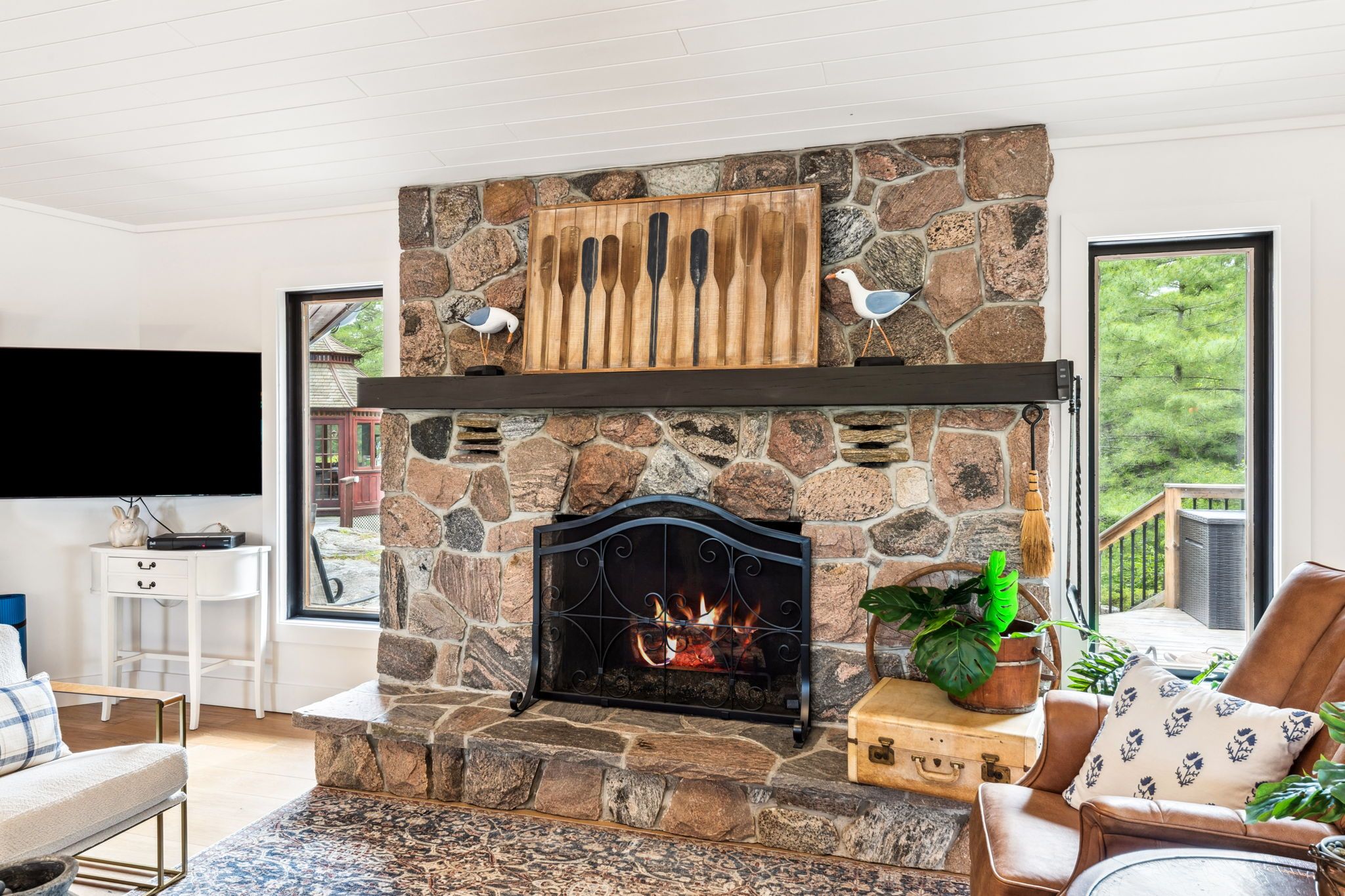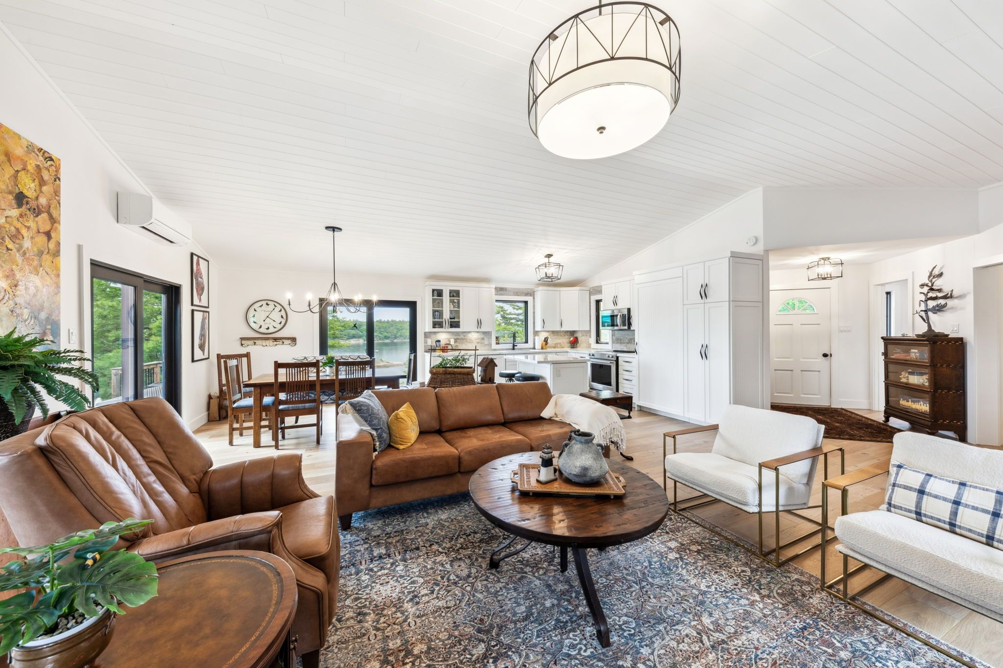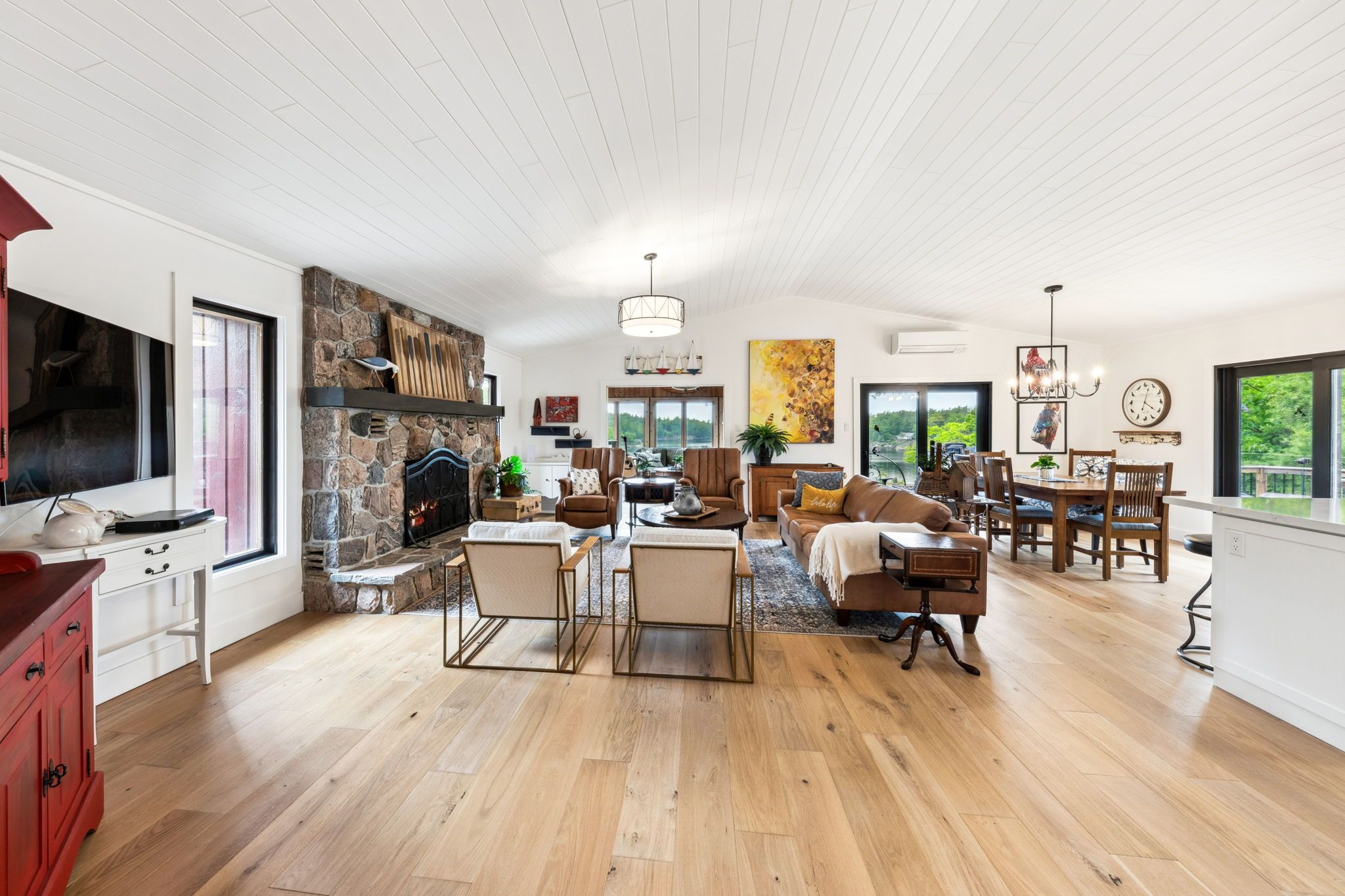 Welcome to your dream hideaway - an awe-inspiring 6. 9-acre treetop retreat on picturesque bone island, boasting 635 feet of iconic "group of seven" shoreline! This immaculate cottage offers two primary bedrooms, each with its own ensuite, providing comfort and privacy for family and guests. The larger primary suite is spacious enough to accommodate two sets of bunk beds, creating flexible sleeping arrangements for groups or families. The sunroom serves as a bright and tranquil space by day - and with room for a daybed, it easily transforms into an extra sleeping area when needed. A charming guest cottage adds even more space for visitors, making this property truly ready to host family gatherings or weekend getaways. Perched proudly on the rocky shoreline, this lakefront gem shines inside and out with extensive updates such as two newer oversized docks, hardwood throughout the main and guest cottage and tile flooring in the bathrooms. The kitchen has luxurious white cabinets and quartz countertops. Updates are lengthy and there's nothing left to do but move in and start enjoying. Stay connected with starlink internet and work lakeside if you must. Outdoor living is at its finest here; bask in the sun on the wrap-around deck with sweeping 250-degree water views, unwind under the gazebo, or soak in the built-in hot tub. A shaded large awning provides shade for sitting up top overlooking georgian bay. Edge-lit glass railings add a magical glow to evenings outdoors. For your boating lifestyle, the two large fixed and floating docks provide deep, sheltered mooring and perfect spots for swimming. There's ample storage for all your lakeside toys plus a separate workshop for your hobbies. And with the hassle-free inclinator, you can glide easily between the waterfront and your cottage haven - no stairs required. This property truly combines luxury, flexibility, and nature's beauty - the perfect island escape for family, friends, and unforgettable georgian bay adventures.